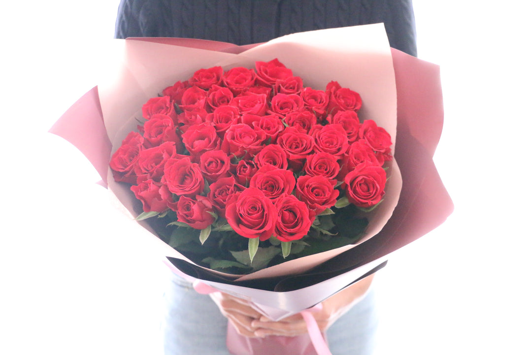 バラの花束は本数と色が明確にイメージしやすいため、通販サイトで購入される方も多くいらっしゃいます。特に仕事が忙しく、花屋に行く時間が限られている方や遠方への配送を希望する場合は、ネットショップが便利です。レビューや写真で仕上がりを確認でき、全国への配送にも対応。プロポーズ専用の花束も多く揃っています。フラワーギフト通販サイトHanaTakuでもお受けすることが可能です。