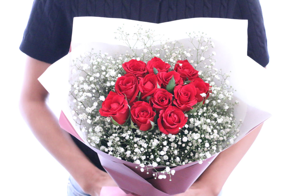 プロポーズのシチュエーションに応じてご自身の状況やパートナーに合う本数を選ぶことが大切です。また、バラだけでなく、かすみ草と組み合わせた神秘的な花束をお求めの方もいらっしゃいます。かすみ草を加えることでボリュームを出て、優しく神秘的な雰囲気を醸し出すことができます。