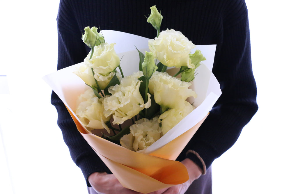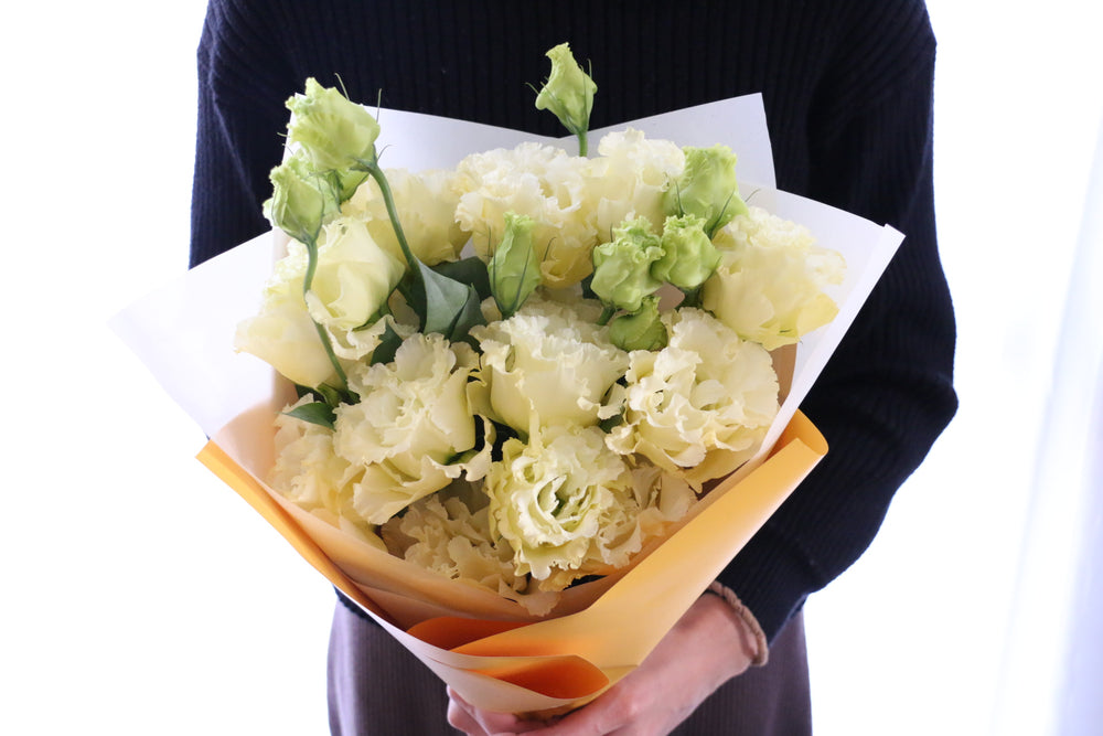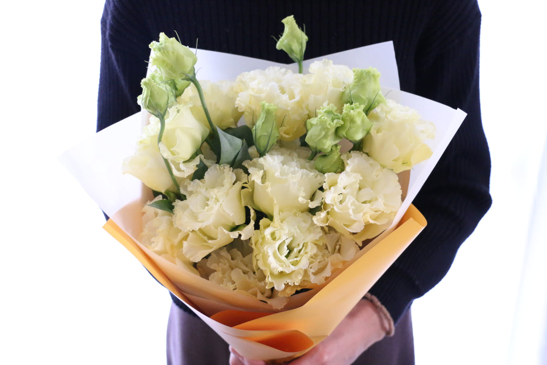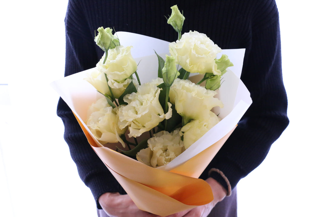 やさしい色合いで気持ちを伝える、クリーム色のトルコキキョウ花束