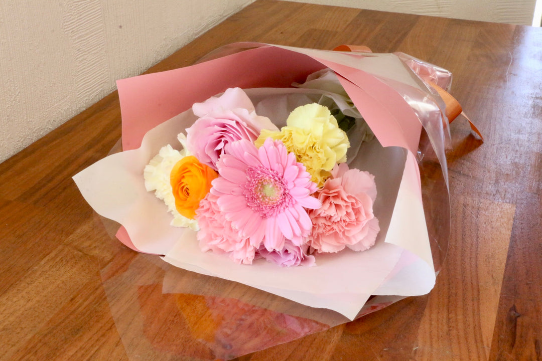 花束は、お花を束ねて花瓶に飾る、最も知られたフラワーギフトです。定番なギフトスタイルなだけに、多くの方に喜んでもらえるでしょう。