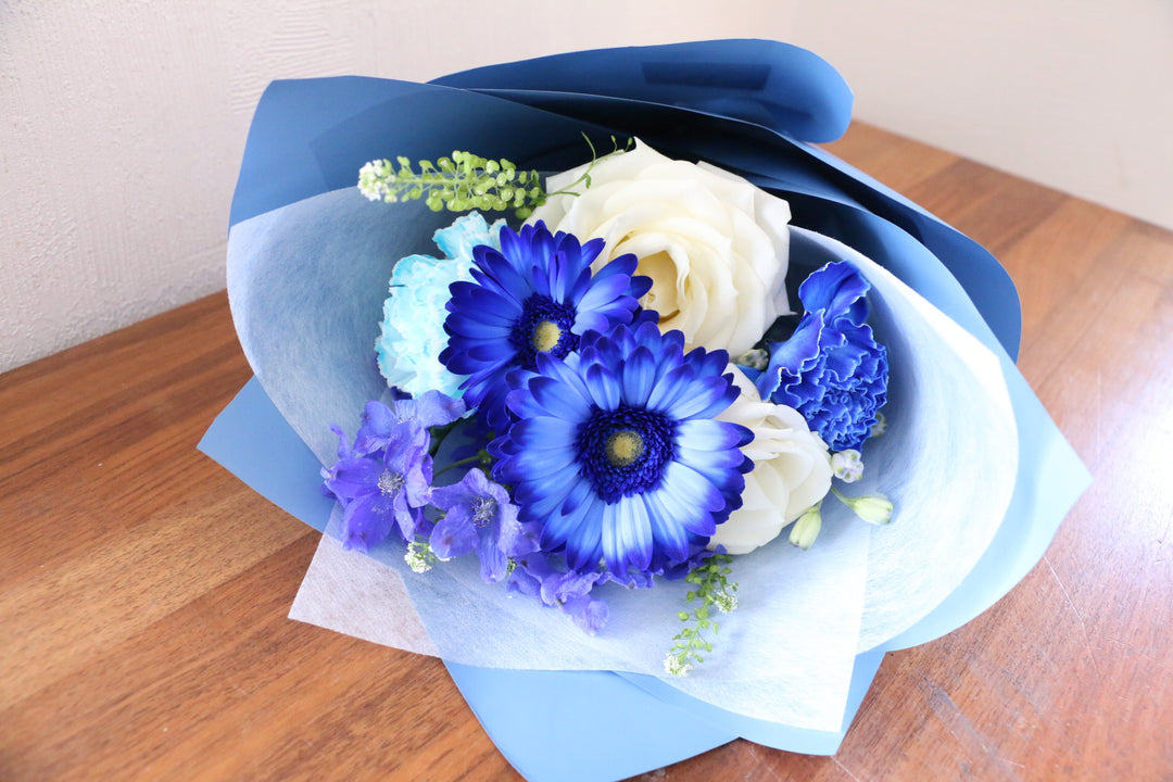 涼しげで爽やかな雰囲気。手軽に贈れる小さめ花束