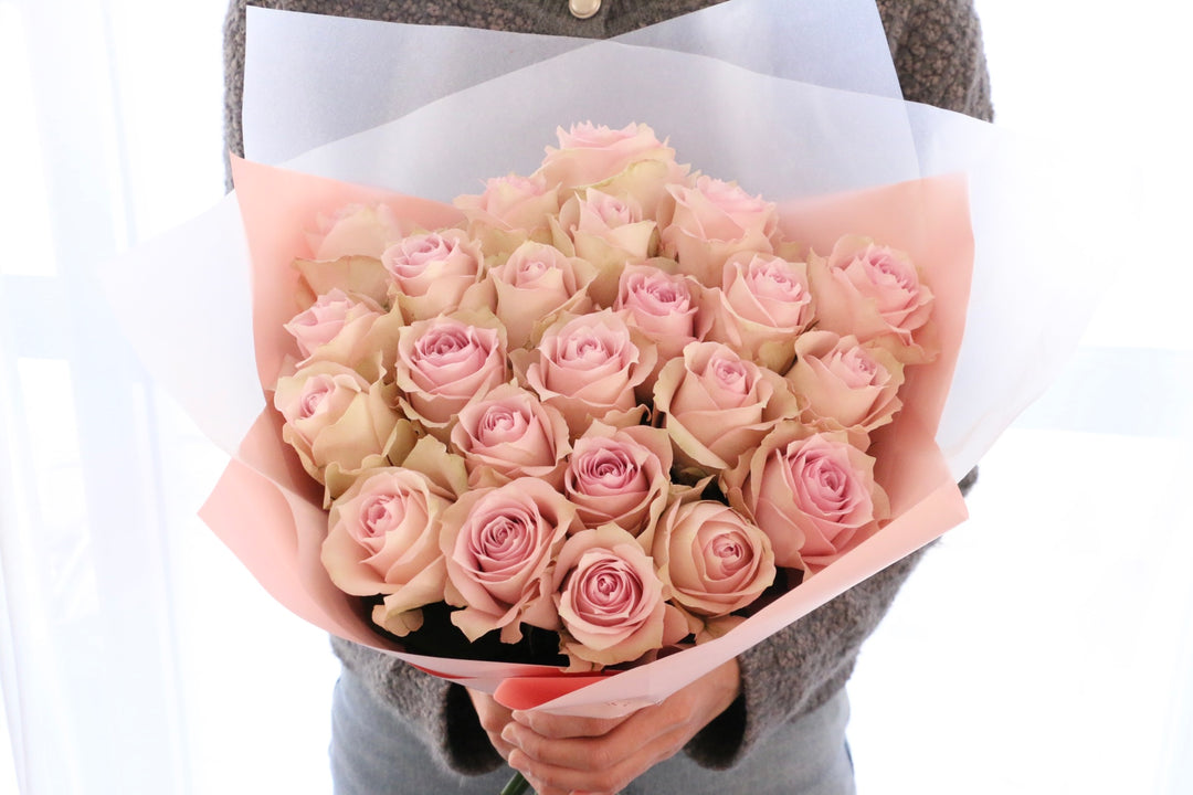 恋人や夫婦の記念日にぴったり。26本のピンク色のバラの花束