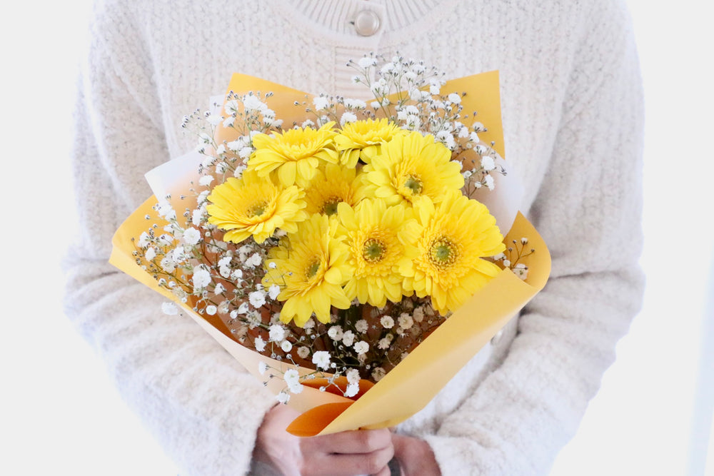 A. はい、シンプルにガーベラのみをまとめた花束はとても人気です。色を揃えると上品に、カラフルにすると元気で華やかな印象になり、さまざまなシーンで喜ばれます。そこにカスミソウを入れた花束は、華やかさと可愛らしさがプラスされます。