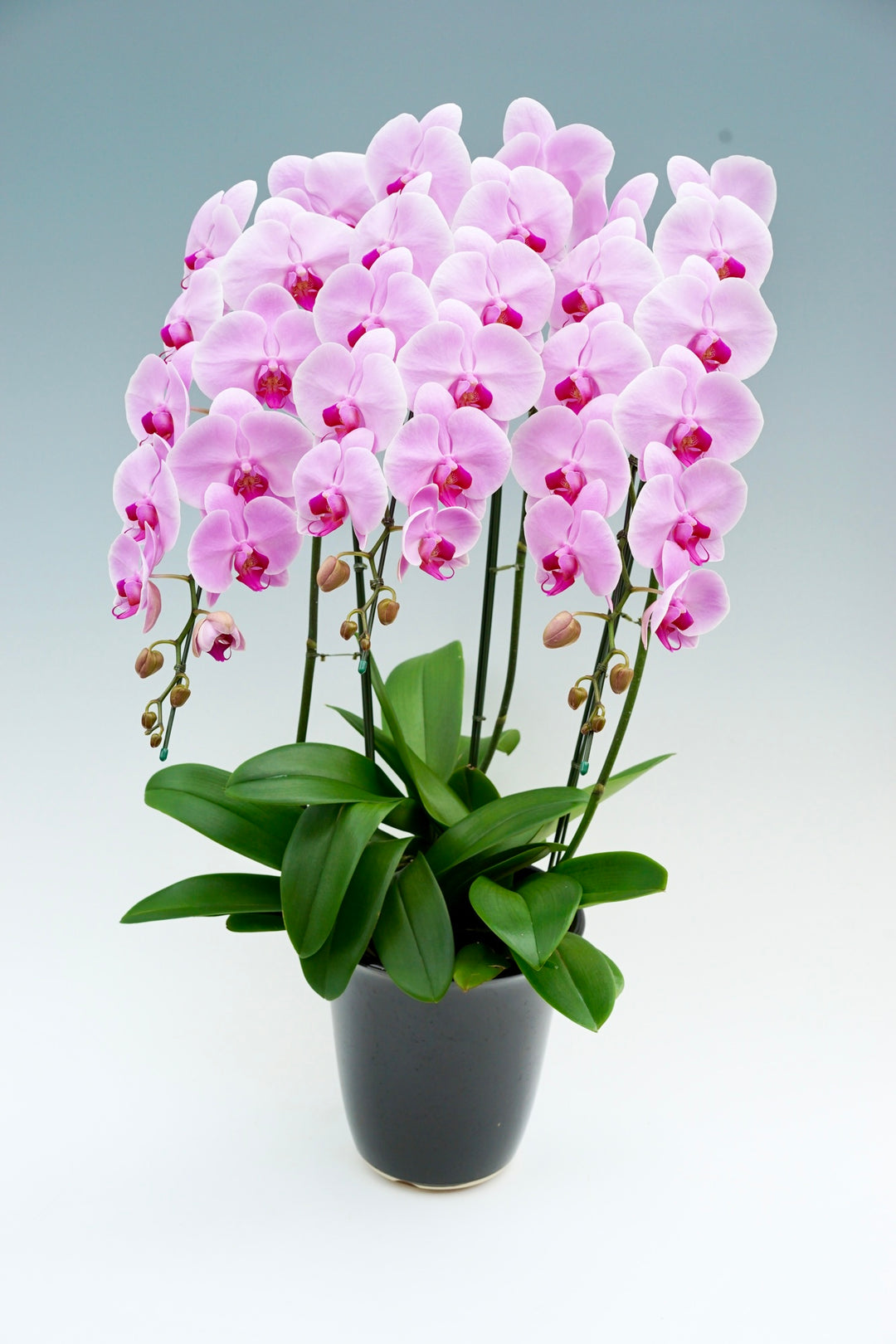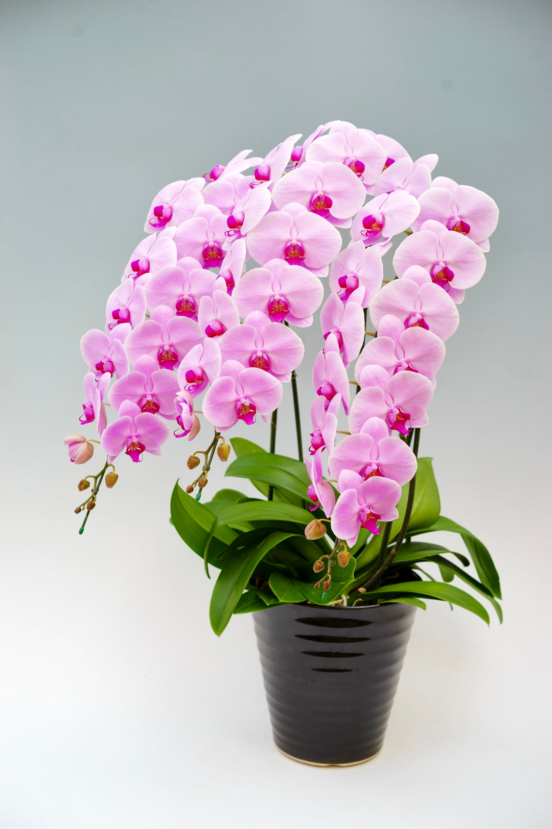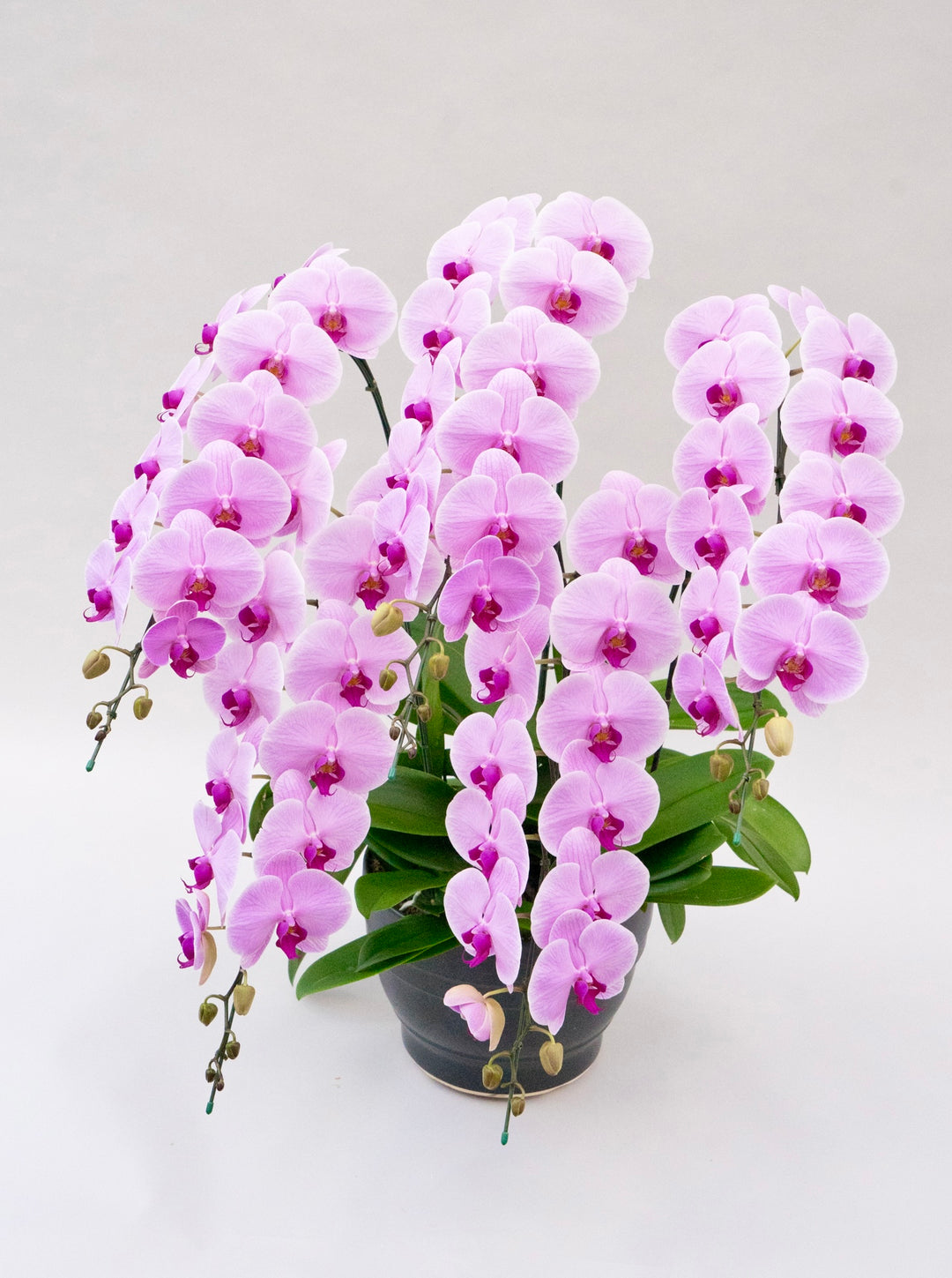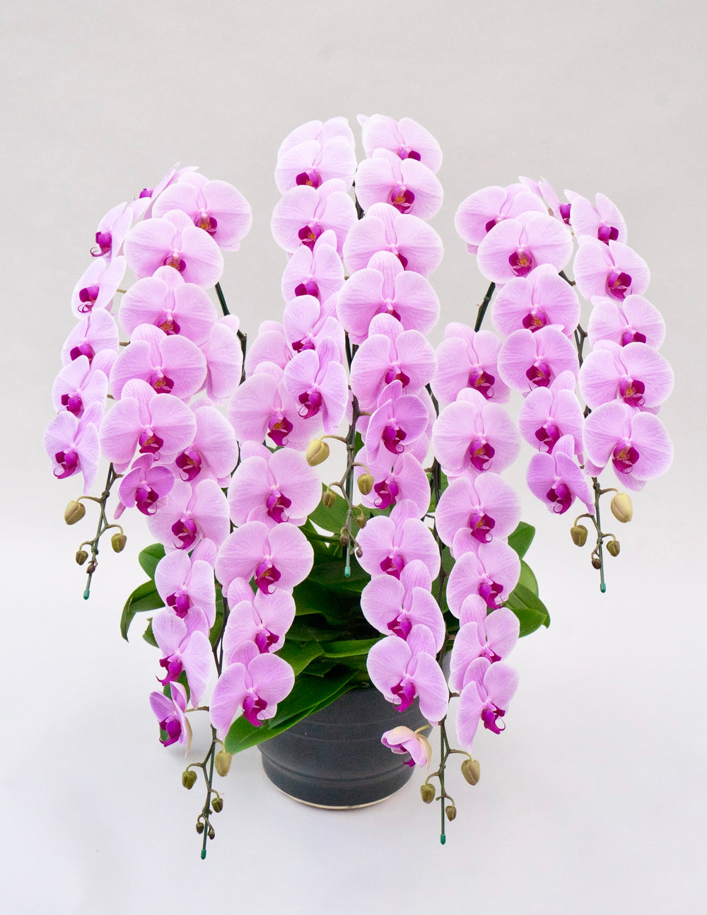 A. 胡蝶蘭はサイズや色味を揃えやすく、複数並べても統一感が出るため、大規模なお祝いの場で多く用いられます。格式が高く、空間全体を華やかに演出できる点も、上場祝いや大きな式典で選ばれる理由です。
