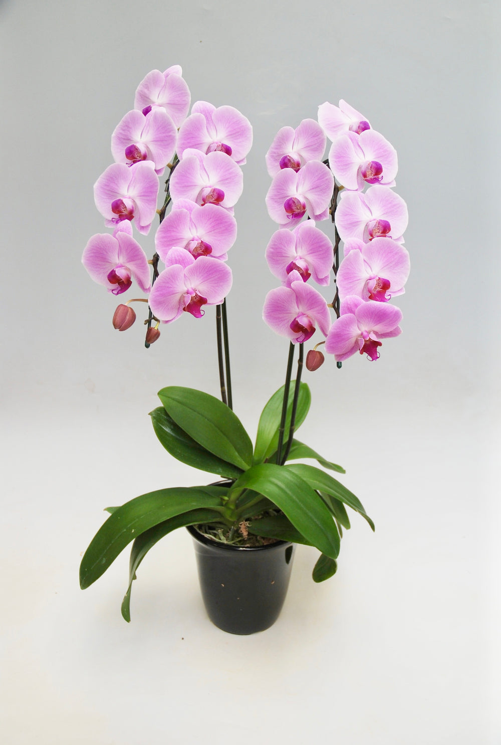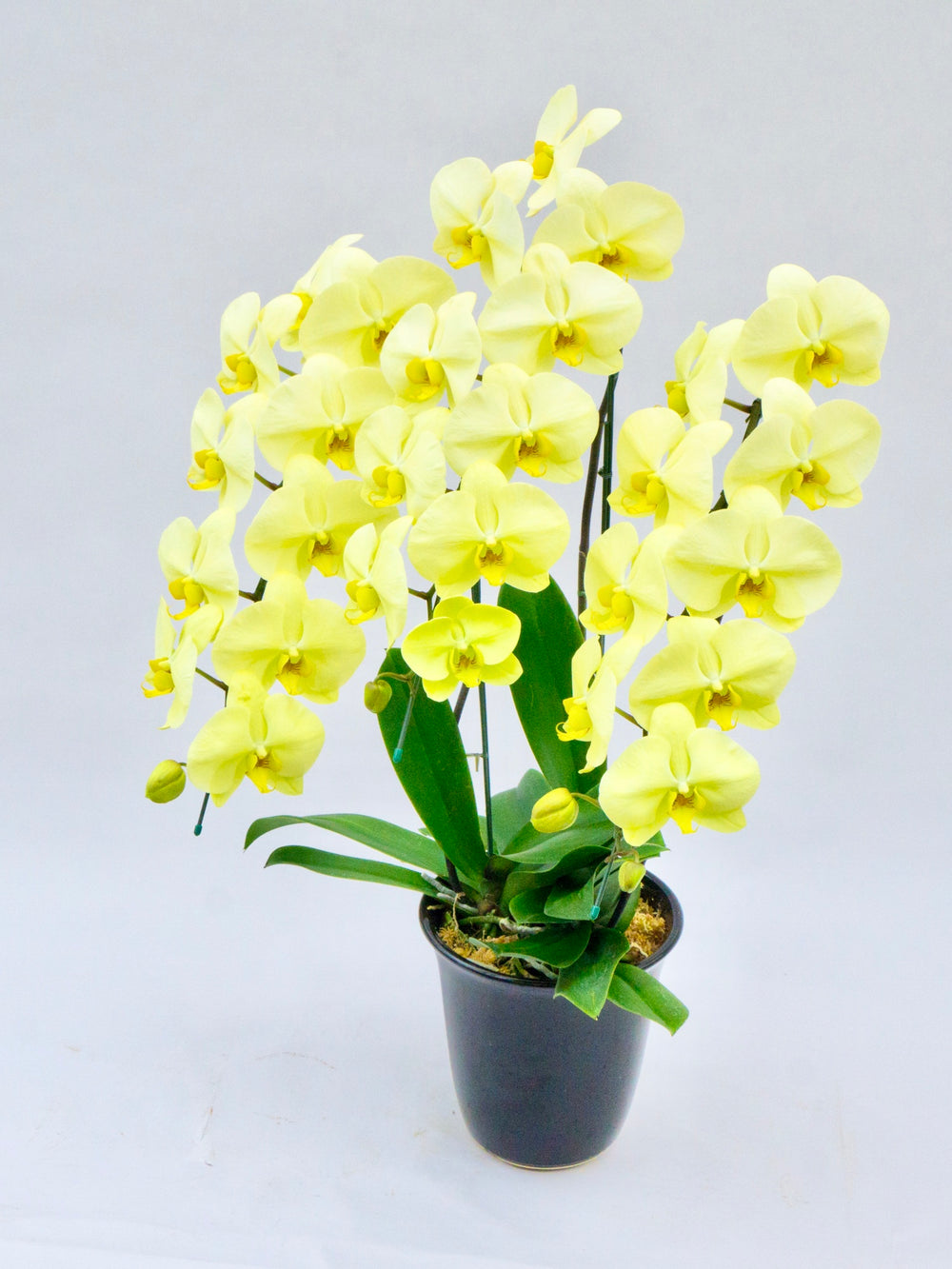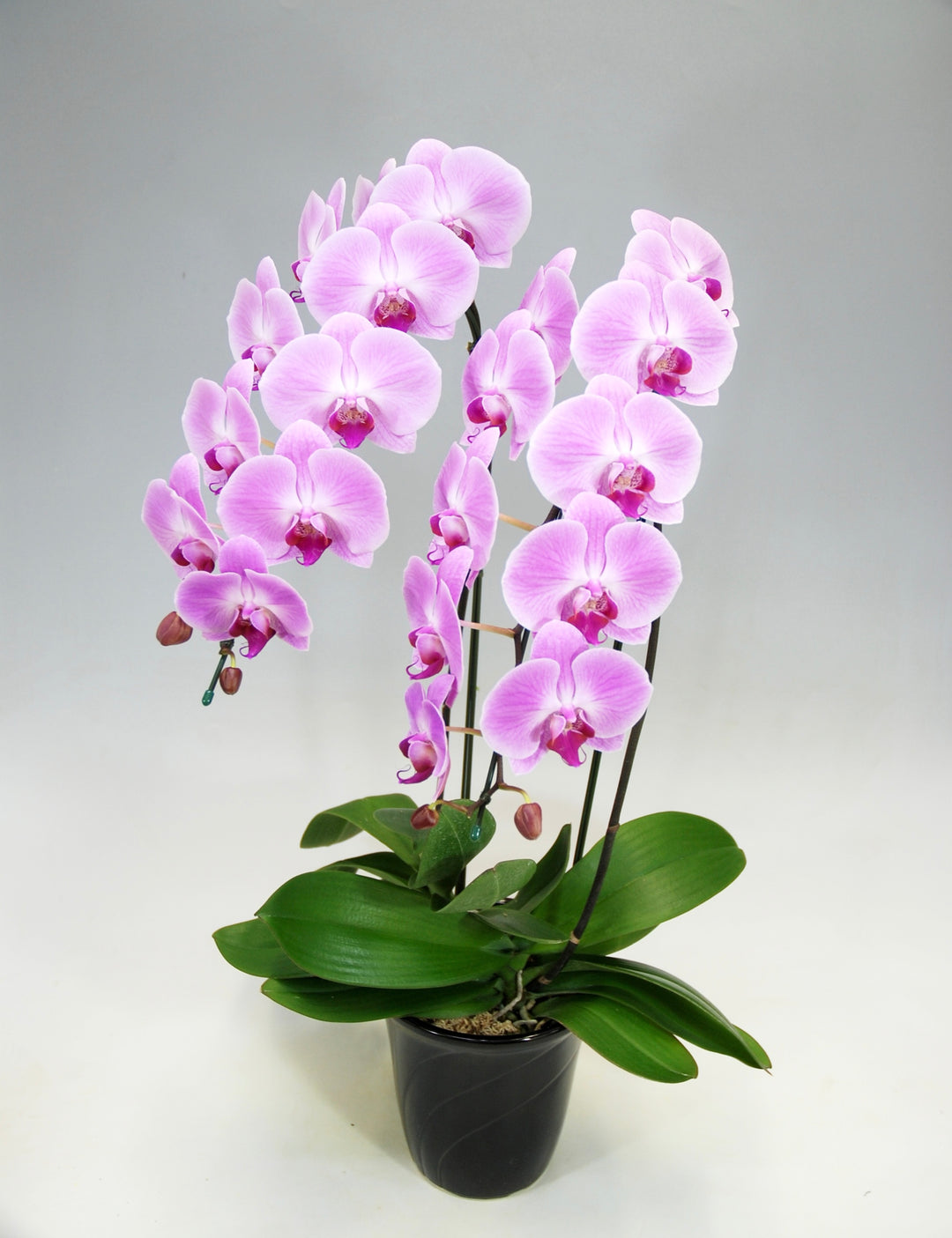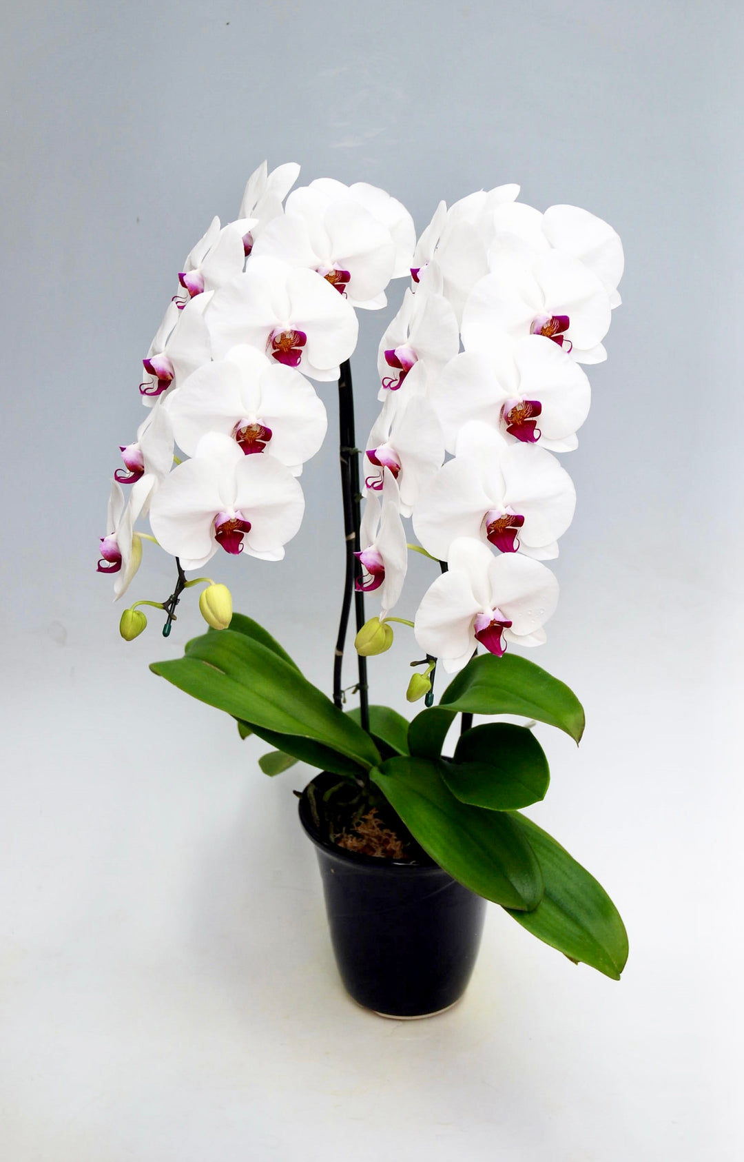 3本立ちで25~32輪前後(蕾含む)の白花タイプの大輪胡蝶蘭です。3本立ち...
