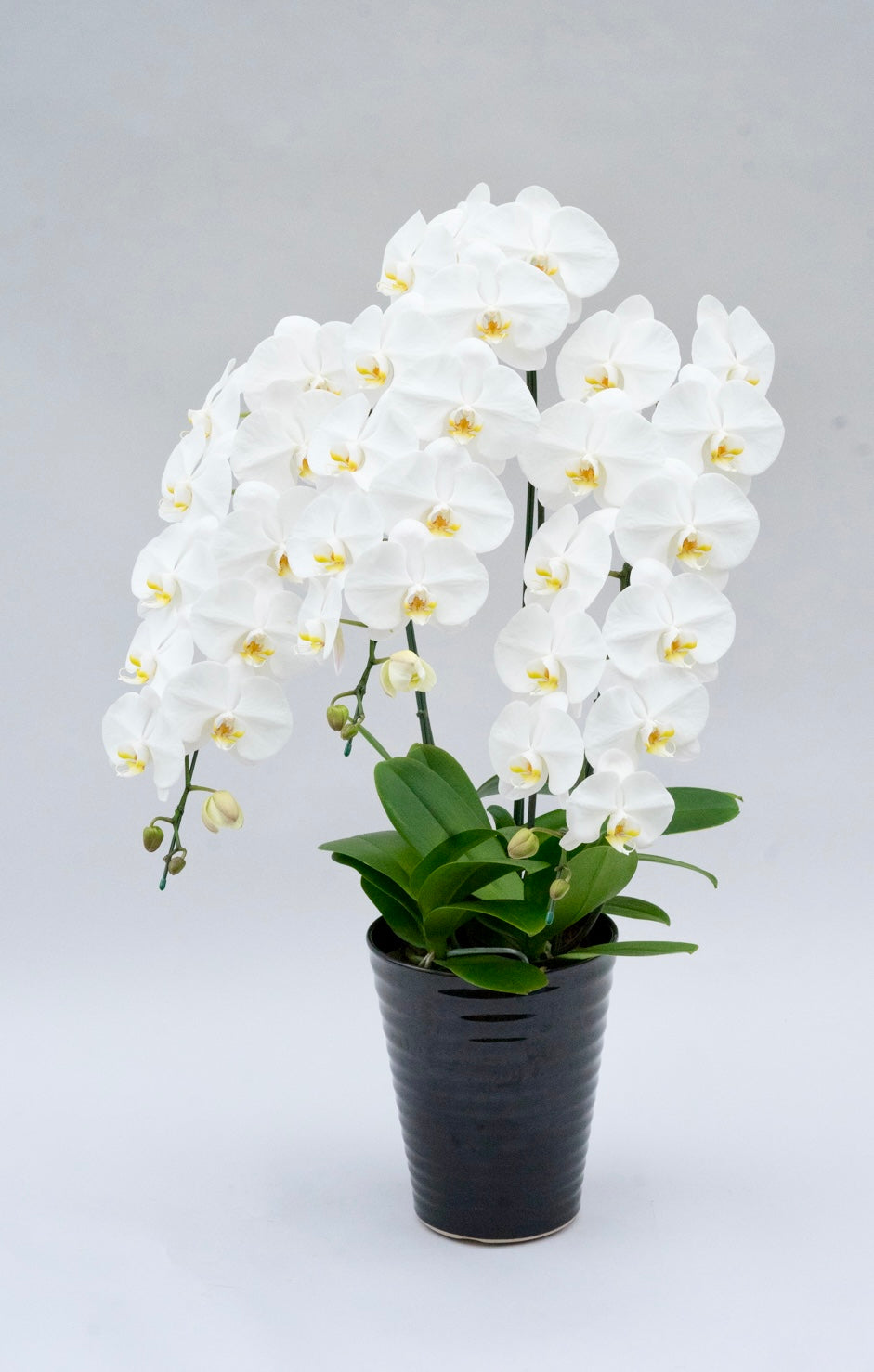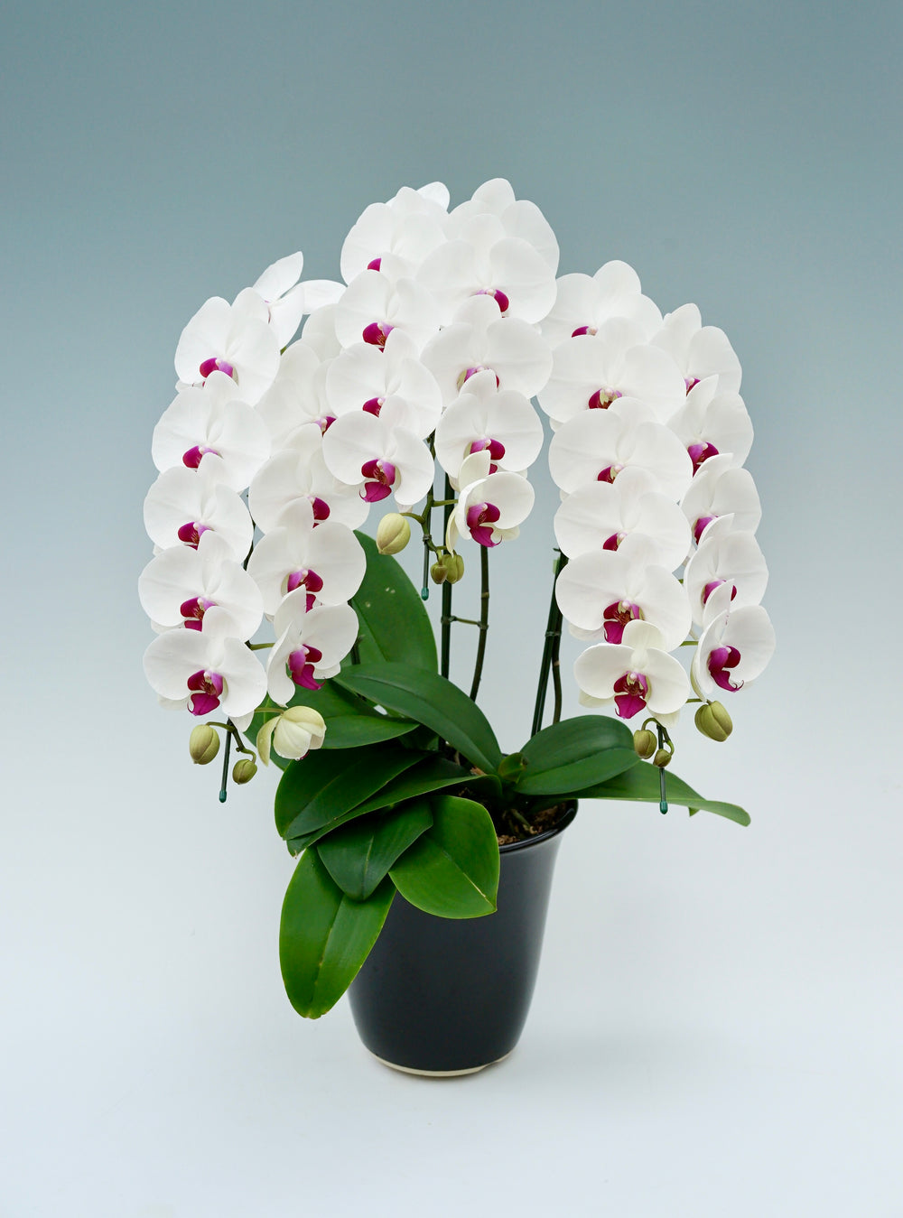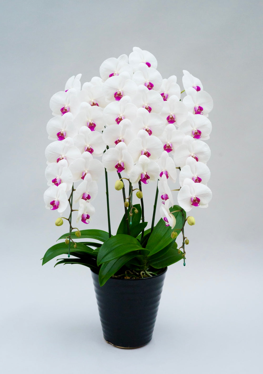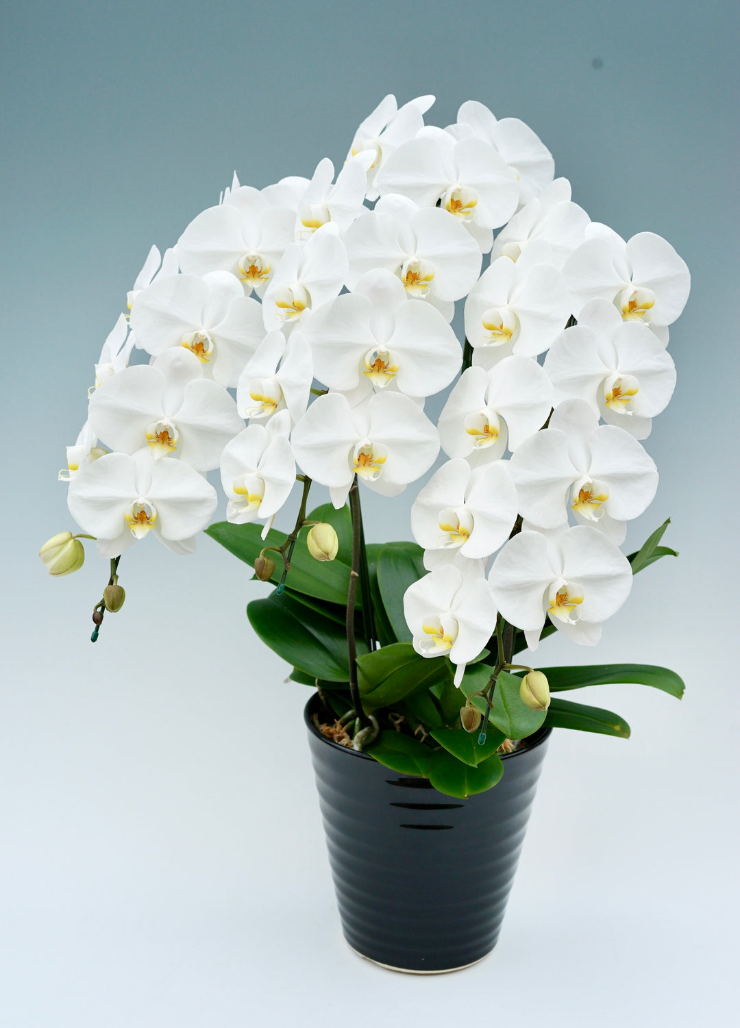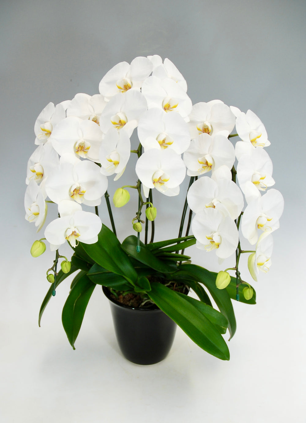 3本立ちで40~47輪前後(蕾含む)の白花タイプの大輪胡蝶蘭です。3本立ち...