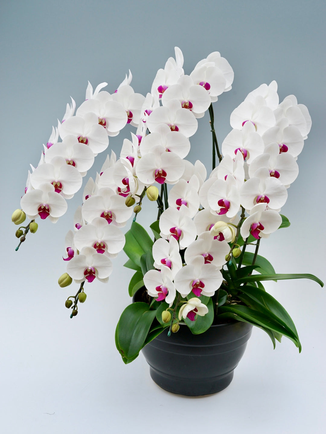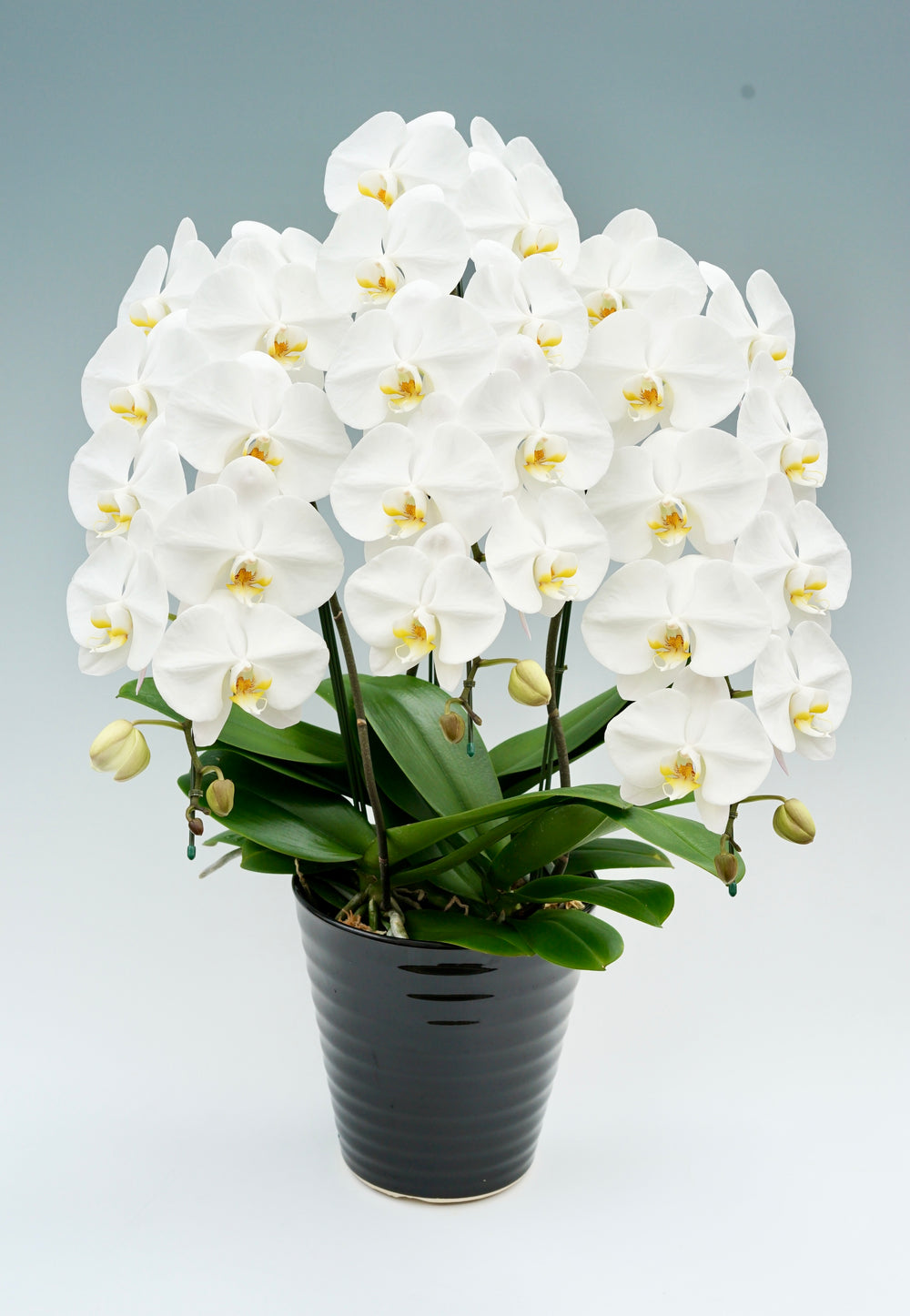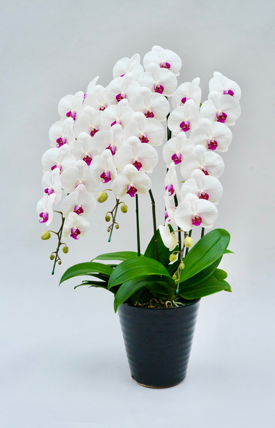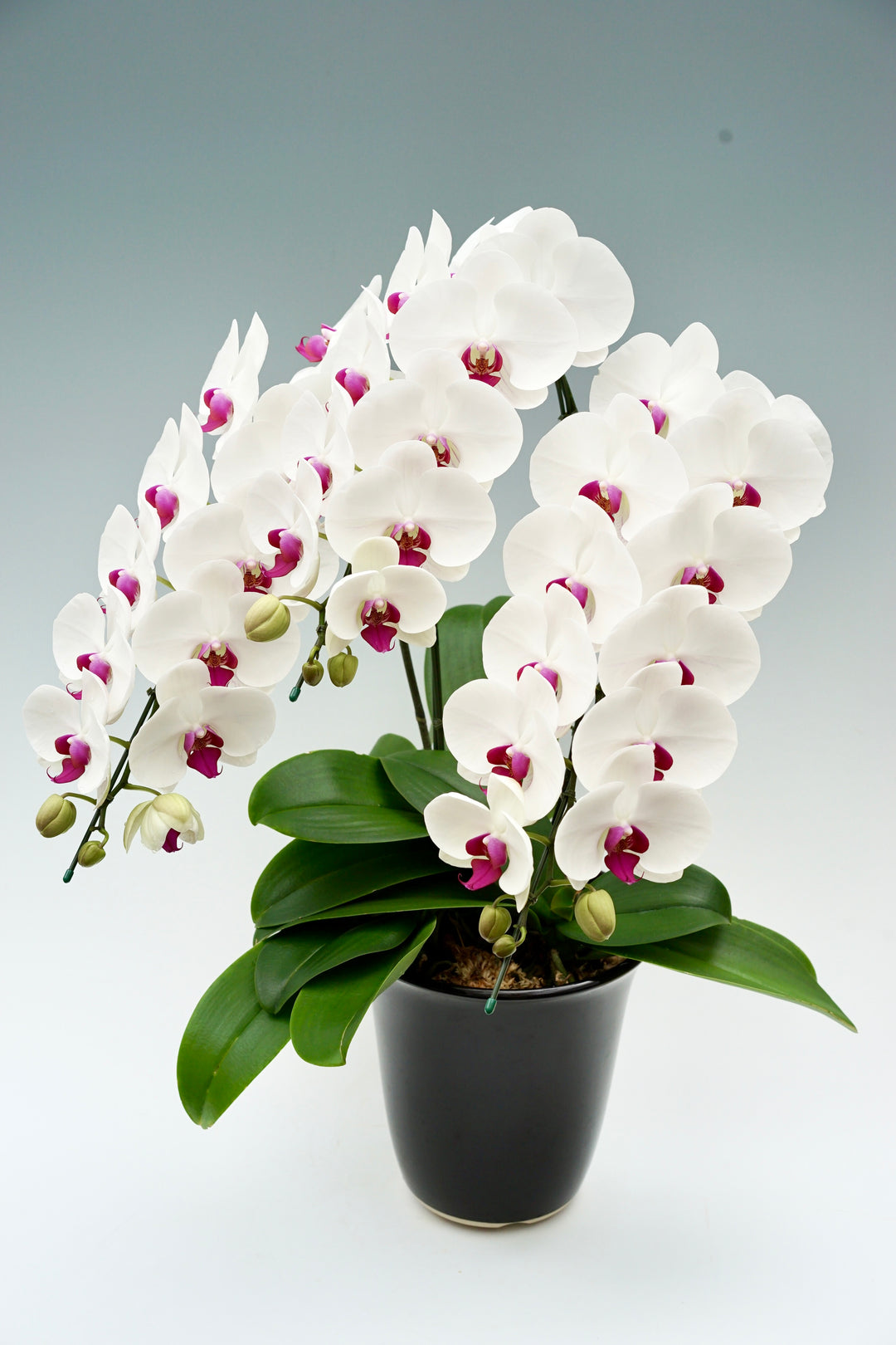 3本立ちで40~47輪前後(蕾含む)の白花タイプの大輪胡蝶蘭です。3本立ち...