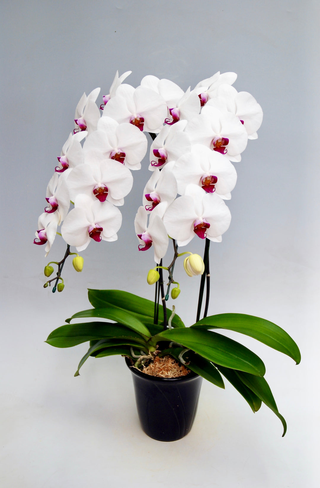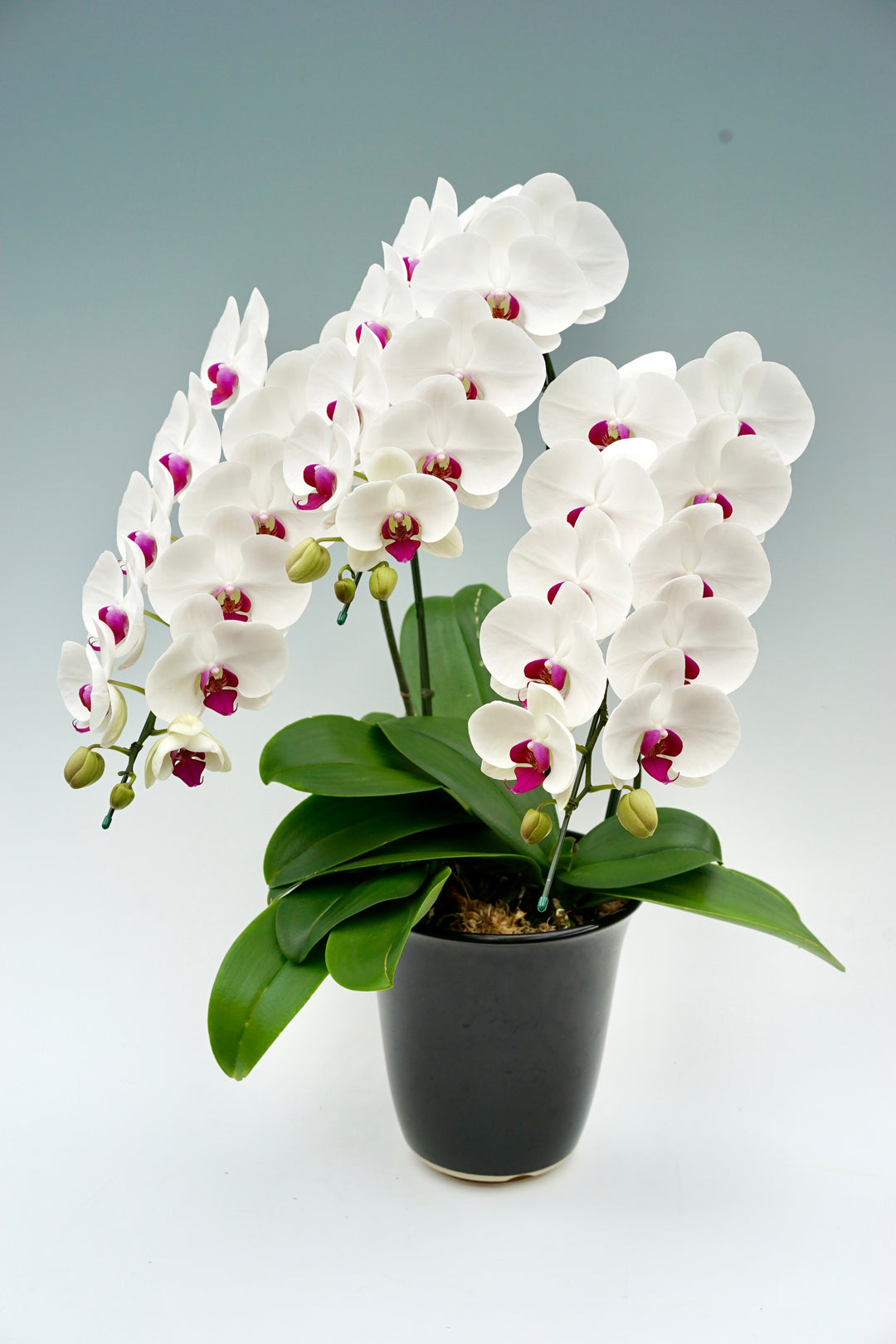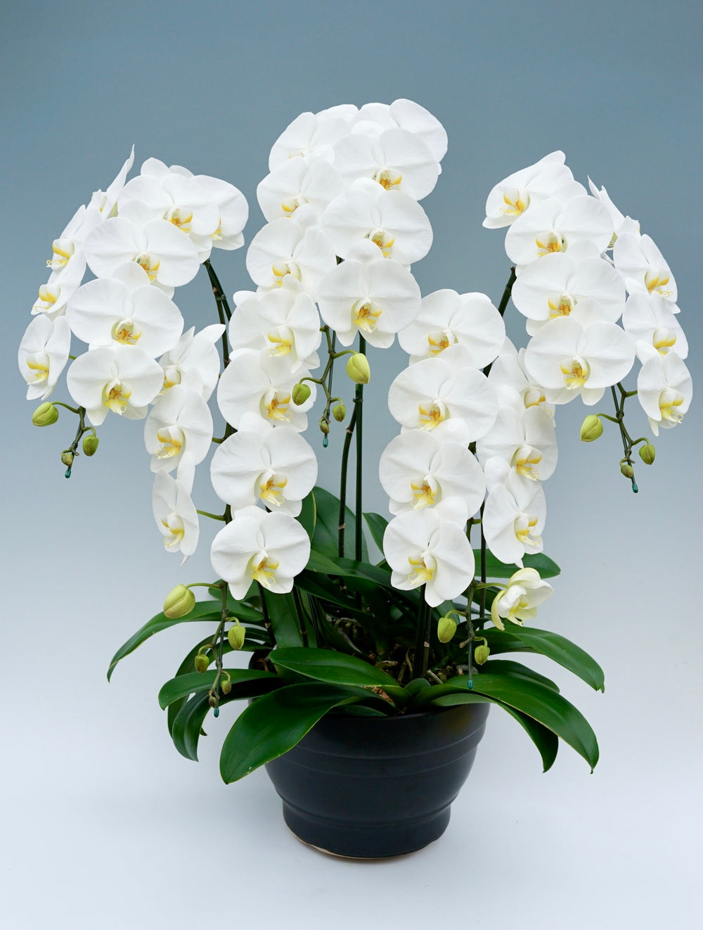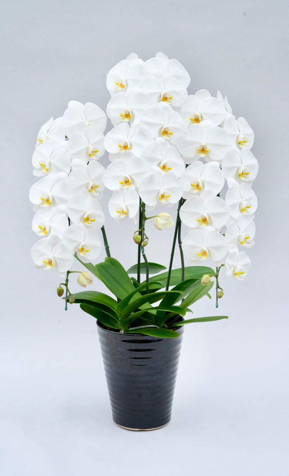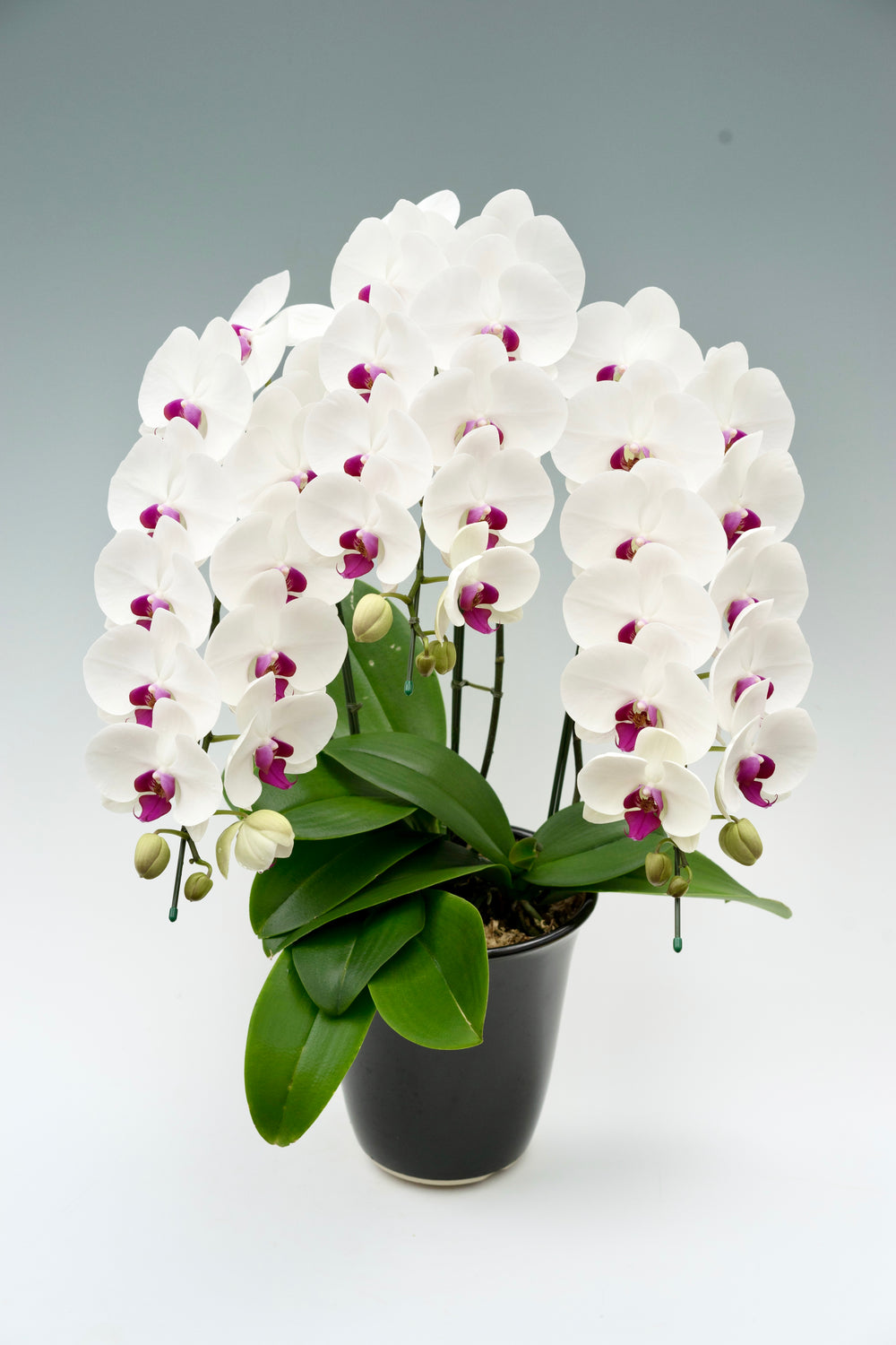 3本立ちで40~47輪前後(蕾含む)の白花タイプの大輪胡蝶蘭です。3本立ち...