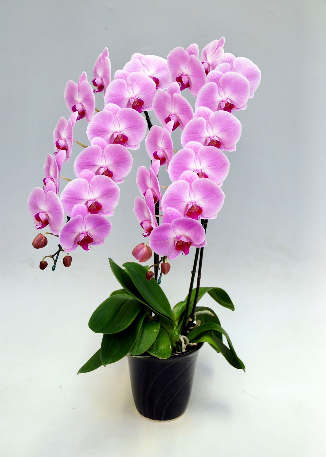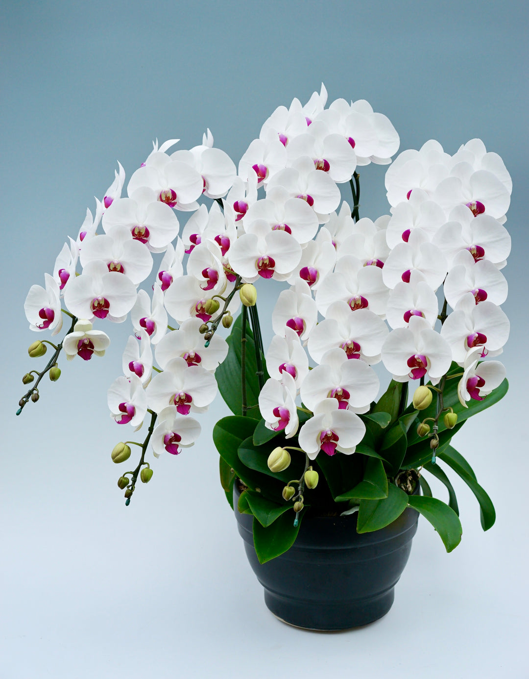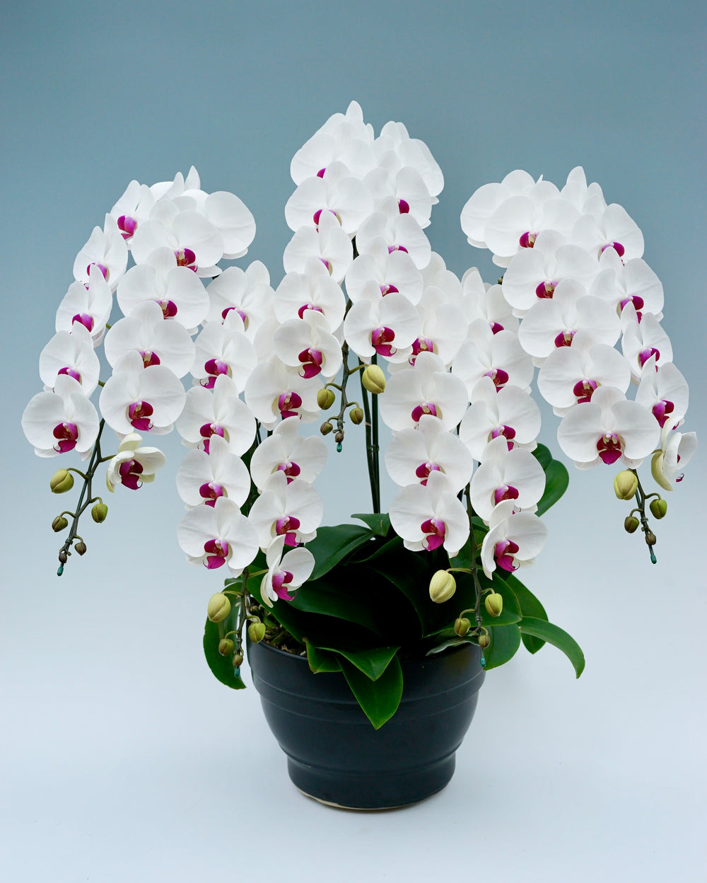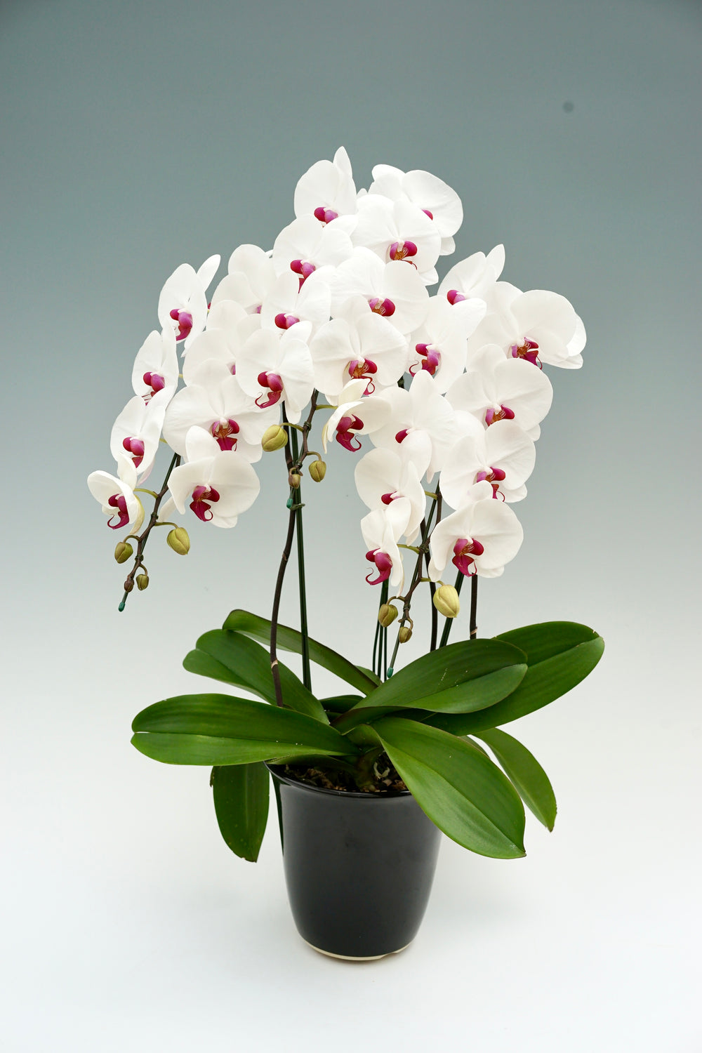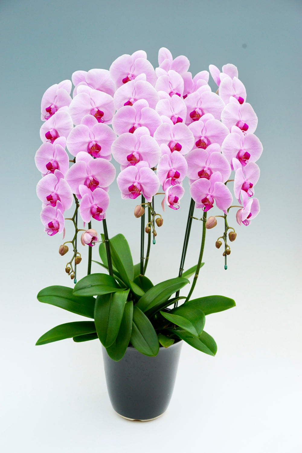 3本立ちで40~47輪前後(蕾含む)の白花タイプの大輪胡蝶蘭です。3本立ち...
