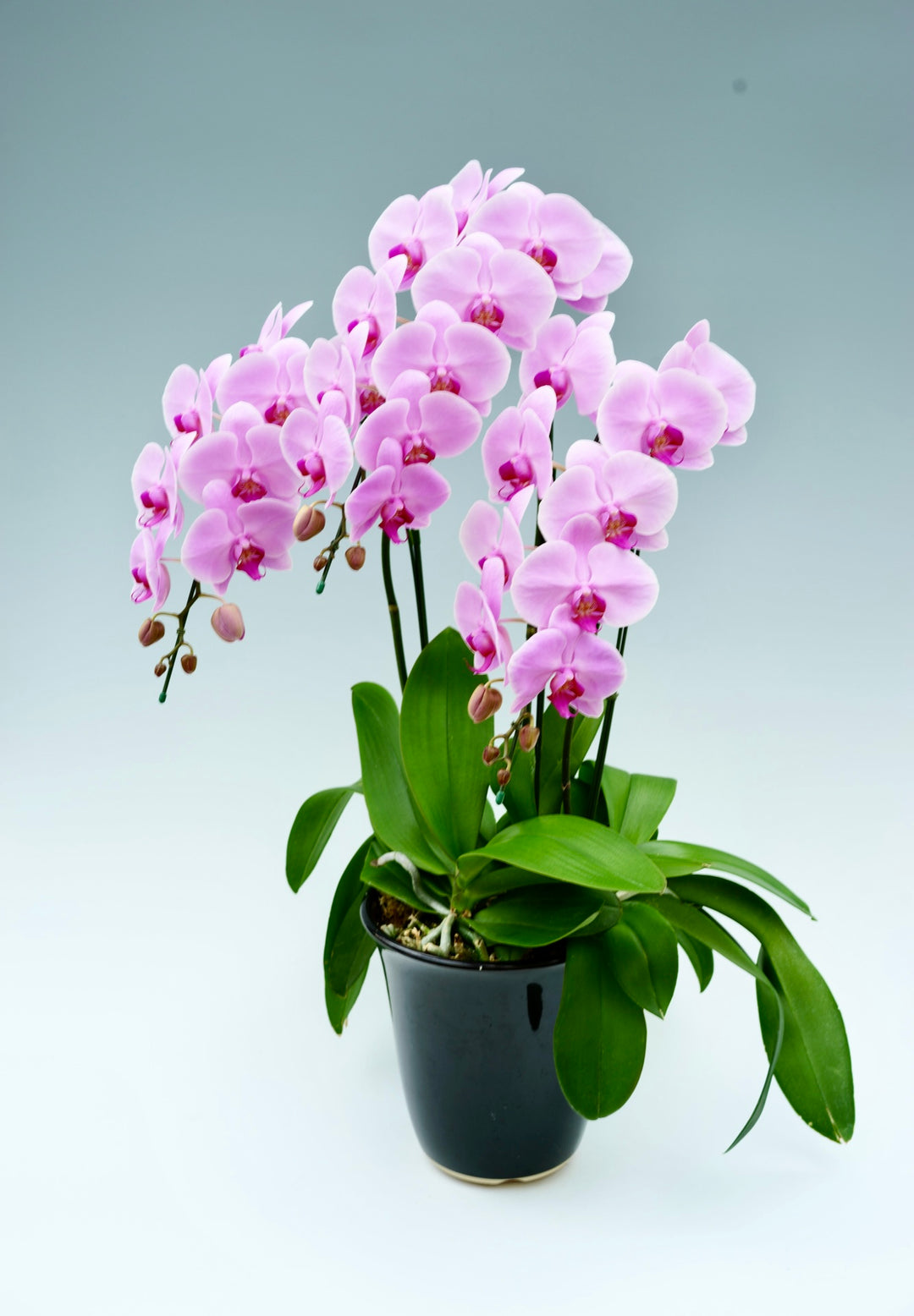 A. 胡蝶蘭は「幸福が飛んでくる」という縁起の良い花言葉を持ち、見た目の豪華さと上品さを兼ね備えた花です。また、花持ちが非常に良く、香りがほとんどないため、法人・個人を問わず相手に負担をかけにくい点も評価されています。こうした理由から、失礼がなく安心して贈れるお祝い花として定番となっています。