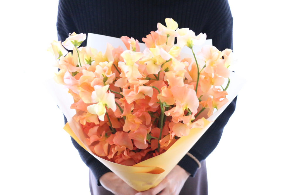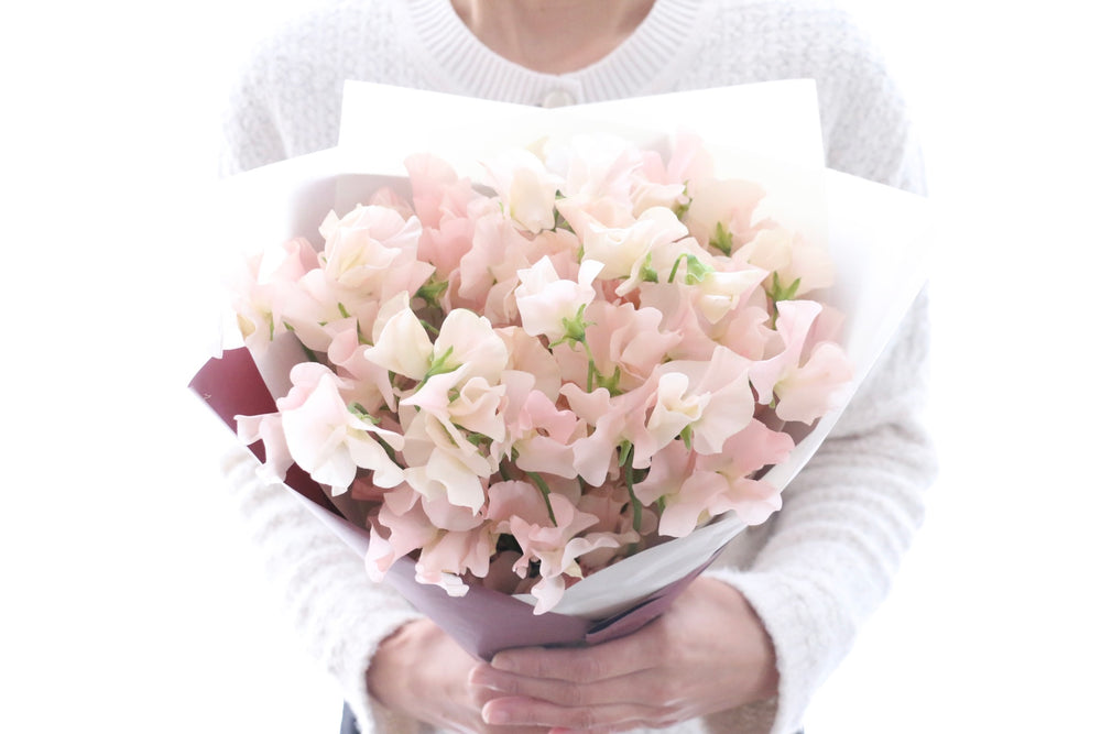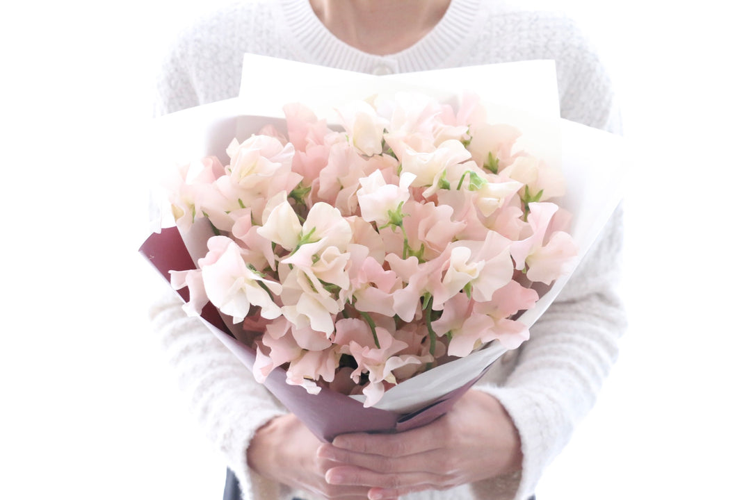 当店では、新鮮なスイートピーを花束やギフトに仕立て、シーンに合わせてお選びいただけます。