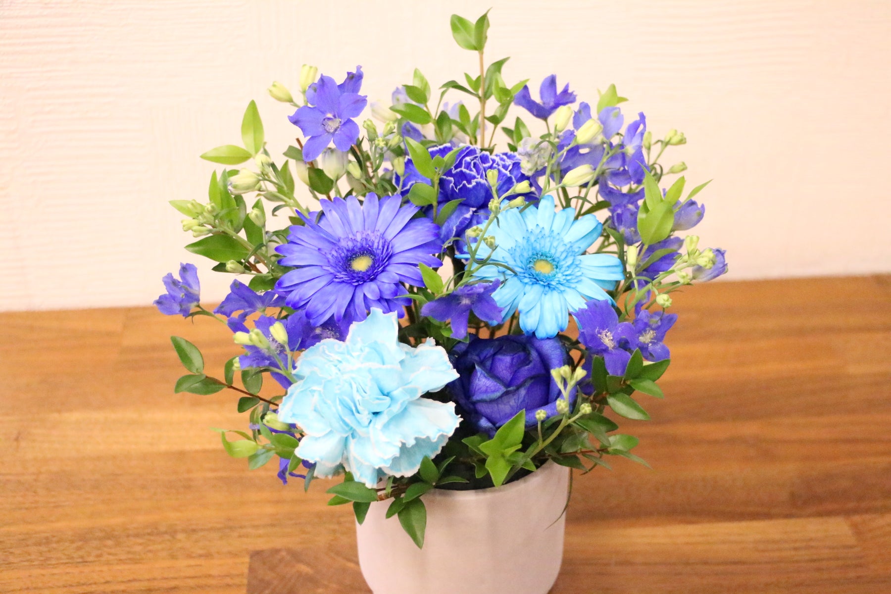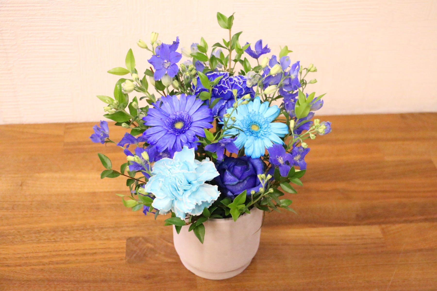 青色のお花をベースに清楚で爽やかな雰囲気で仕上げたアレンジメントです。