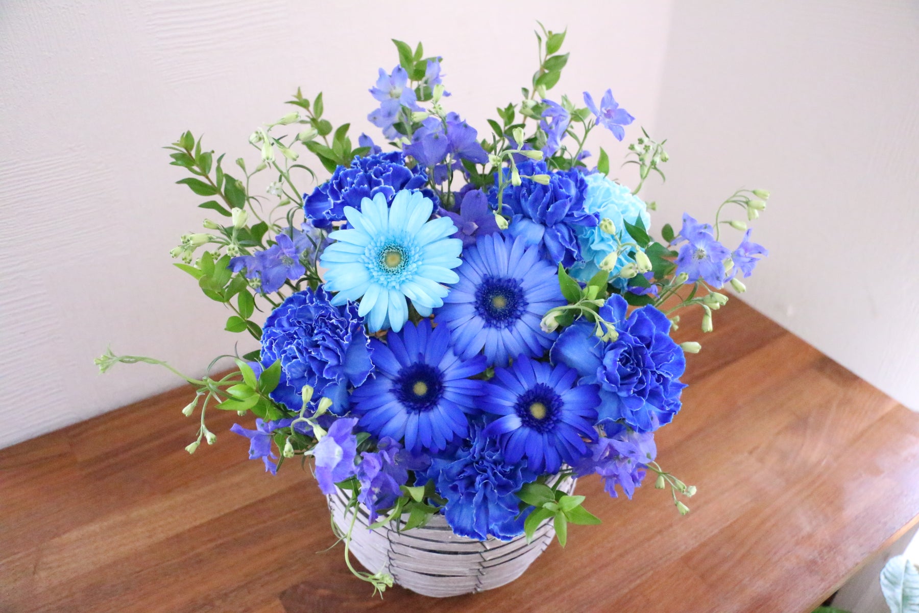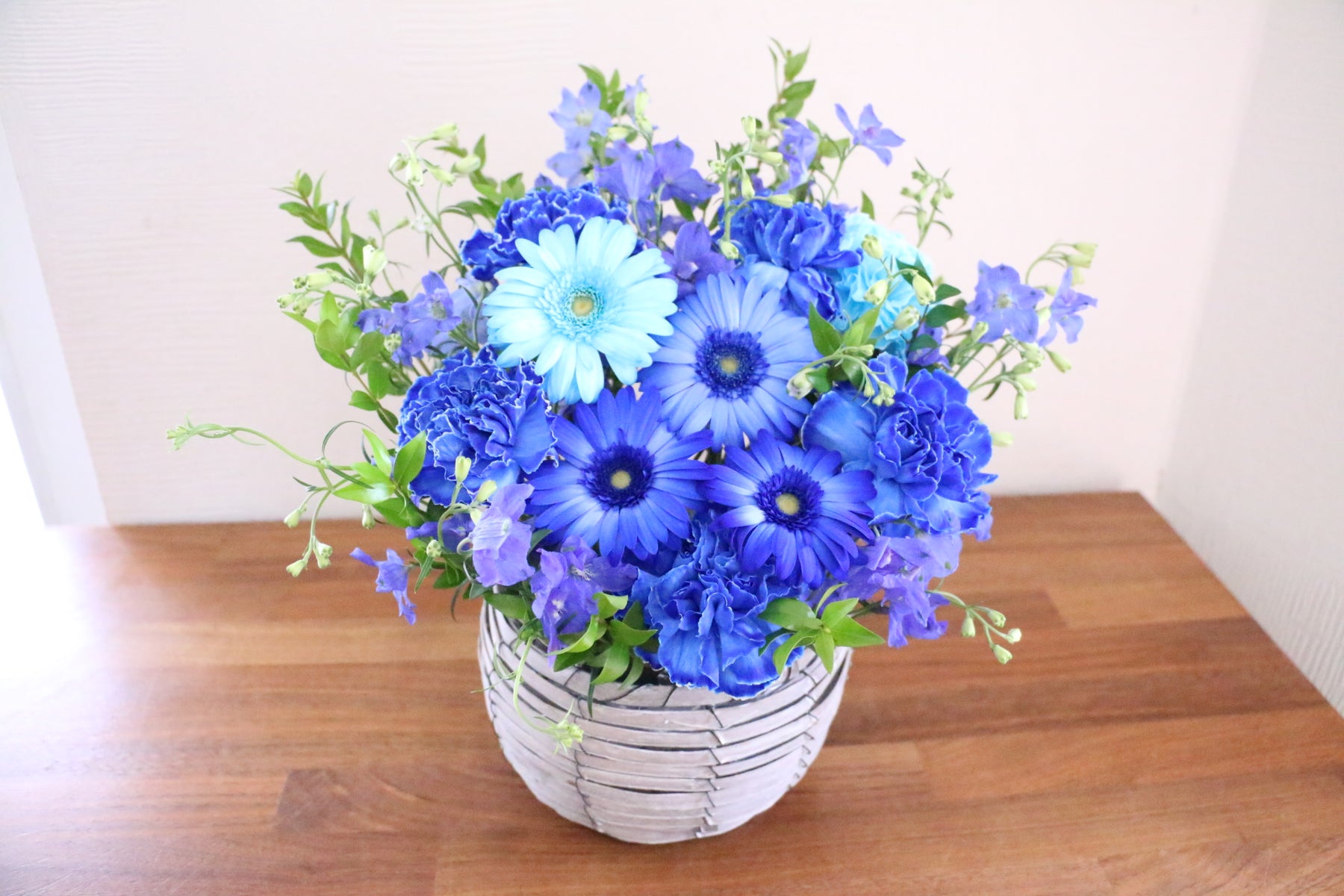 青色のお花をベースに清楚で爽やかな雰囲気で仕上げたアレンジメントです。