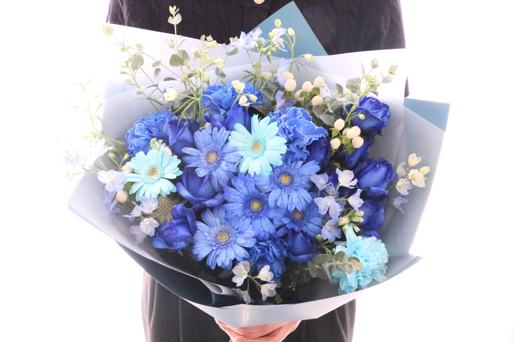青色のお花をベースに清楚で爽やかな雰囲気で仕上げた花束です。