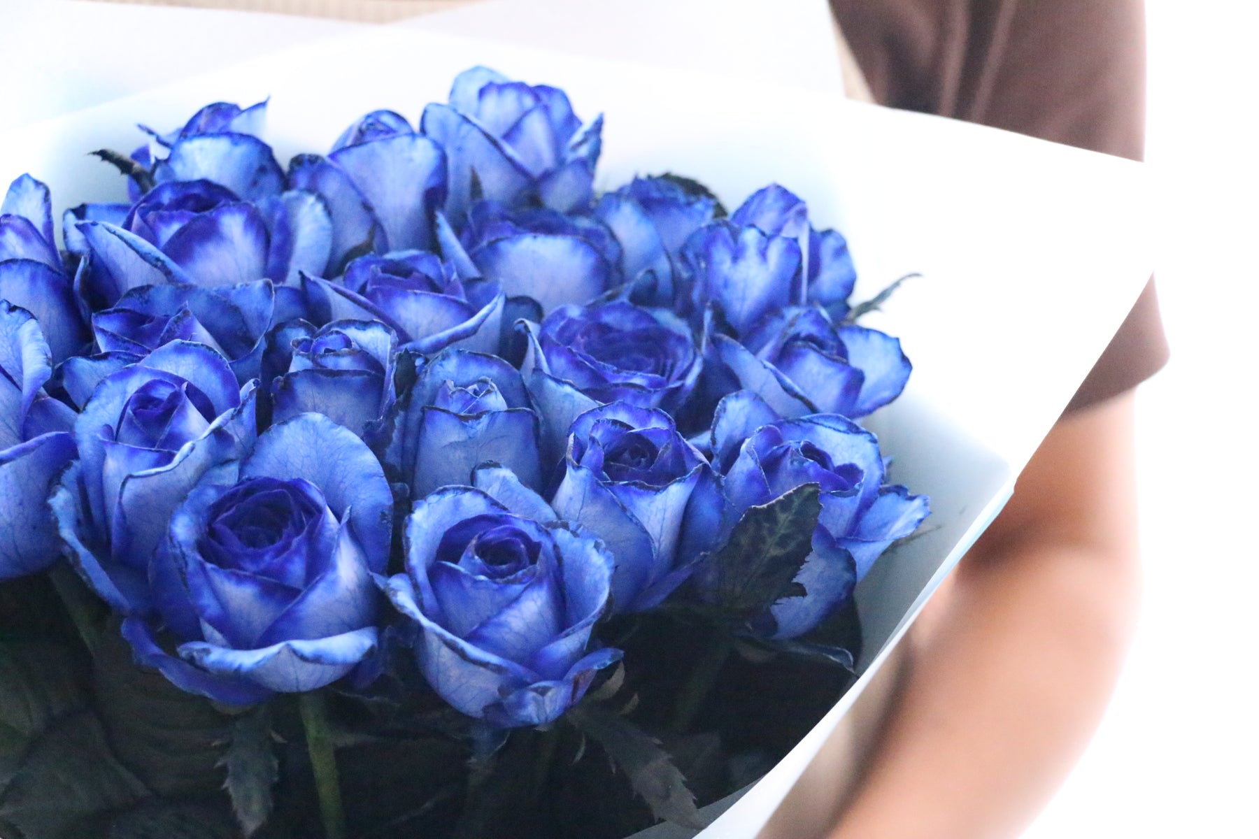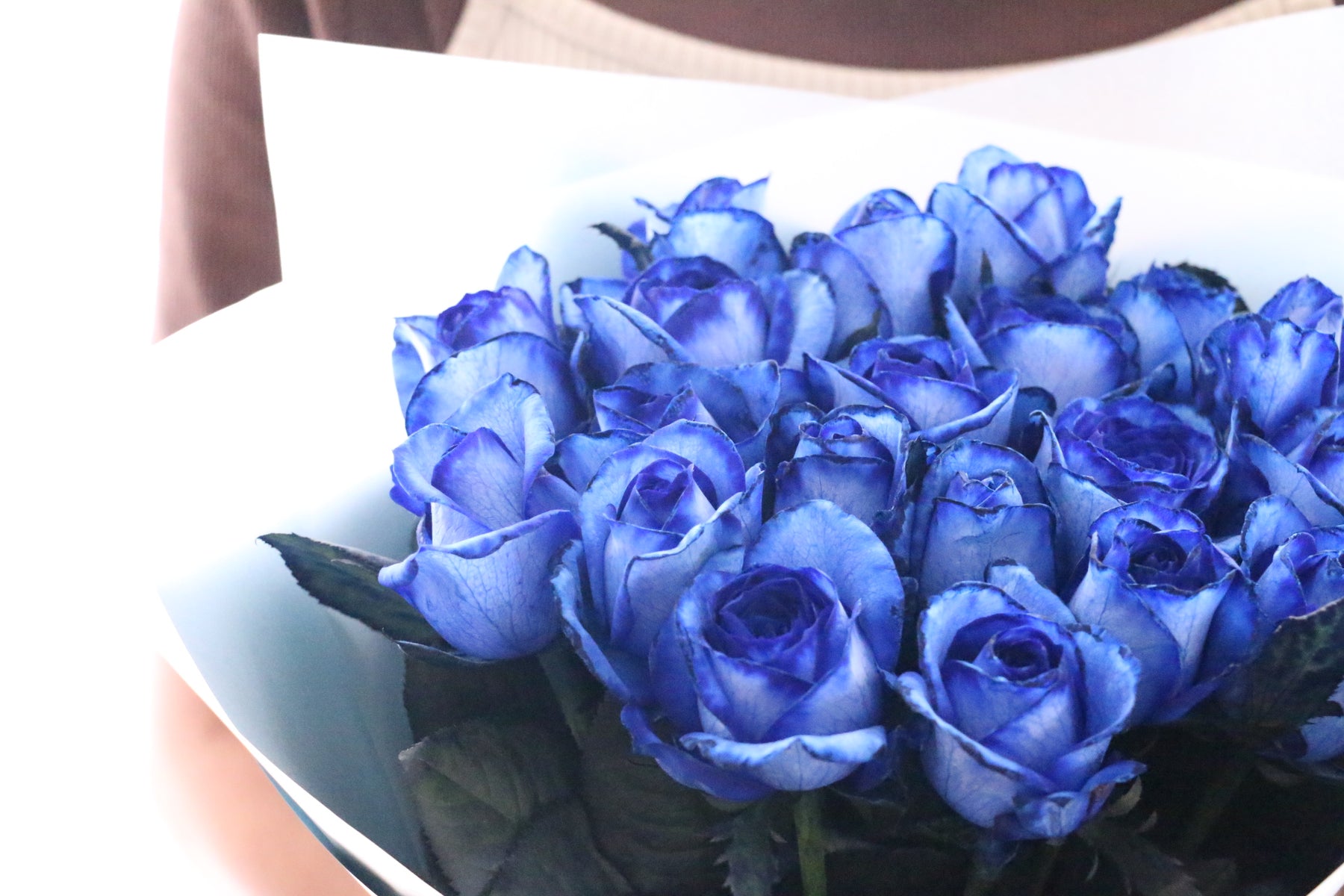 20本の青いバラの花束の花言葉は「真心あるのみ」。青いバラの花束は本数によって花言葉の意味が変わります。