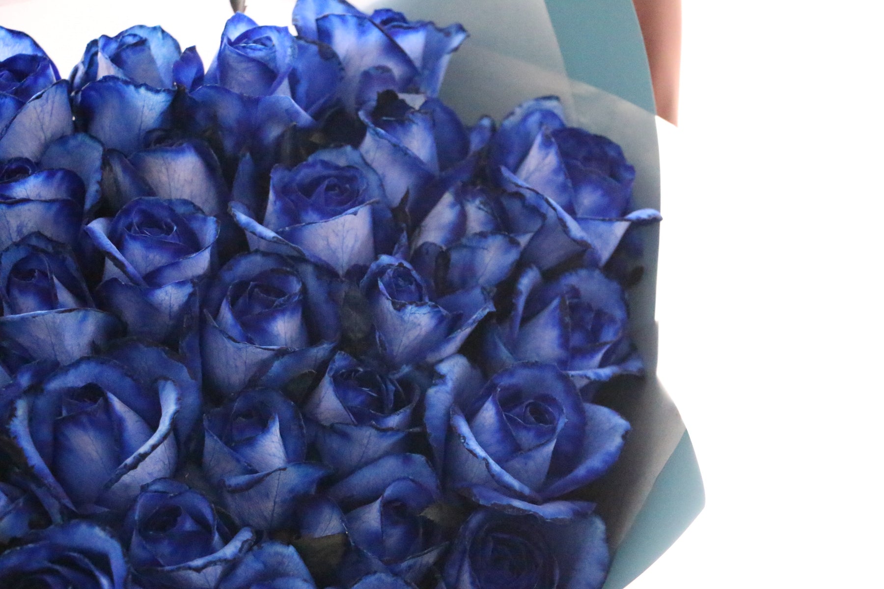 33本の青いバラの花束の花言葉は「生まれ変わってもあなたを愛します」。青いバラの花束は本数によって花言葉の意味が変わります。