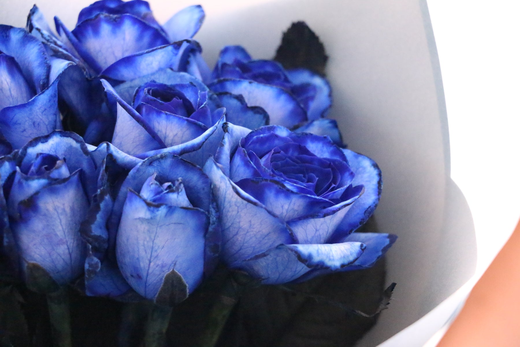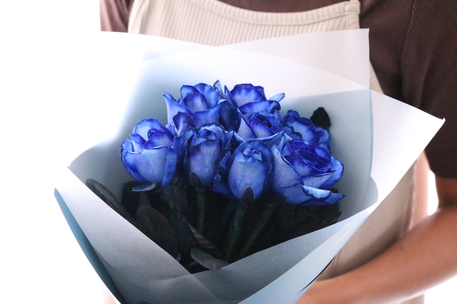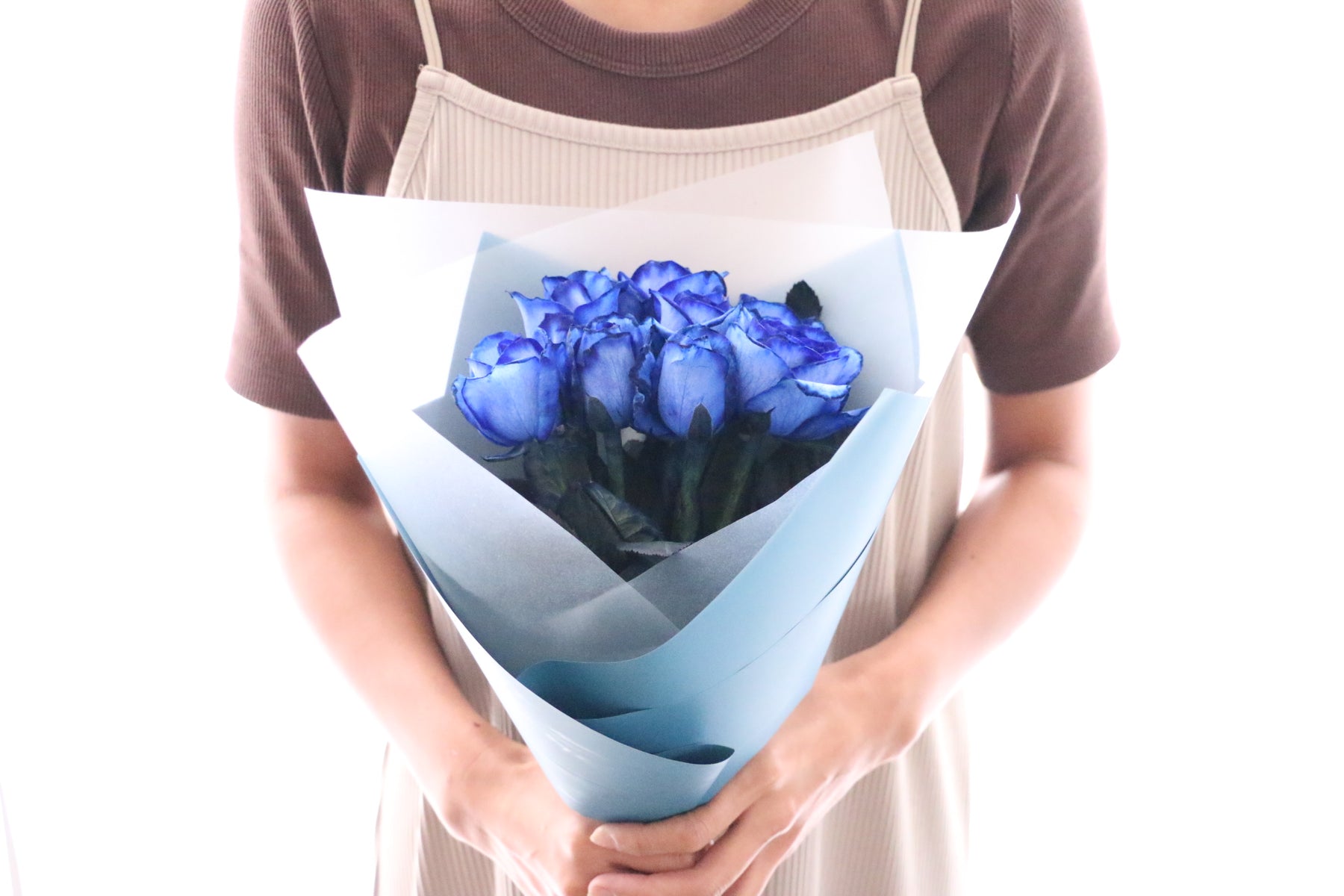 青いバラの花言葉は「夢かなう」「奇跡」です。青いバラの花束はプロポーズや結婚記念日、記念日、お誕生日など、愛情を伝えたい相手へのプレゼントとして最適なフラワーギフトです。