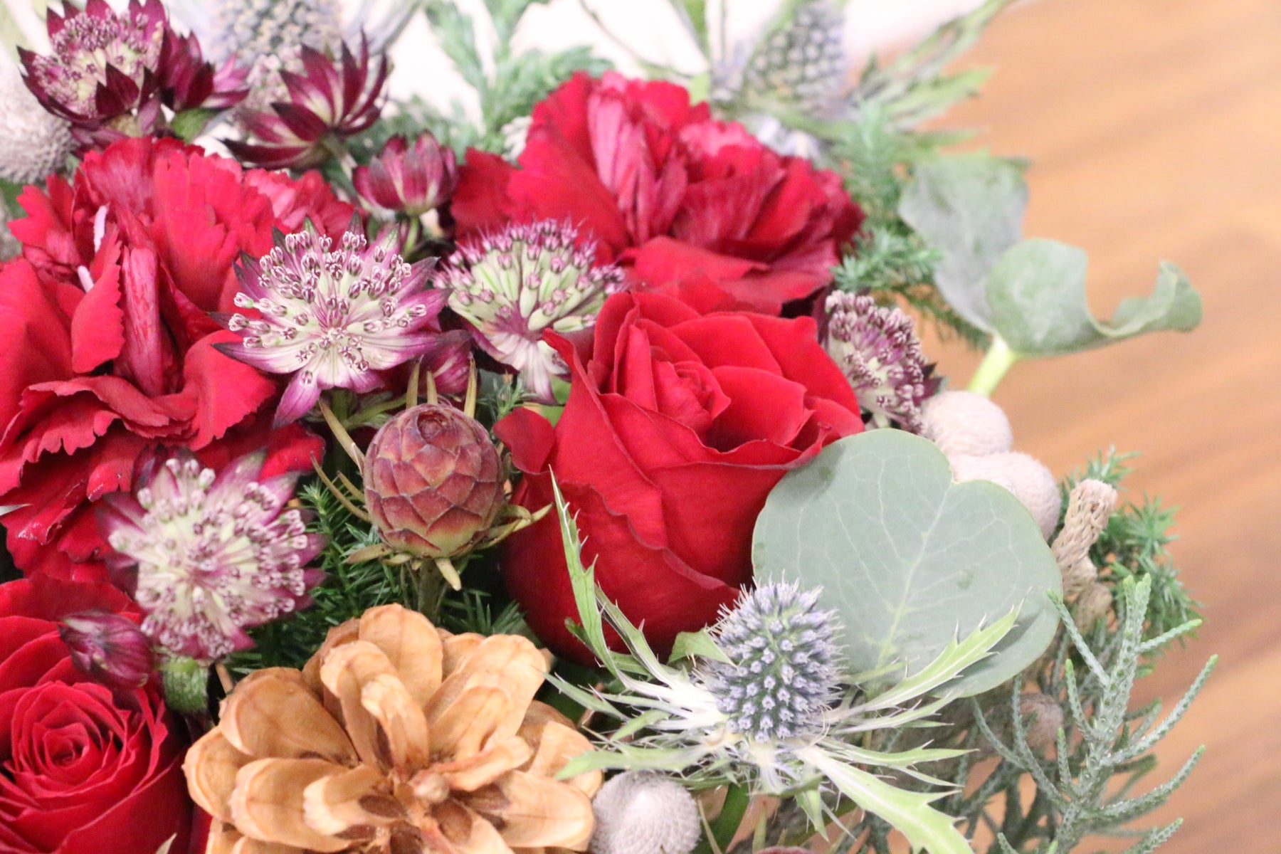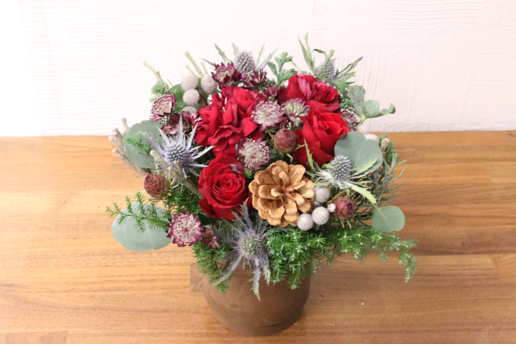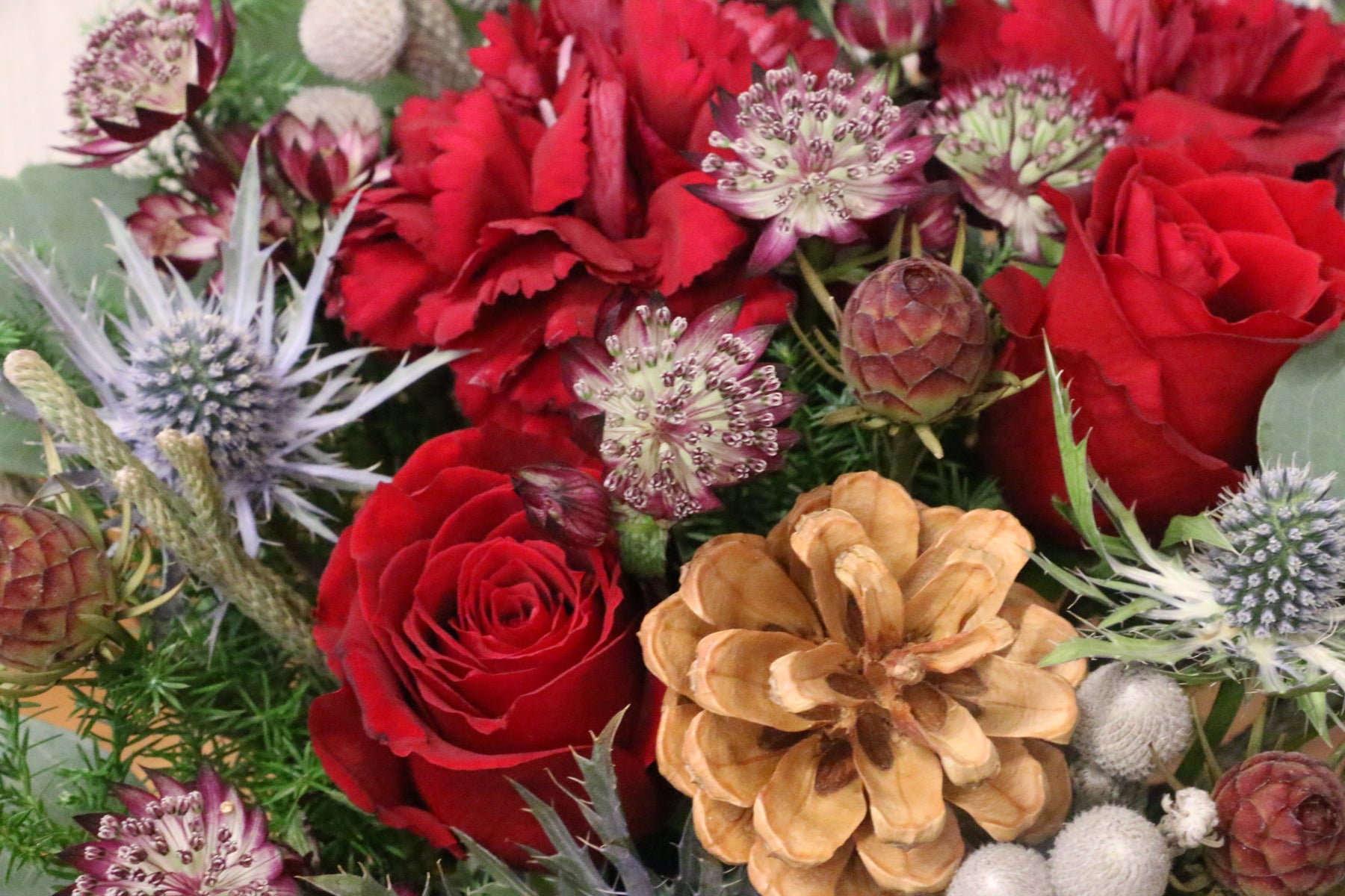 | 花材 | バラ、エレンジューム、ユーカリ、コニファー、松かさ、その他フローリストおまかせ |