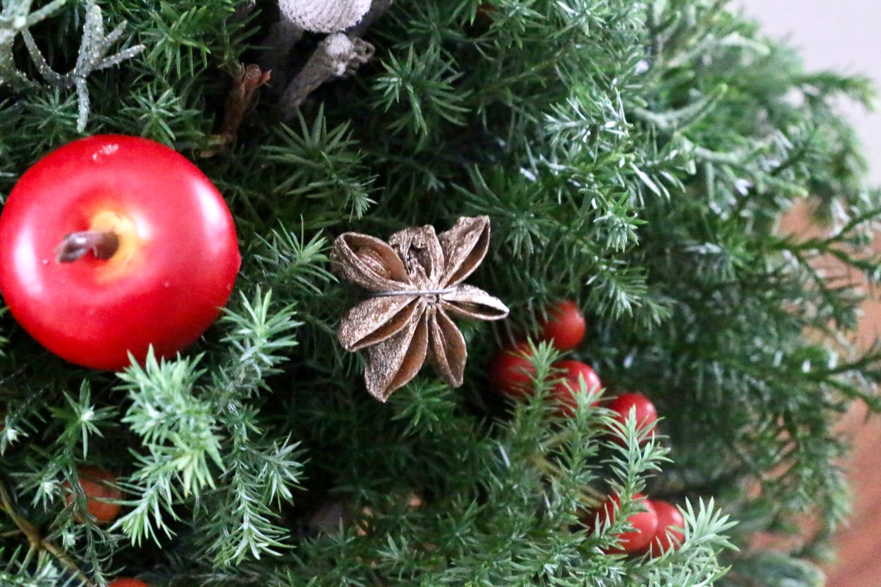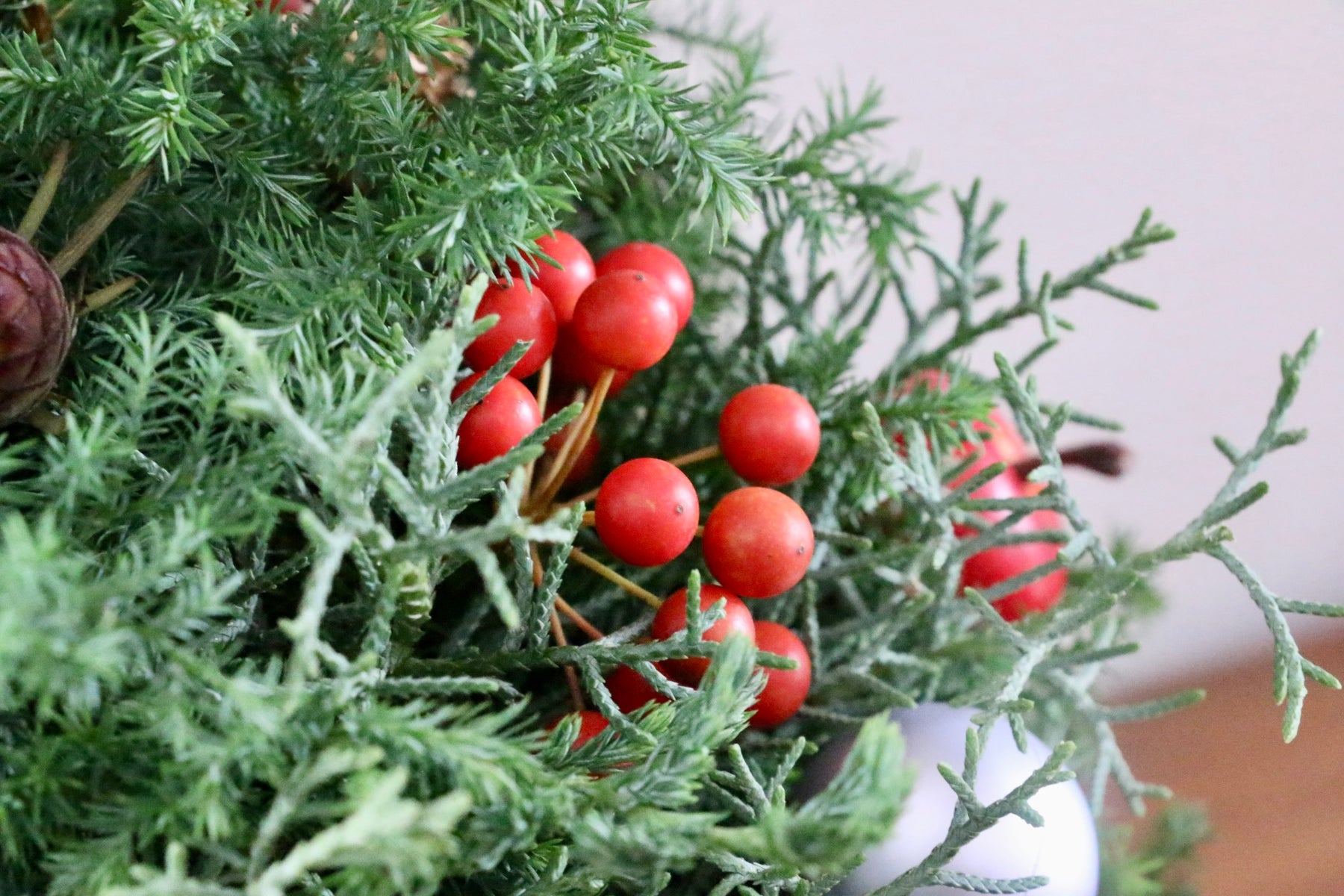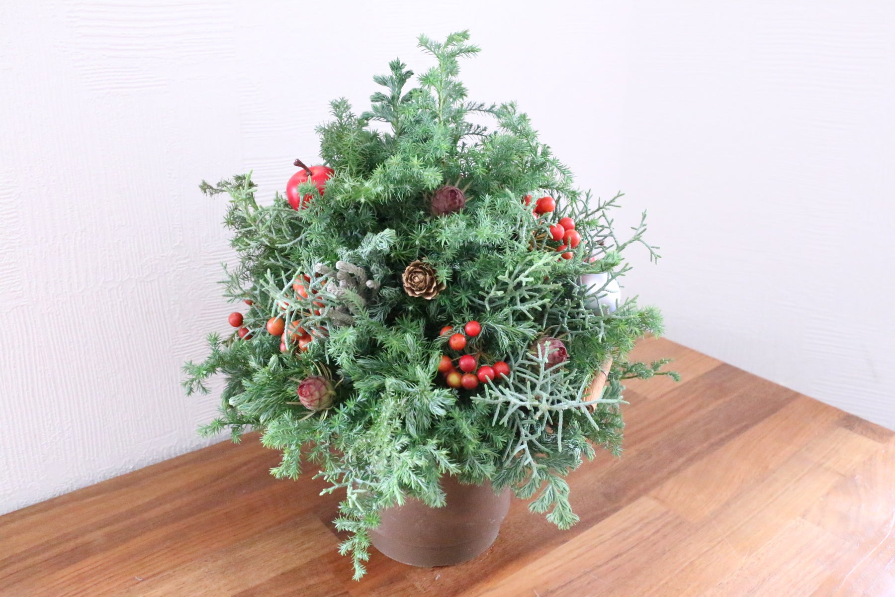 お部屋に飾るだけで、まるで小さなツリーを迎えたような華やかさがあるアレンジメントです。