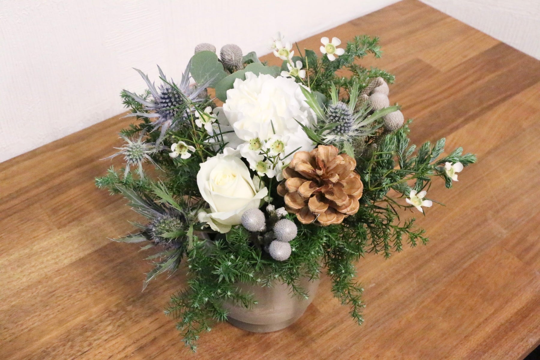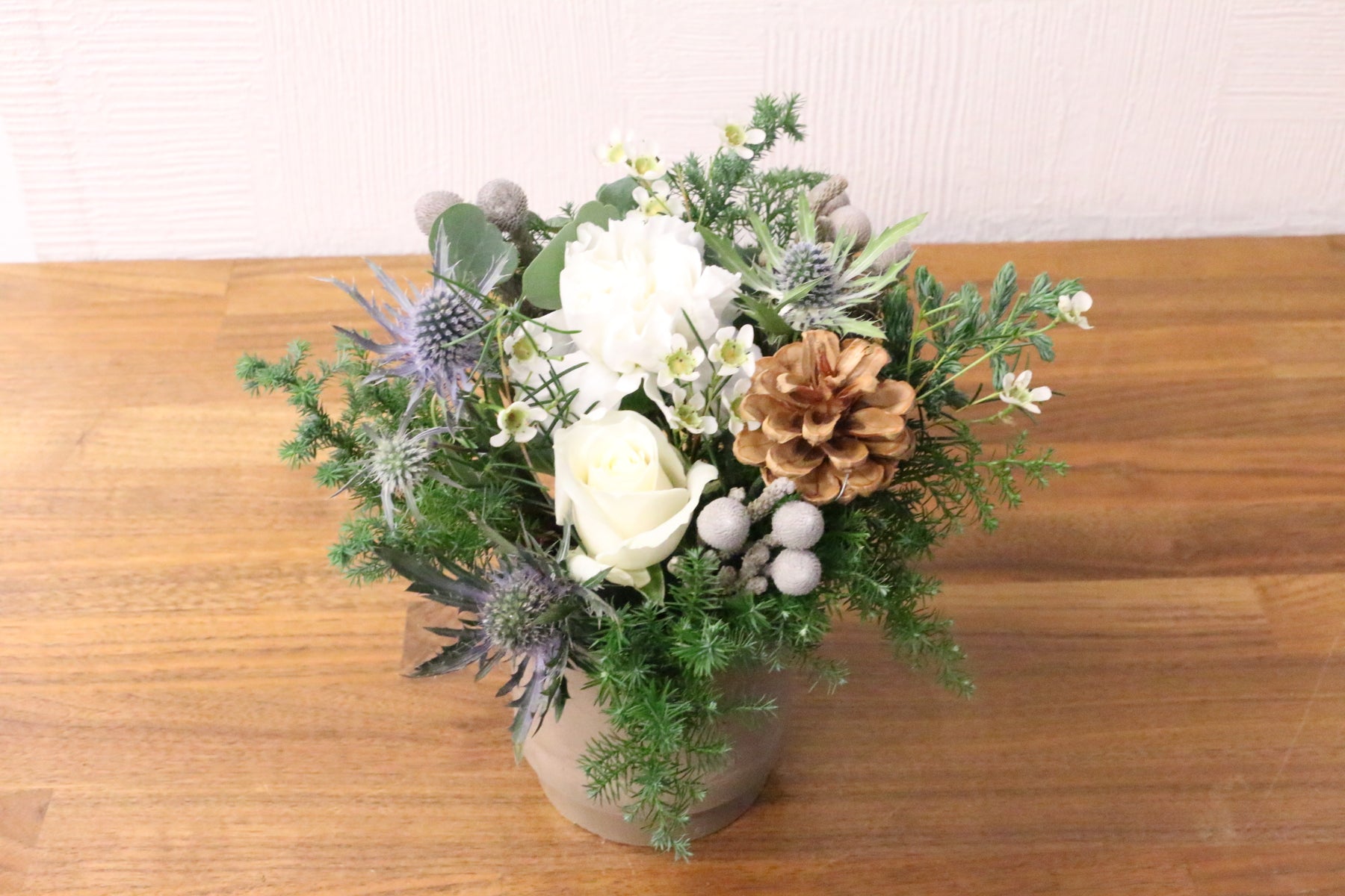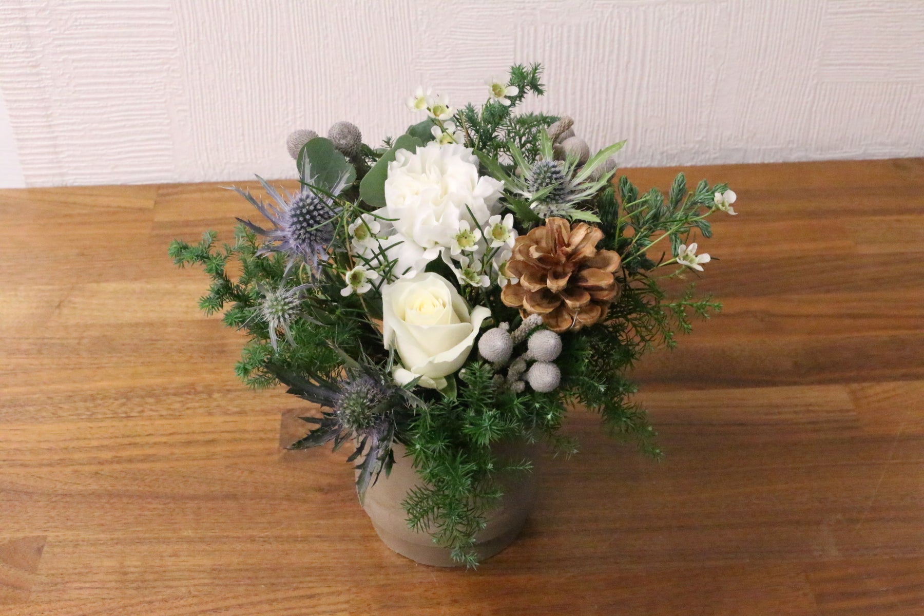 | 花材 | バラ、エレンジューム、ユーカリ、コニファー、松かさ、その他フローリストおまかせ |