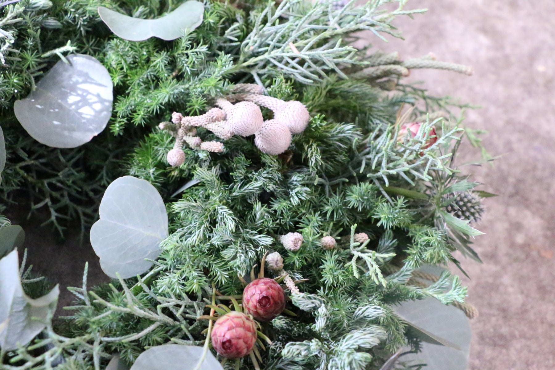 森の香りに包まれる、手作りのフレッシュクリスマスリースです。