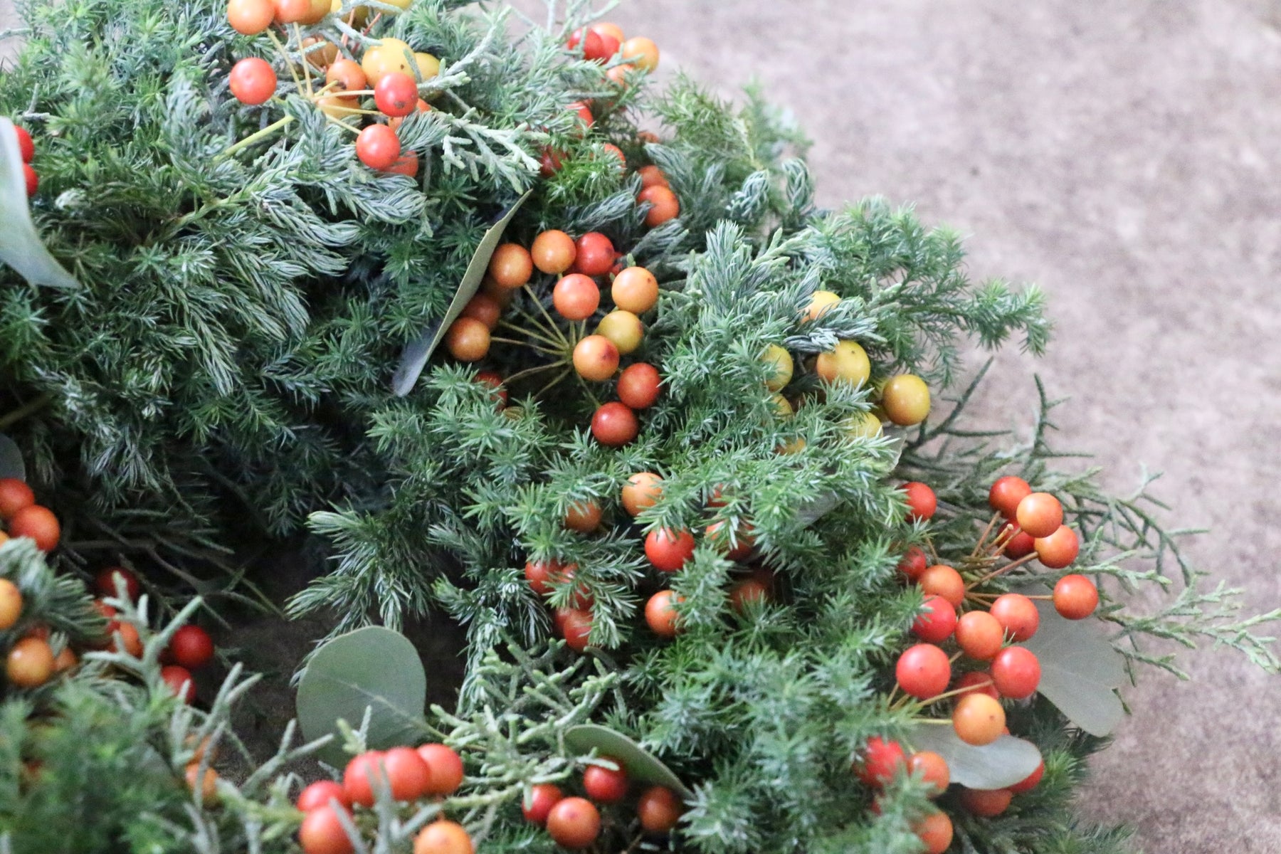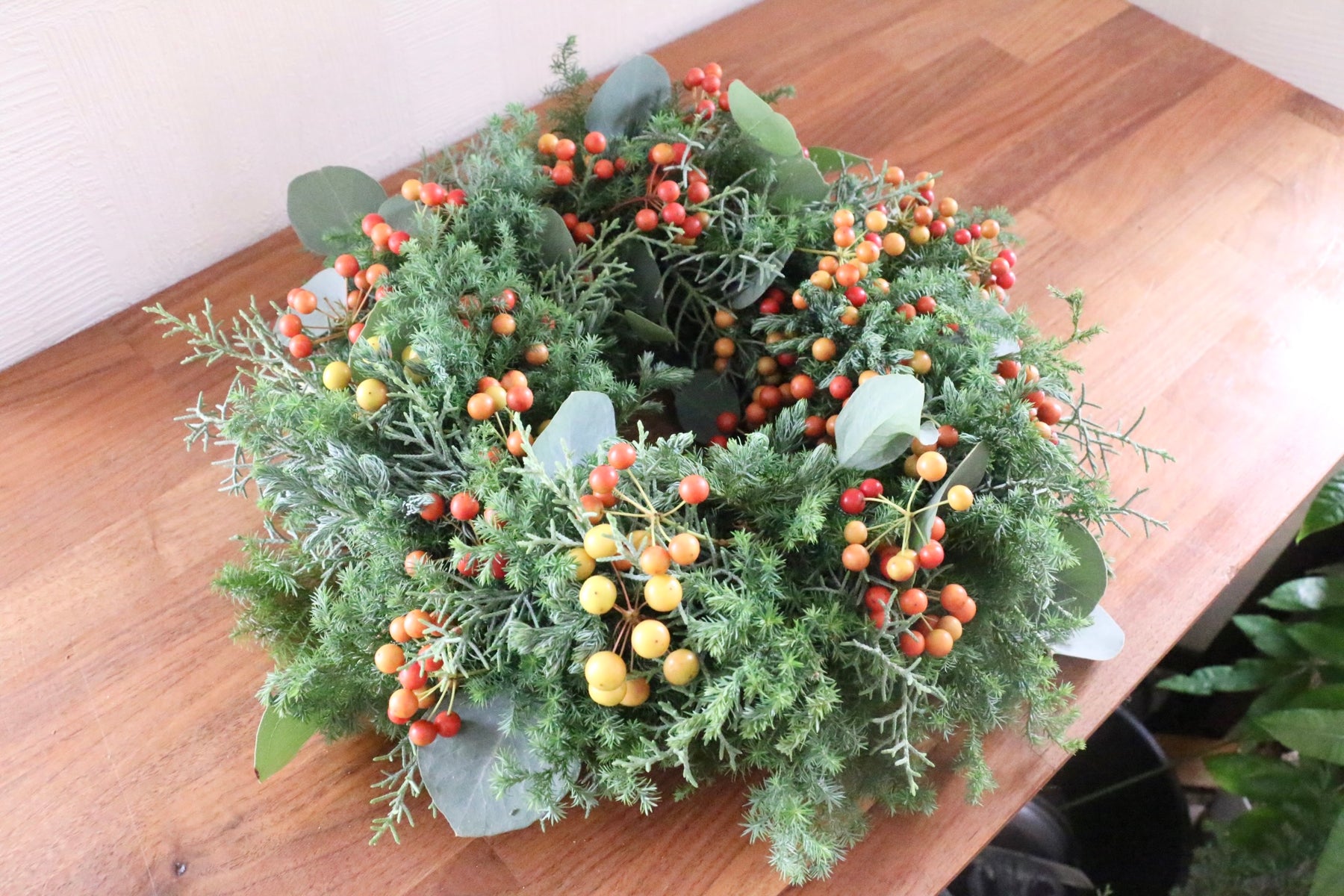 クリスマスらしい彩りと香りが楽しめるリースです。