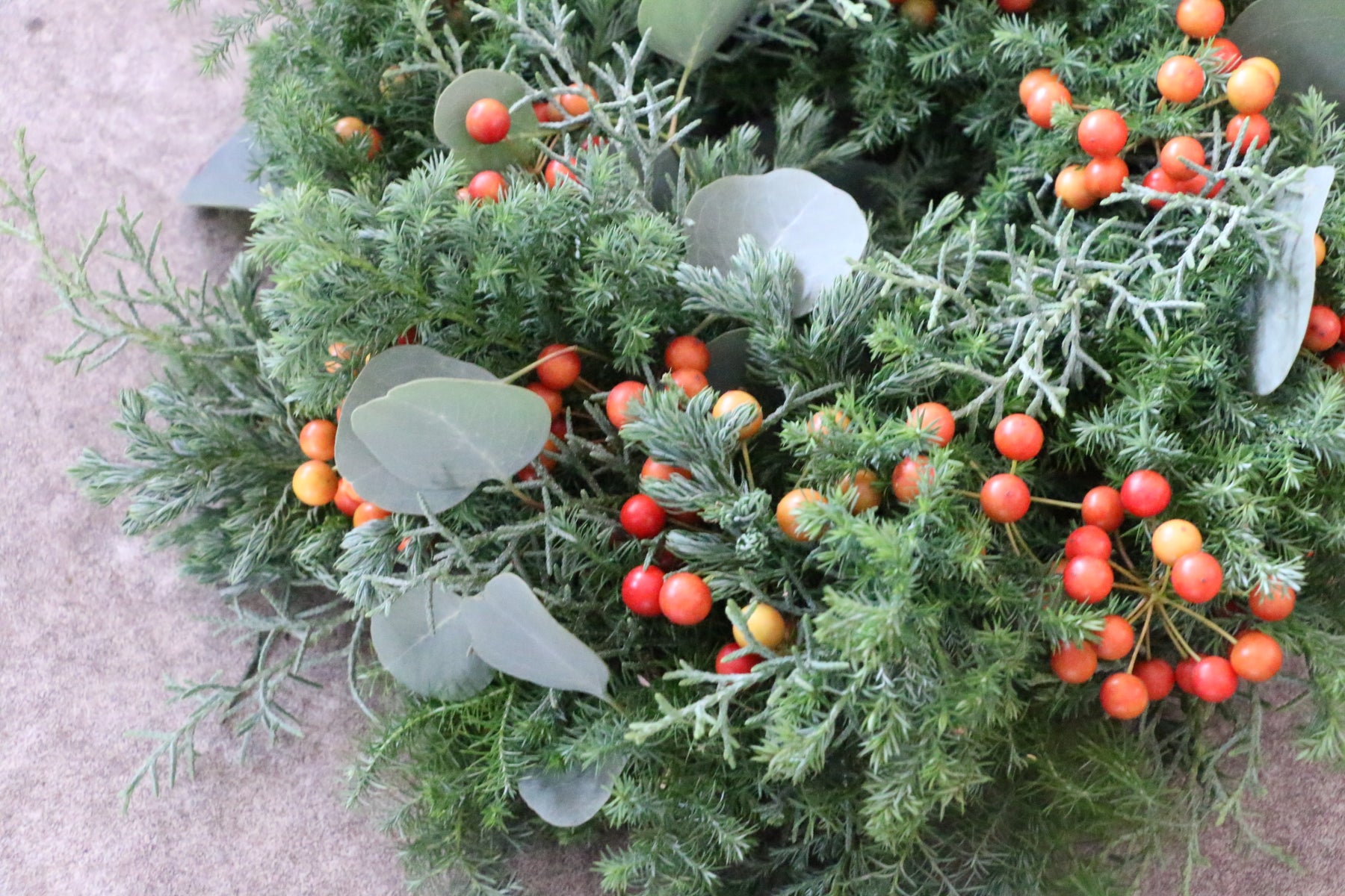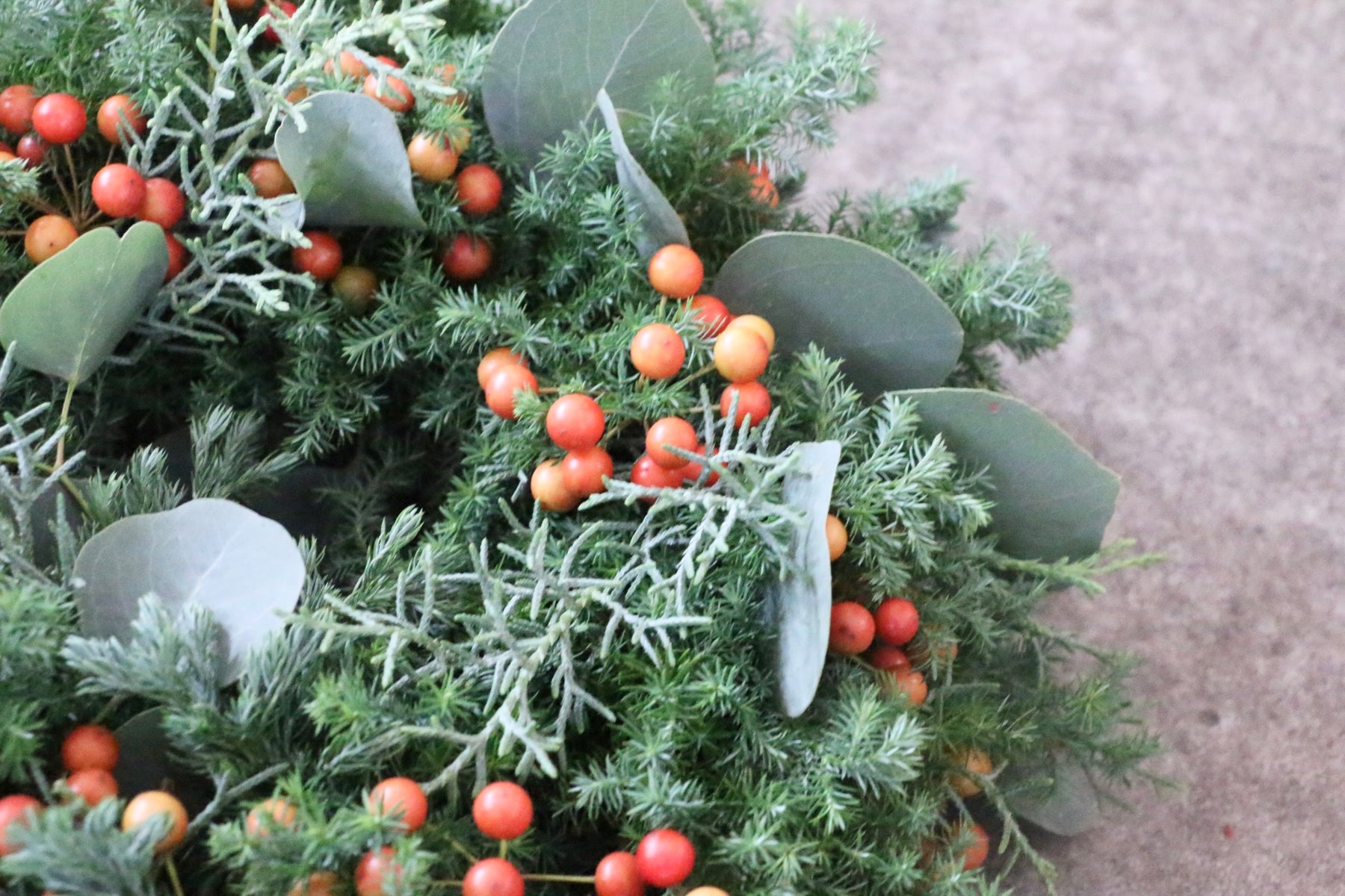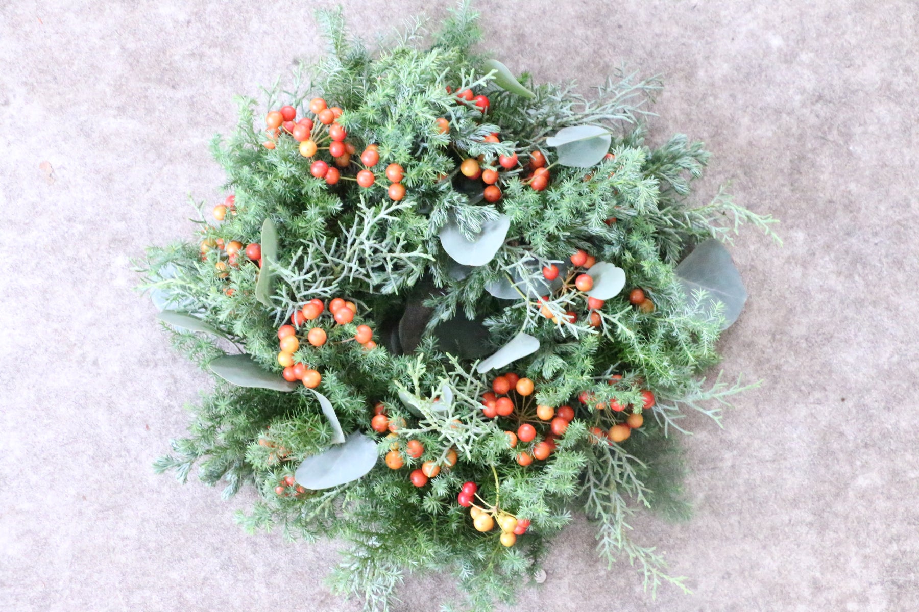 クリスマスらしい彩りと香りが楽しめるリースです。
