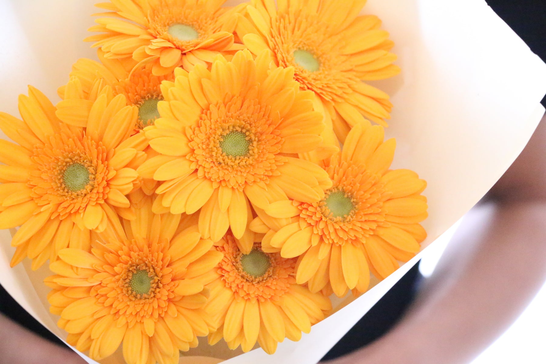 ガーベラ全体(花色を問わない)では「希望」「前向き」などポジティブな花言葉を持っています。よりオリジナルのメッセージを込めたい場合はお相手に合わせて花色別の花言葉からお選びいただくこともおすすめです。