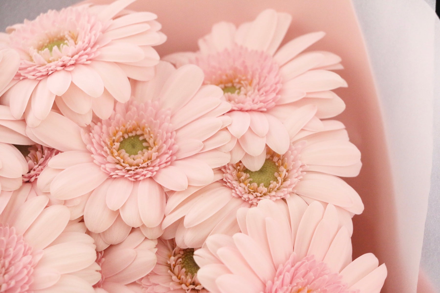 ガーベラの色味は以下の薄めのものから濃いめのものの中から入荷状況に合わせてお入れします。(写真はイメージです。掲載の品種以外のものをお選びする場合もございます。)