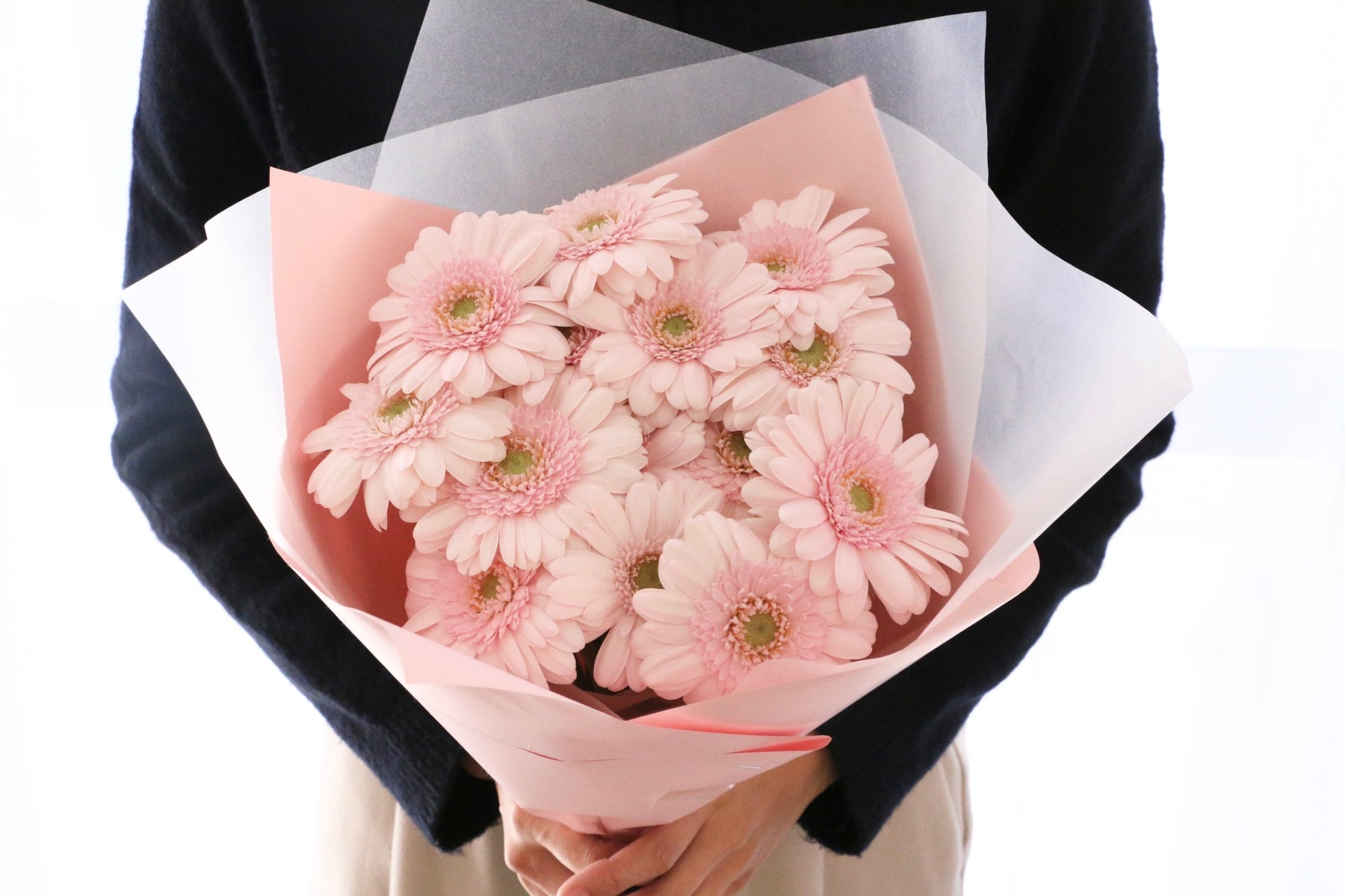 ガーベラの品種は発送のタイミングで市場に入荷した新鮮なものをお入れします。そのため、写真のガーベラとは異なる品種・色味・サイズのものが届くことがございますので、予めご了承ください。