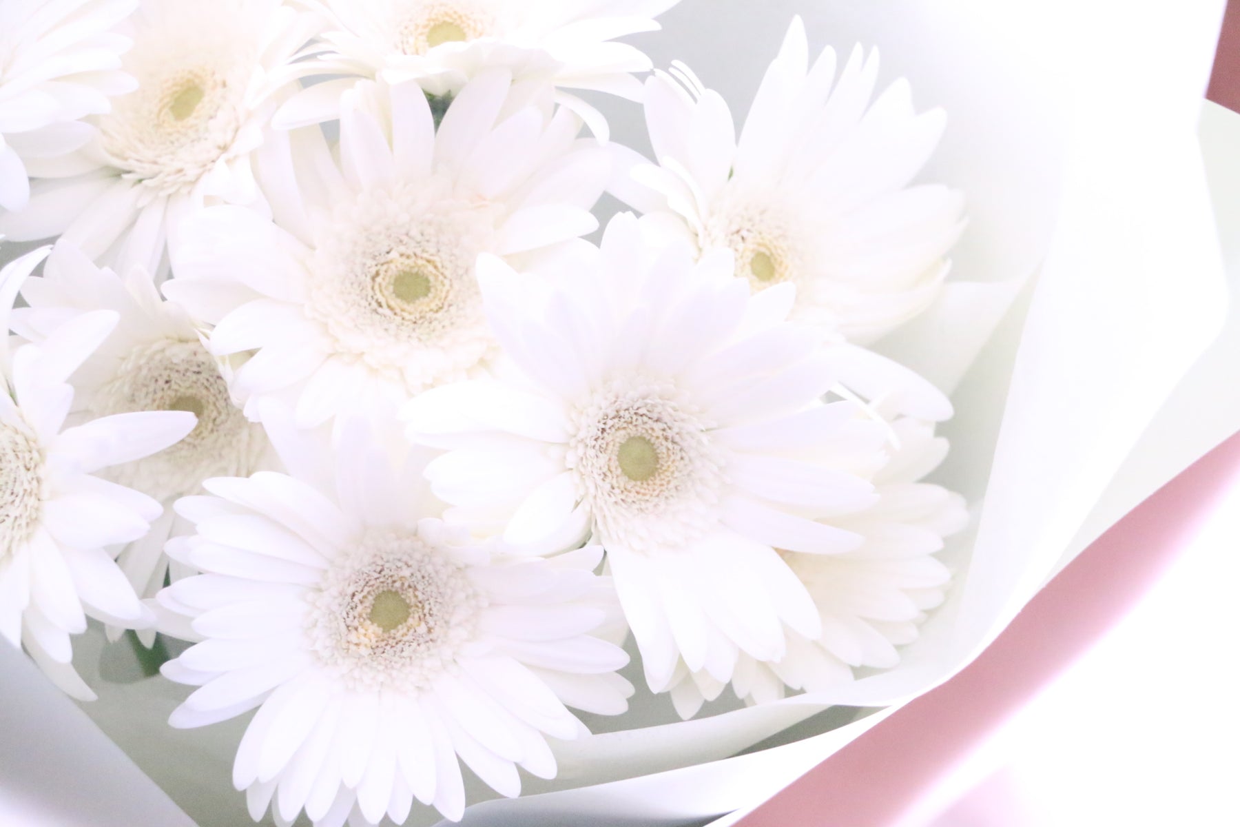白色のガーベラは「希望」「純潔」の花言葉を持っています。