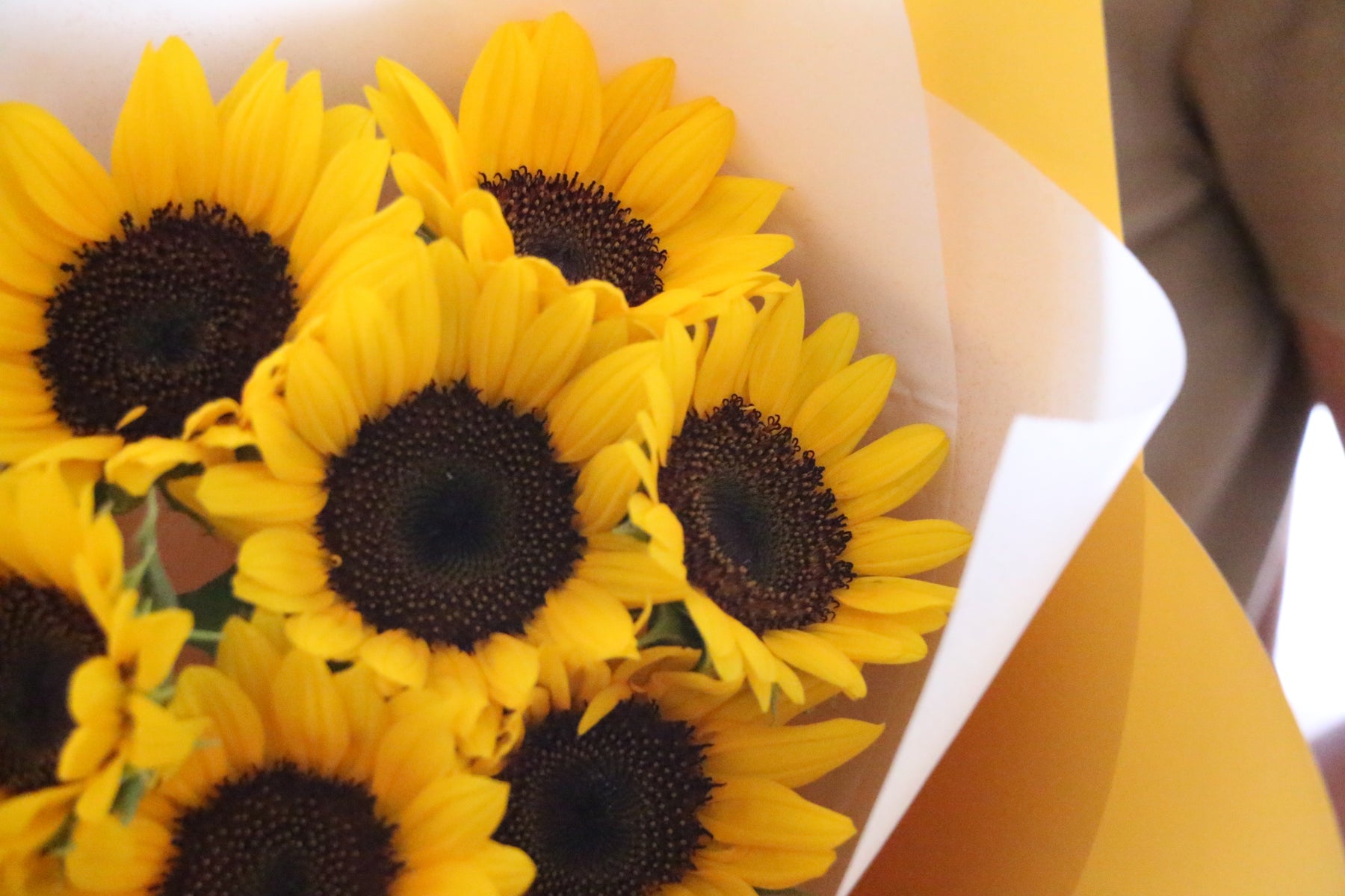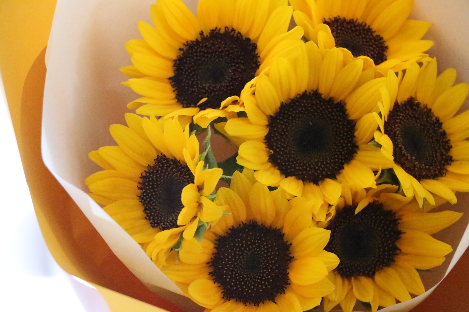 花言葉の意味を意識せず、ひまわりだけでまとめたシンプルな明るい花束としてもお選びいただけます。ご用途はお誕生日、プロポーズ、ちょっとしたお礼などあらゆる場面でもおすすめです。