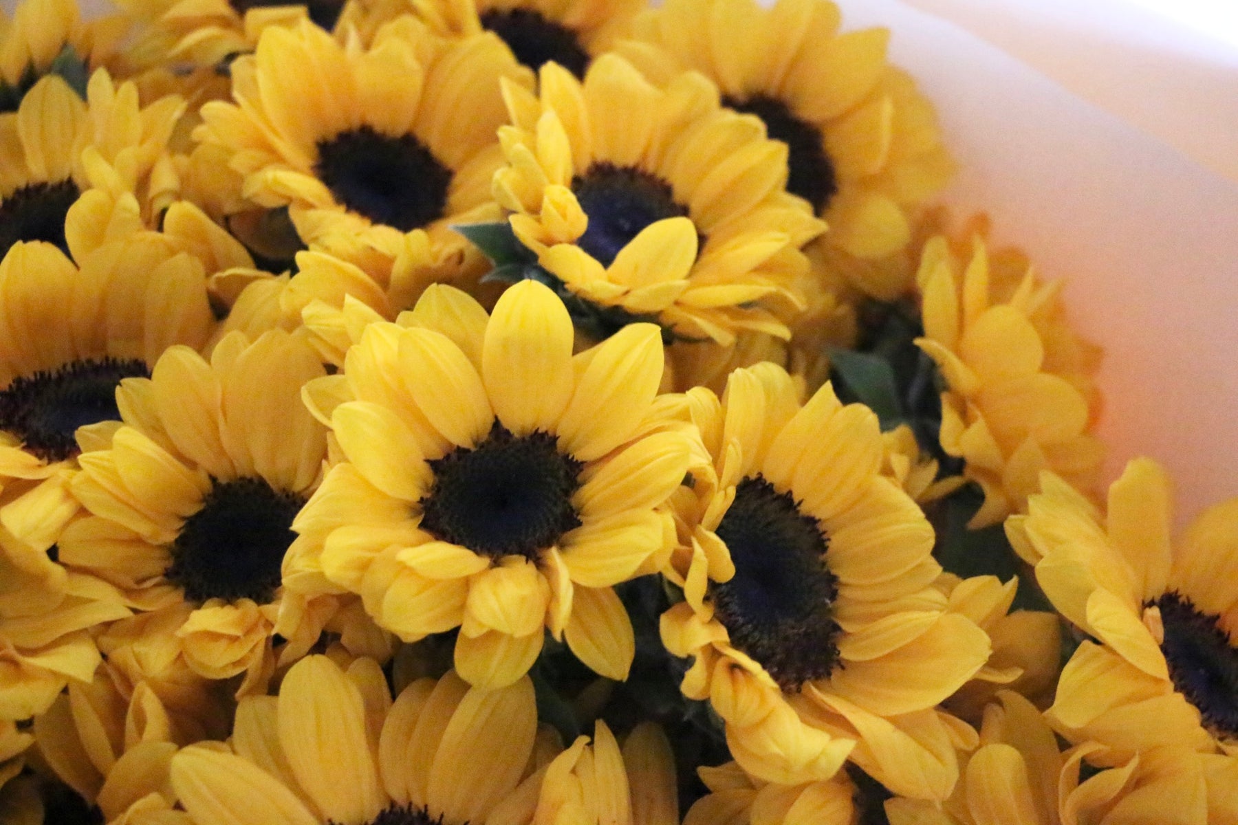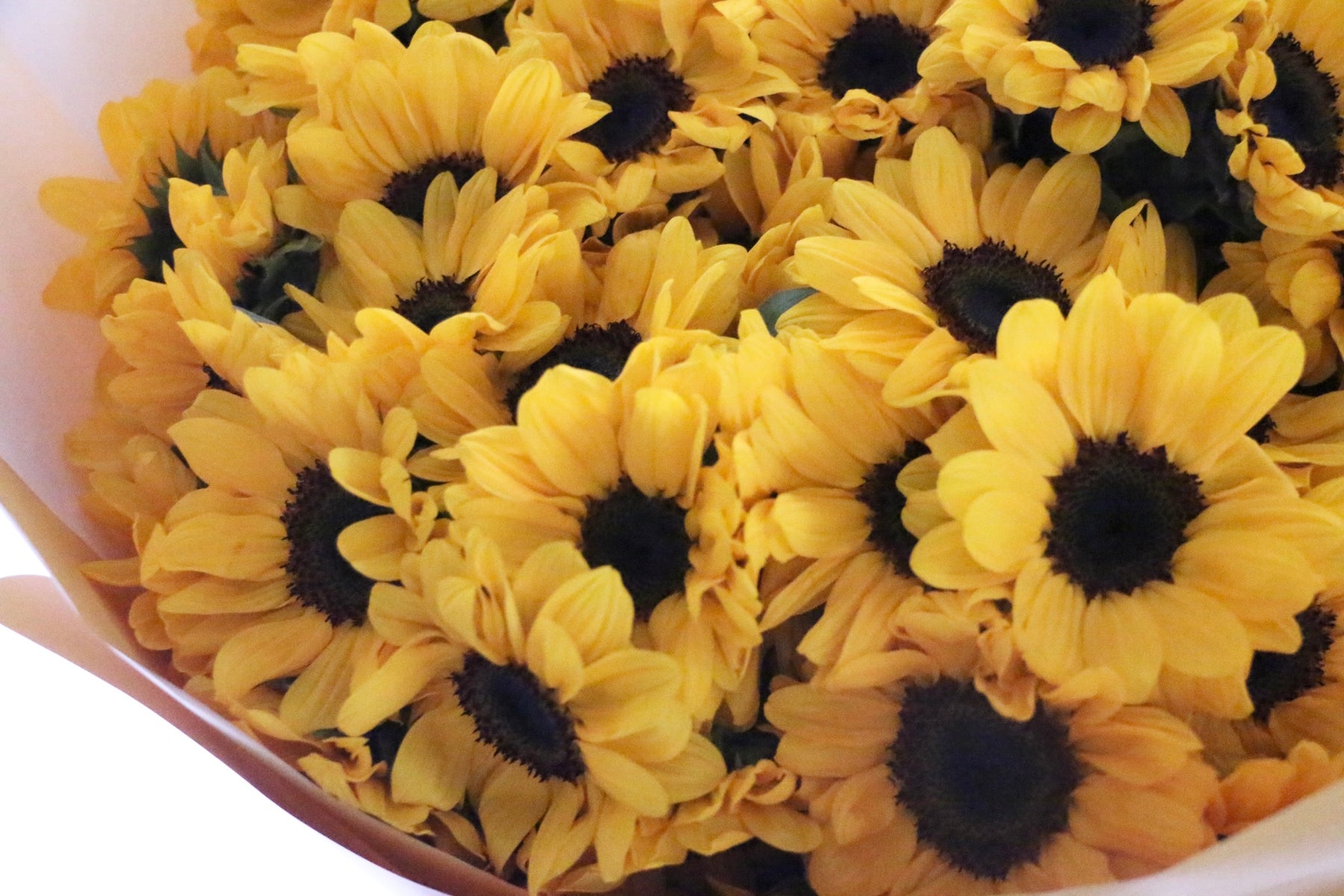 ひまわり80本を束ねたボリュームもインパクトも大きい特別サイズの花束です。