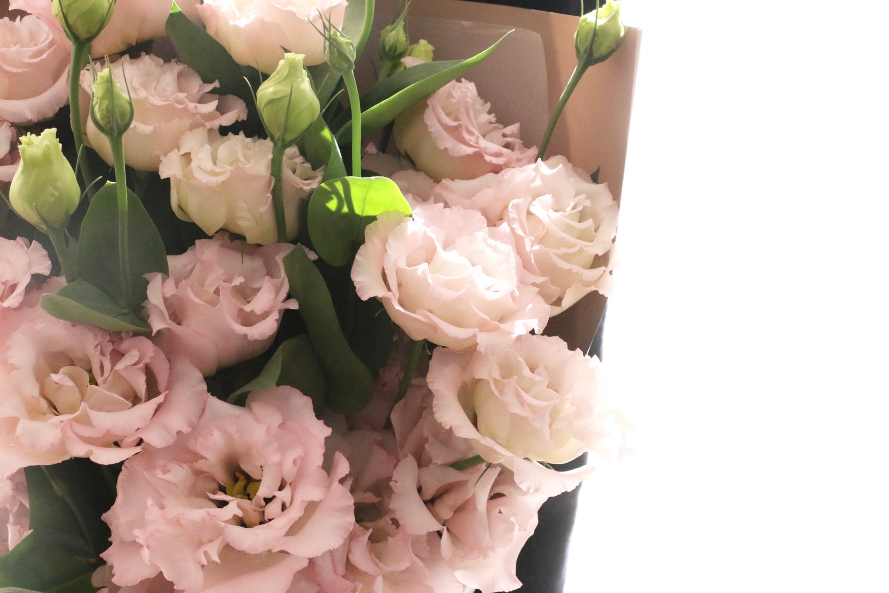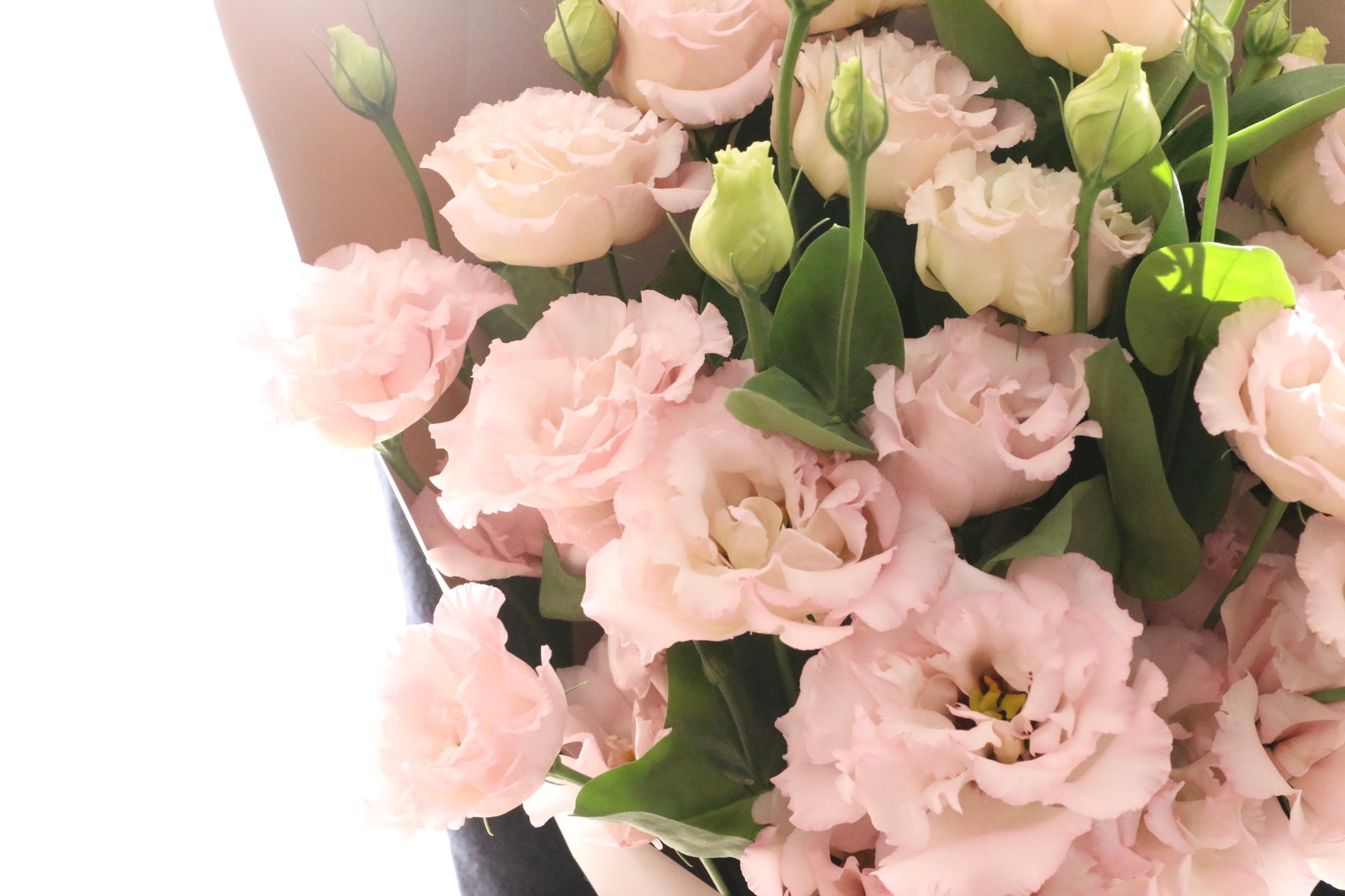 柔らかな色合いが美しい、ピンクのトルコキキョウだけで束ねた上品な花束です。