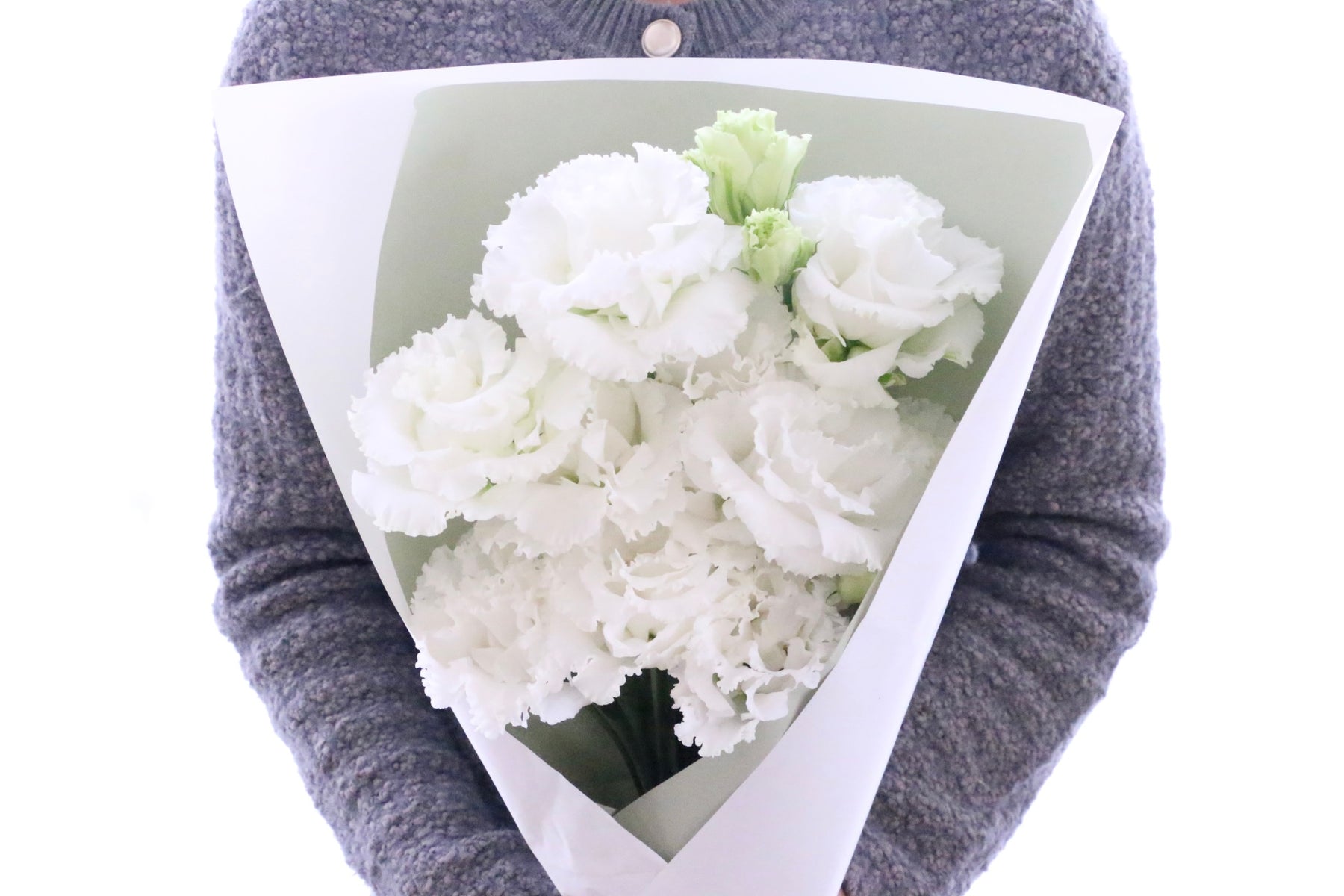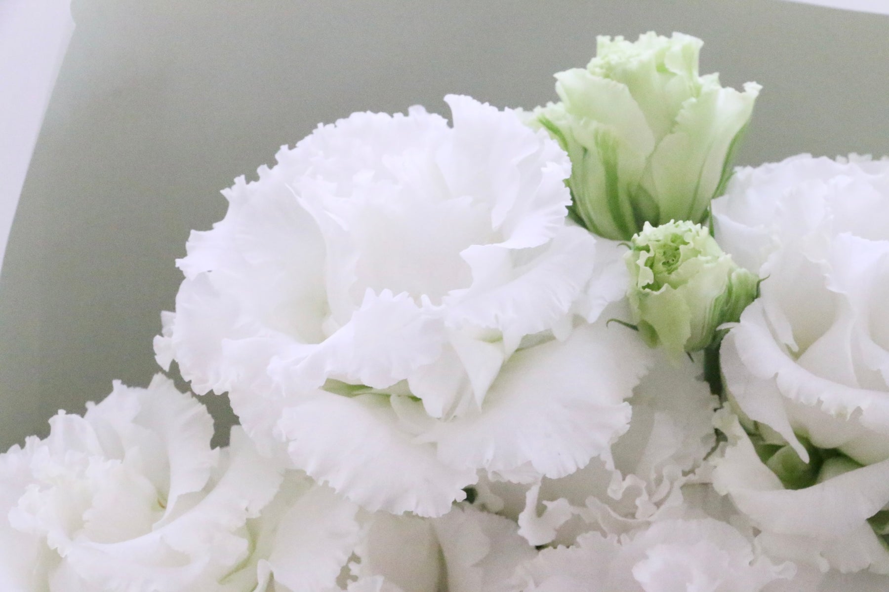 凛とした佇まいの中にやさしさを感じる白いトルコキキョウは、贈る相手を選ばない上品なギフトとして人気です。