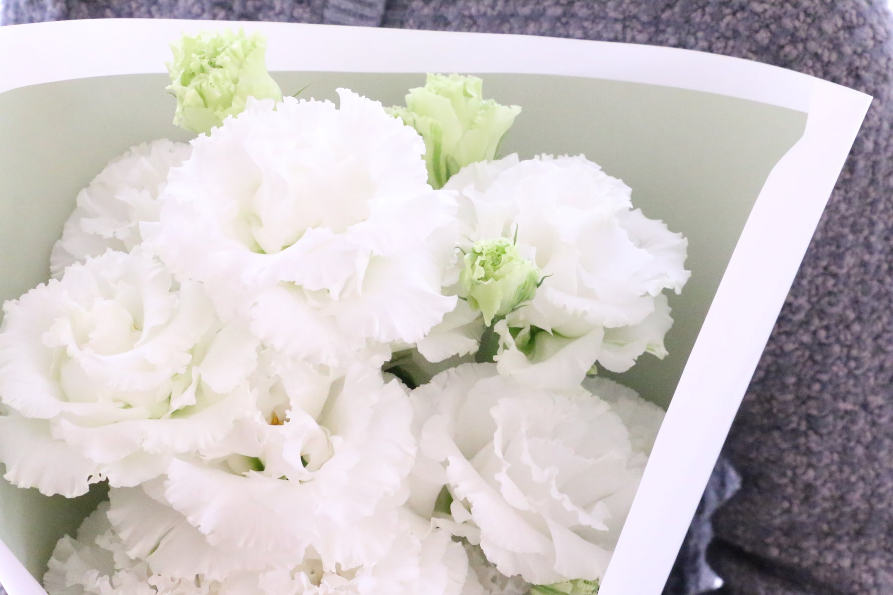 凛とした佇まいの中にやさしさを感じる白いトルコキキョウは、贈る相手を選ばない上品なギフトとして人気です。