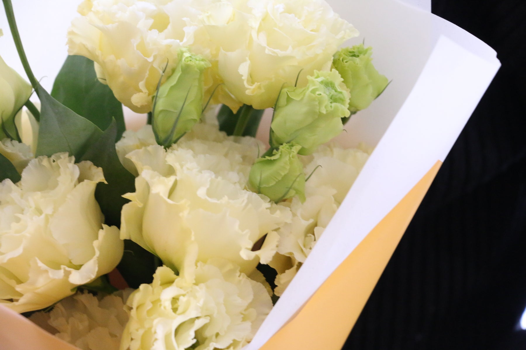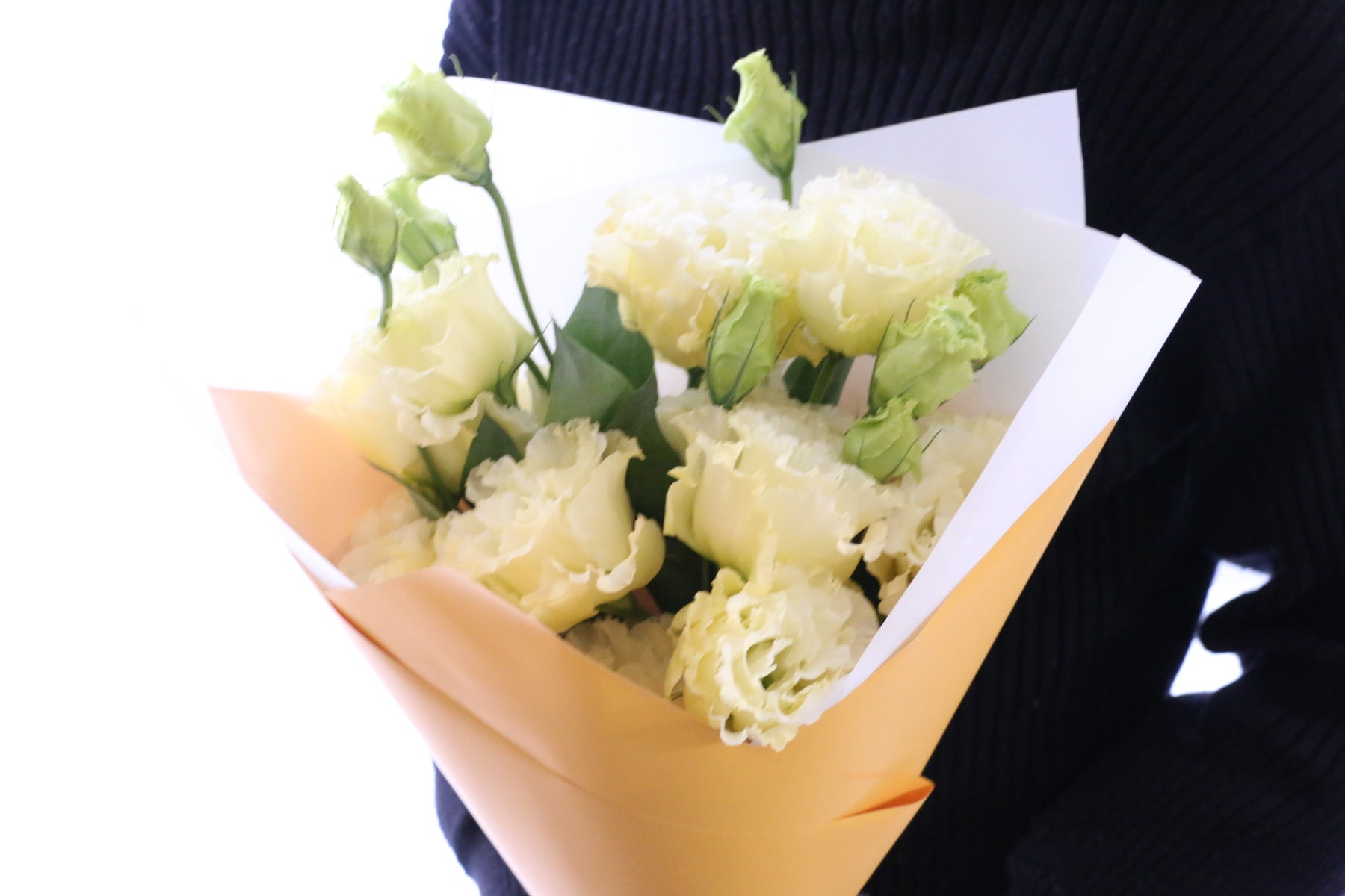 クリーム色のトルコキキョウは、「思いやり」「優しさ」「清らかな愛情」を感じさせる色合いです。