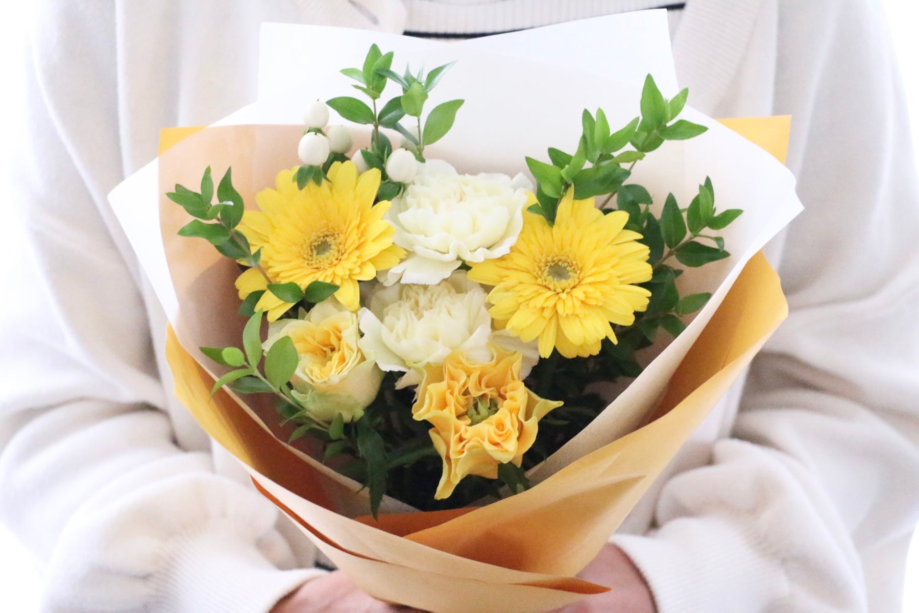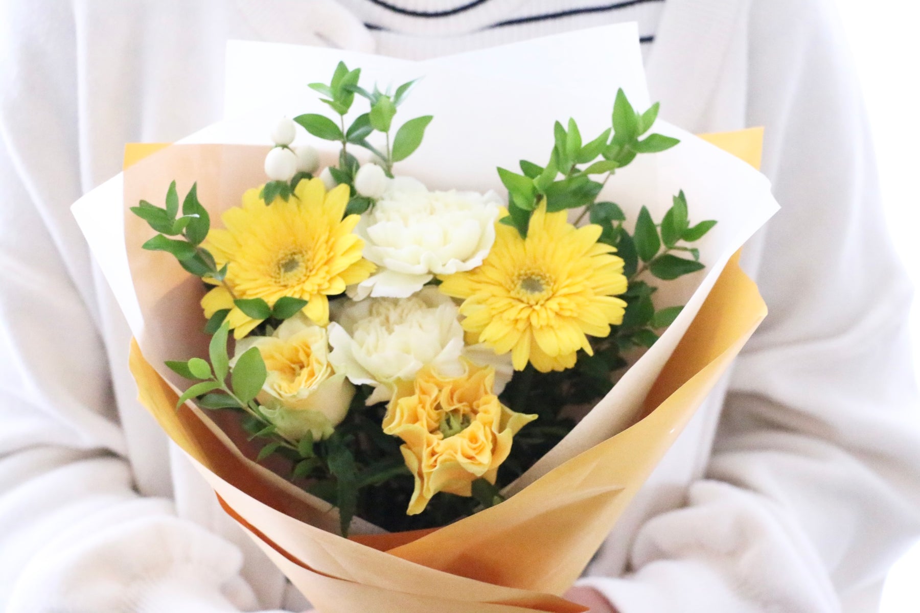 Sサイズは、片手で持てるコンパクトなサイズの花束です。