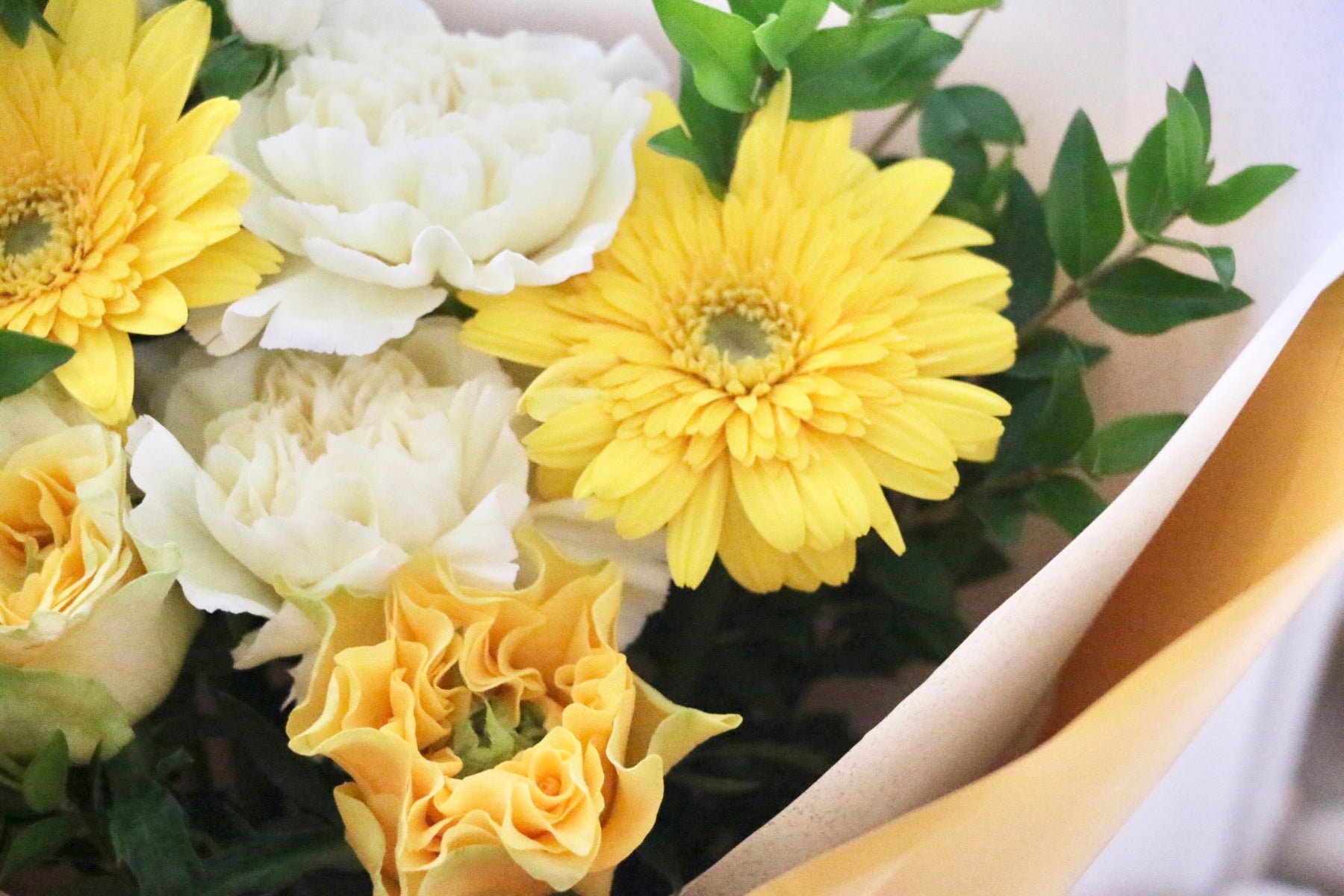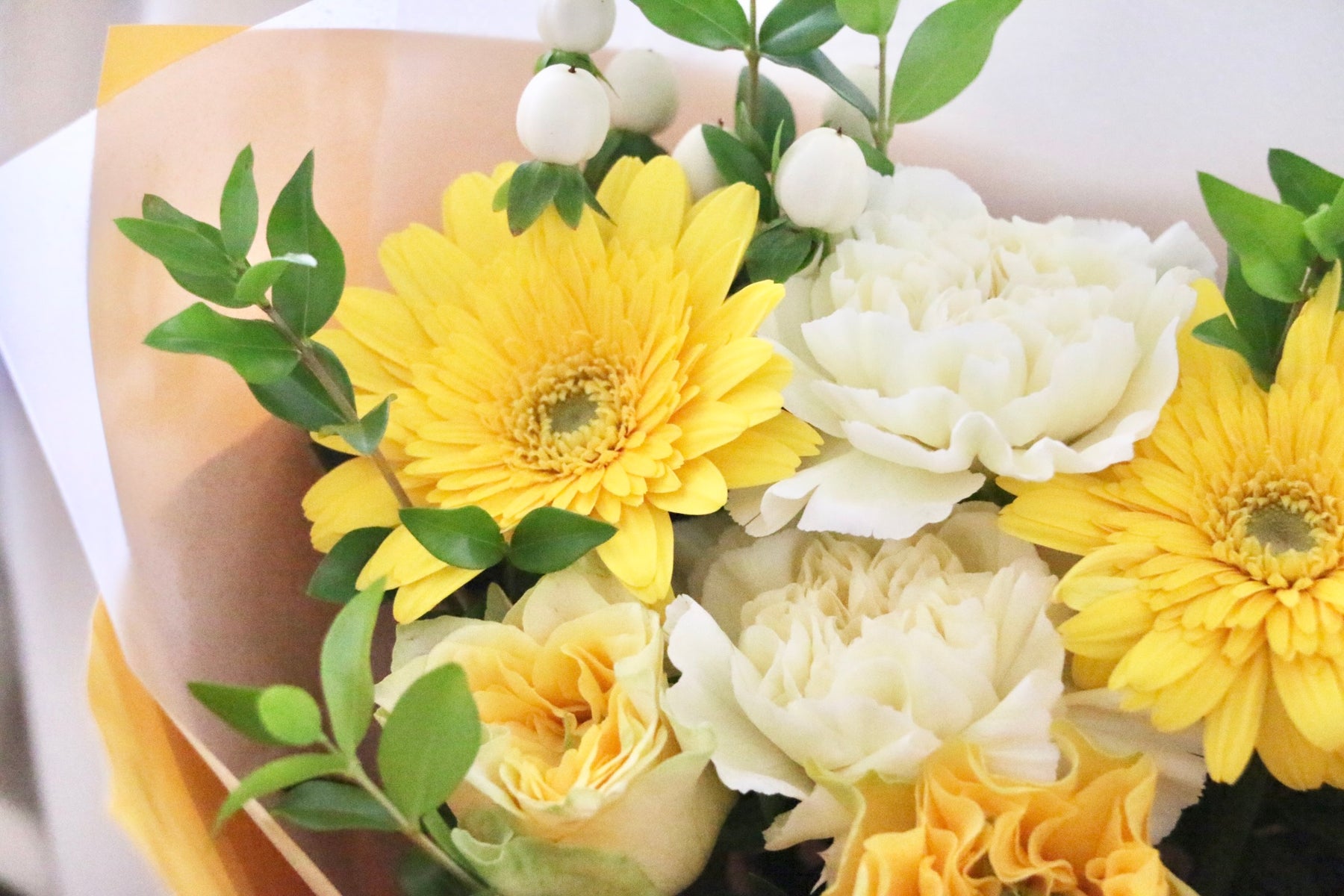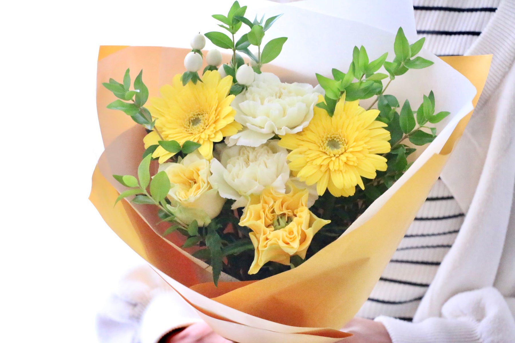 なお、こちらの花束は花材のご指定はございません。 発送直前に入荷した新鮮なお花でオリジナルの組み合わせでお作り致します。 そのため、商品写真はイメージで、写真通りの花束が届くものではございません。