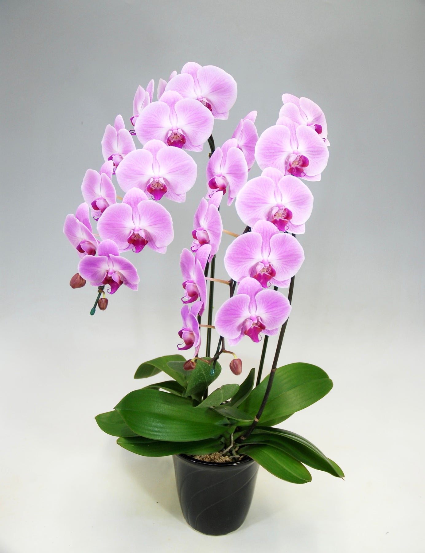 2本立ちで22~27輪前後(蕾含む)のピンク花タイプの大輪胡蝶蘭です。
