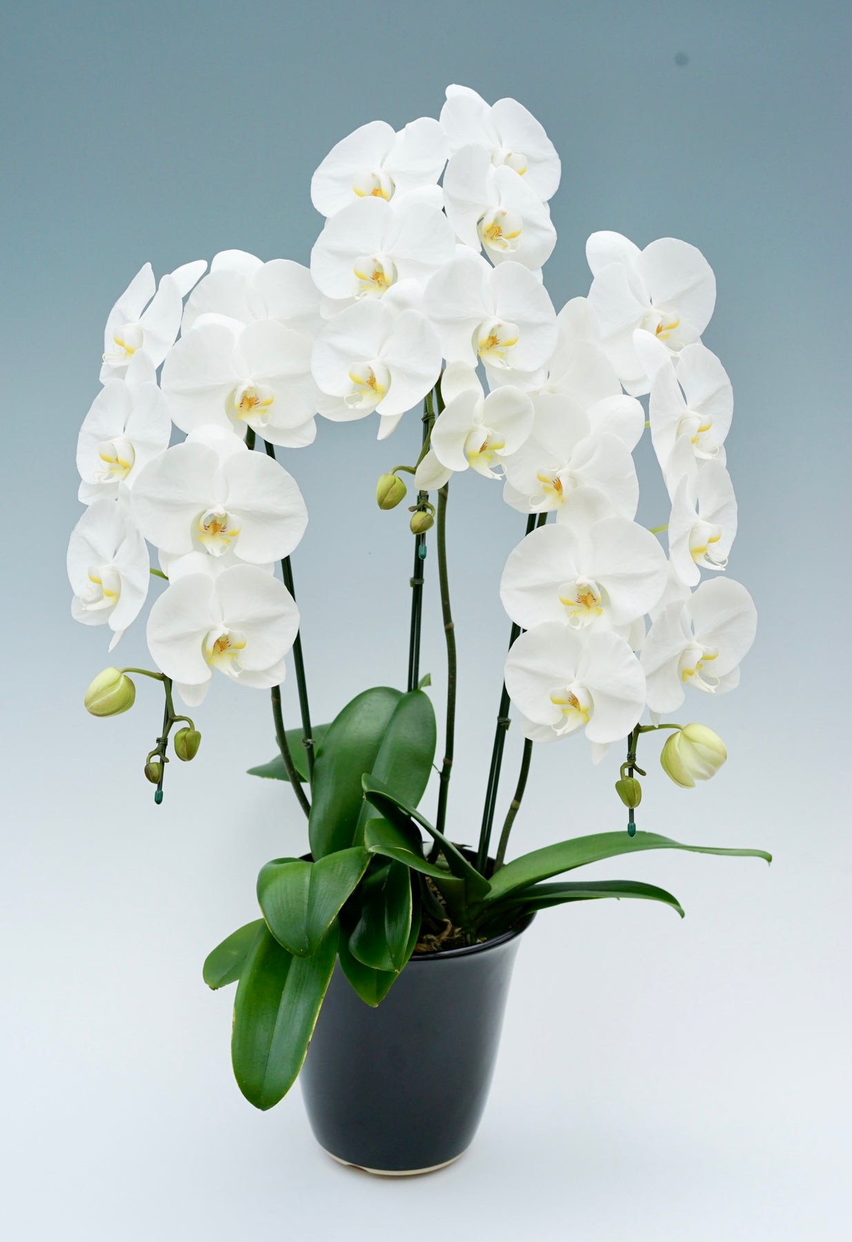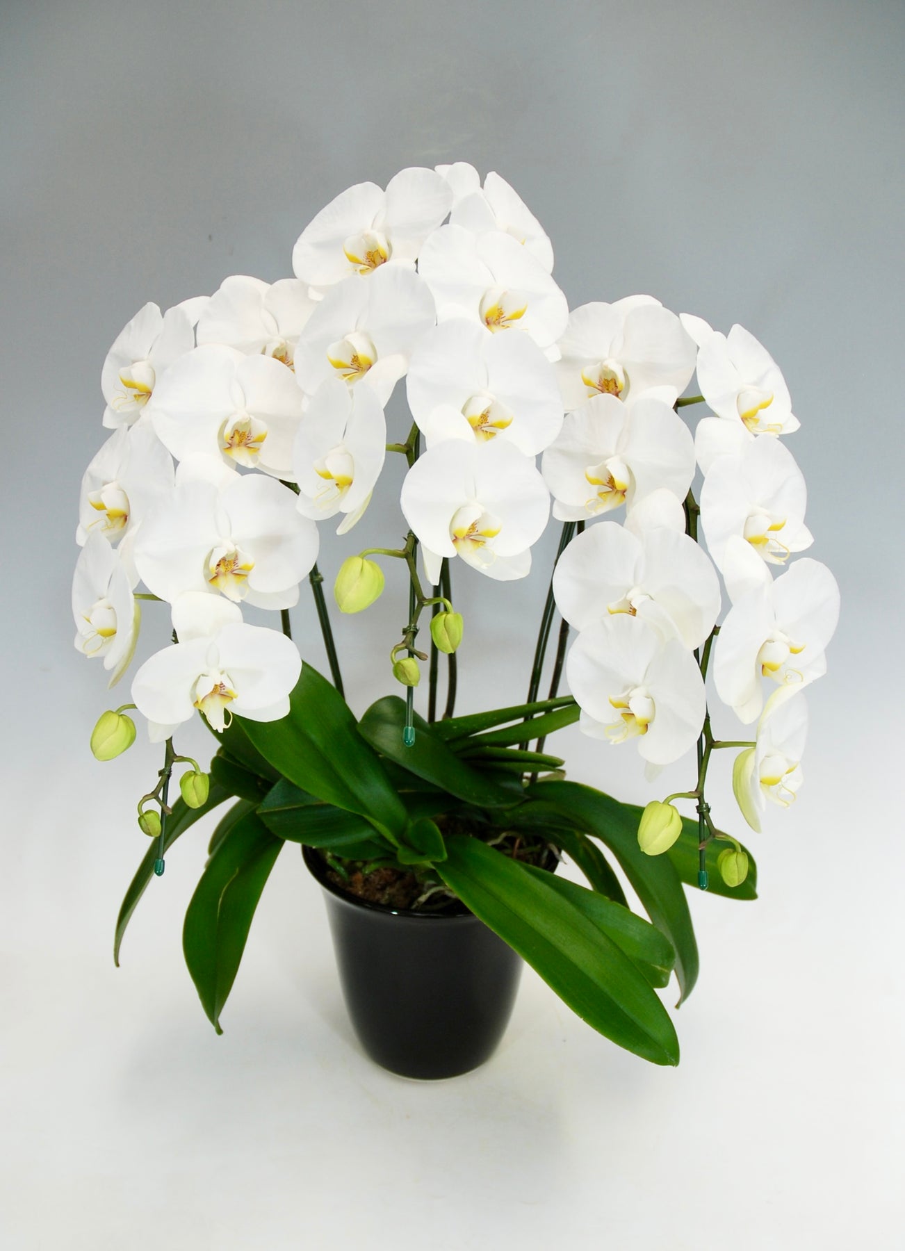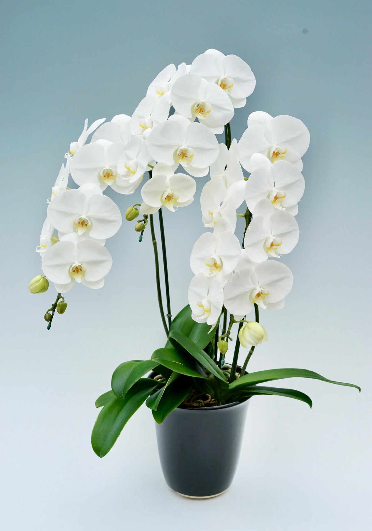 清潔感と格式を兼ね備えた白の胡蝶蘭は、お祝い・お悔みのどちらの用途にも対応できる定番カラーです。