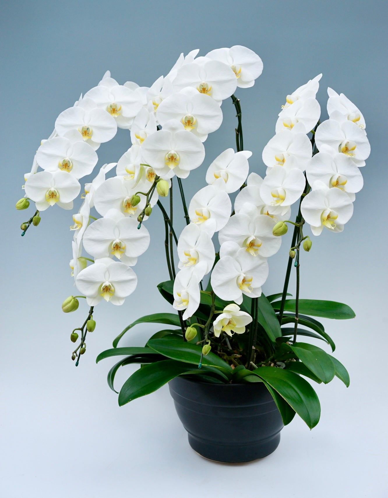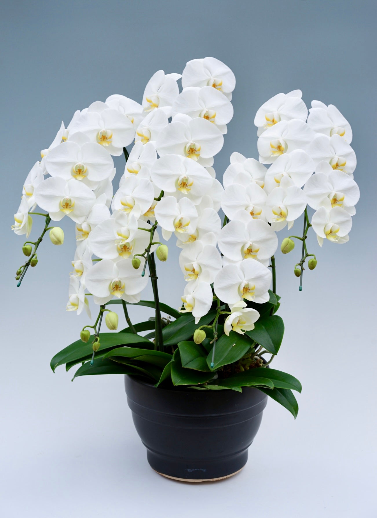 清潔感と格式を兼ね備えた白の胡蝶蘭は、お祝い・お悔みのどちらの用途にも対応できる定番カラーです。