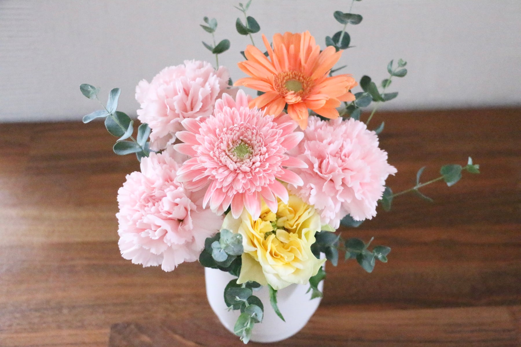 フラワーアレンジメントは花瓶が不要なギフトスタイルのため、お相手の負担が少なく、すぐに飾ることができます。個人宛はもちろん、店舗やオフィス宛でも贈りやすいギフトです。