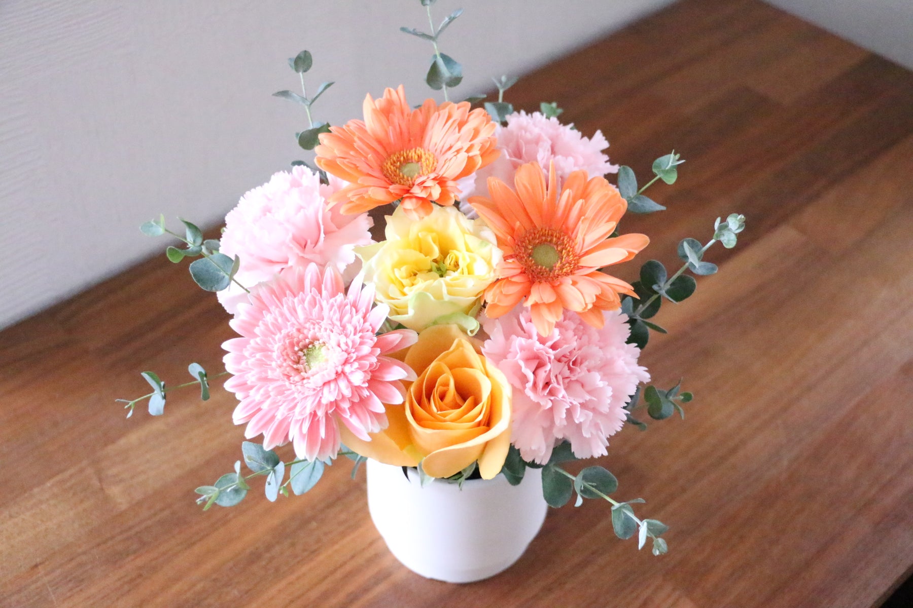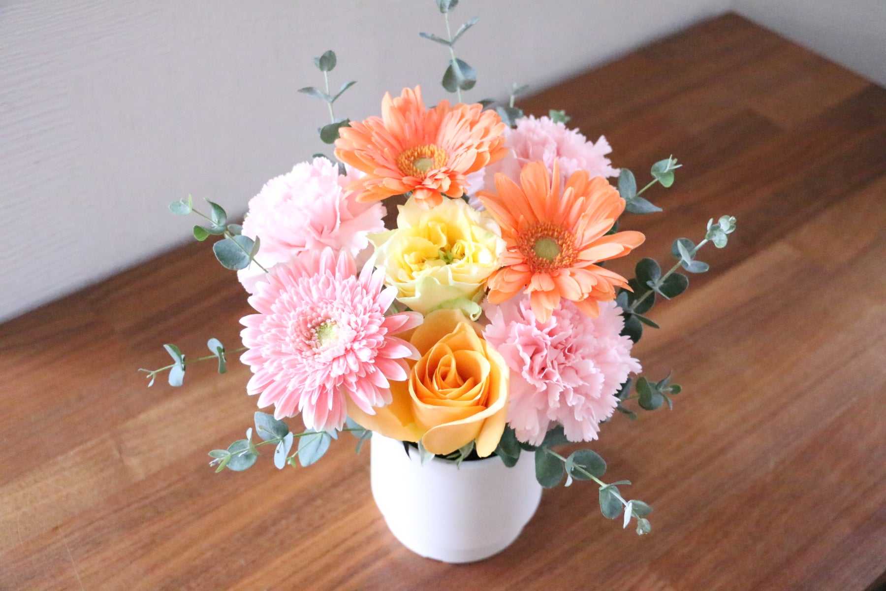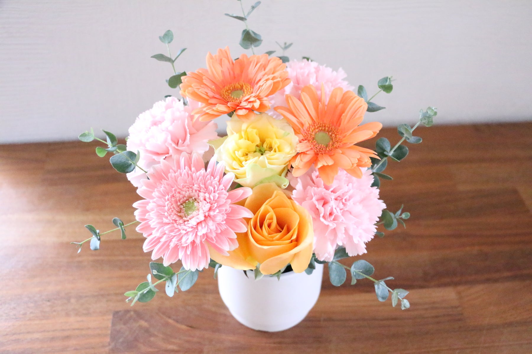 フラワーアレンジメントは花瓶が不要なギフトスタイルのため、お相手の負担が少なく、すぐに飾ることができます。個人宛はもちろん、店舗やオフィス宛でも贈りやすいギフトです。