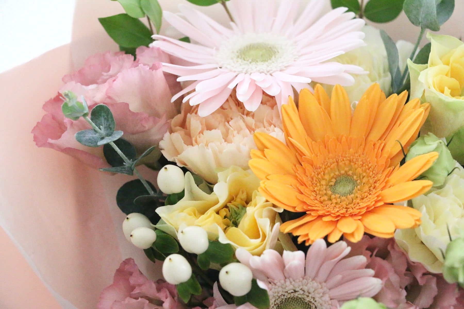なお、こちらの花束は花材のご指定はございません。 発送直前に入荷した新鮮なお花でオリジナルの組み合わせでお作り致します。 そのため、商品写真はイメージで、写真通りの花束が届くものではございません。