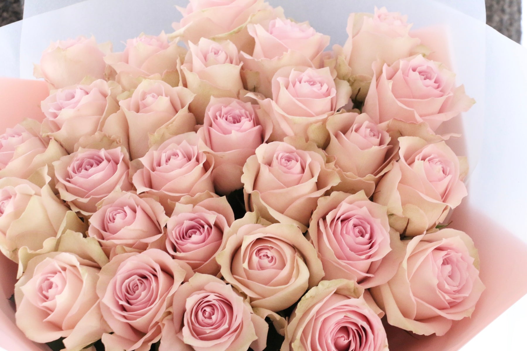 プロポーズの花束では赤いバラを連想される方も多いですが、ピンク色のバラは赤いバラよりも柔らかく優しい雰囲気を演出することができ、ピンク色のバラ自体には「感謝」という花言葉もあります。
