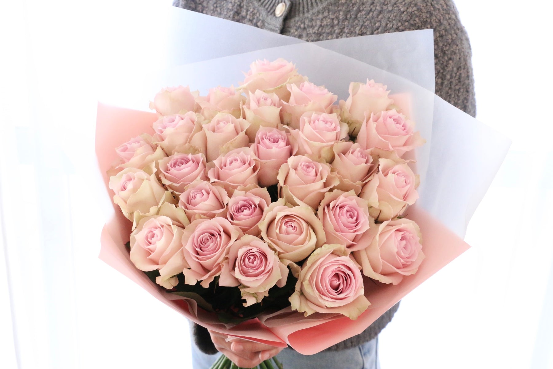 ピンク色のバラの花束はプロポーズや結婚記念日、記念日、お誕生日など、愛情を伝えたい相手へのプレゼントとして最適なフラワーギフトです。