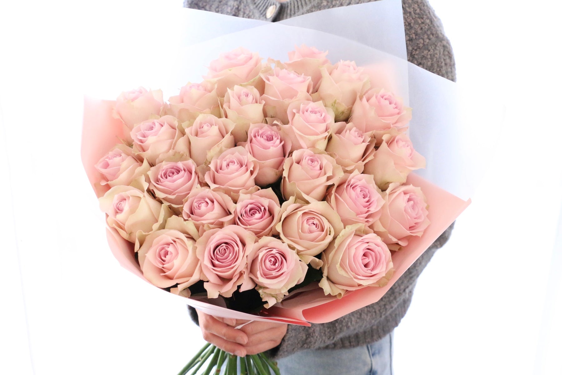 ピンク色のバラの花束はプロポーズや結婚記念日、記念日、お誕生日など、愛情を伝えたい相手へのプレゼントとして最適なフラワーギフトです。