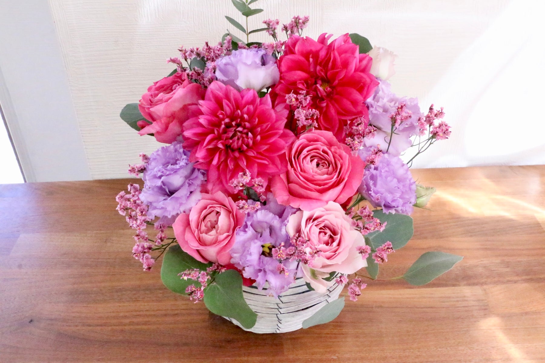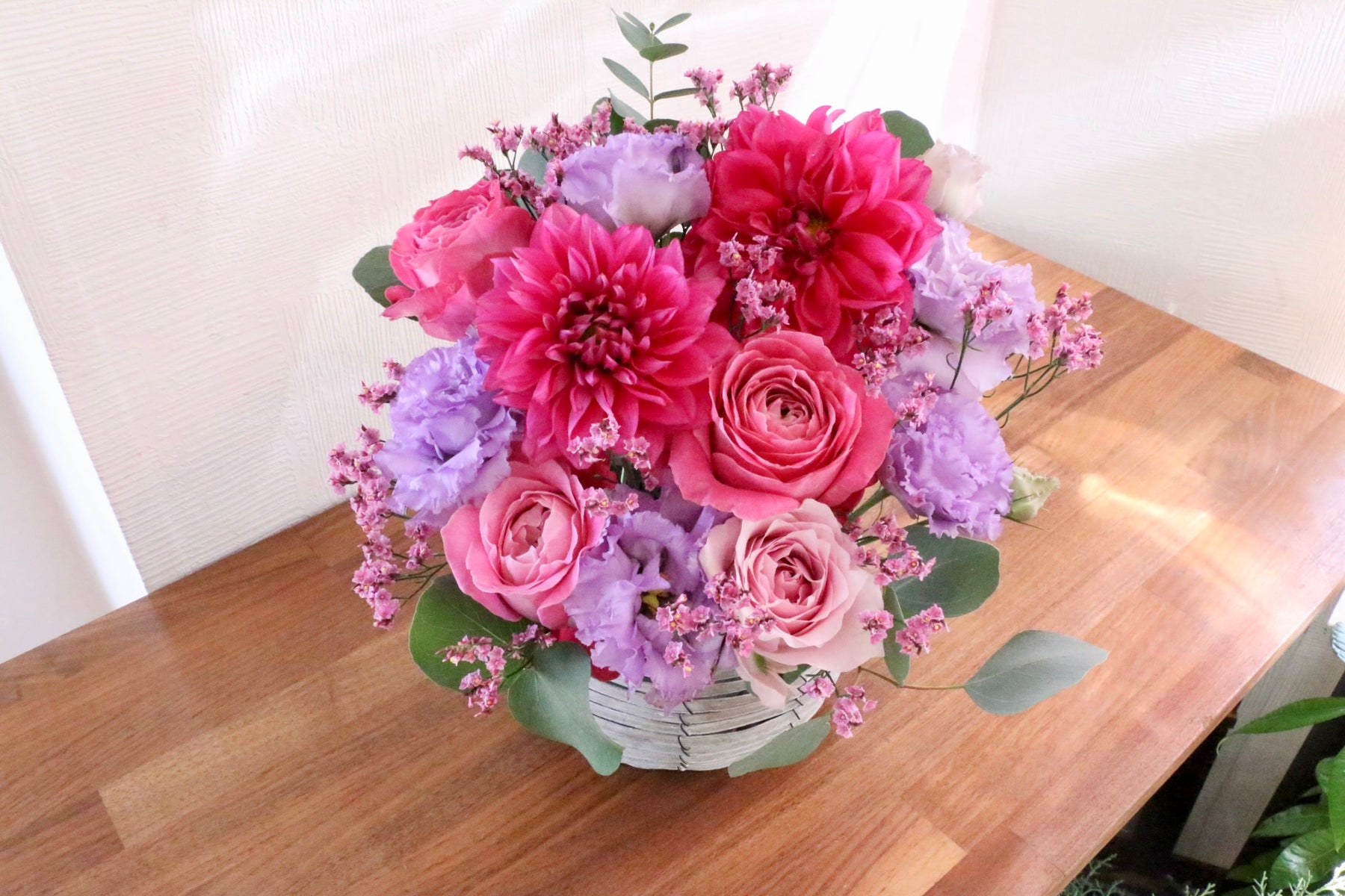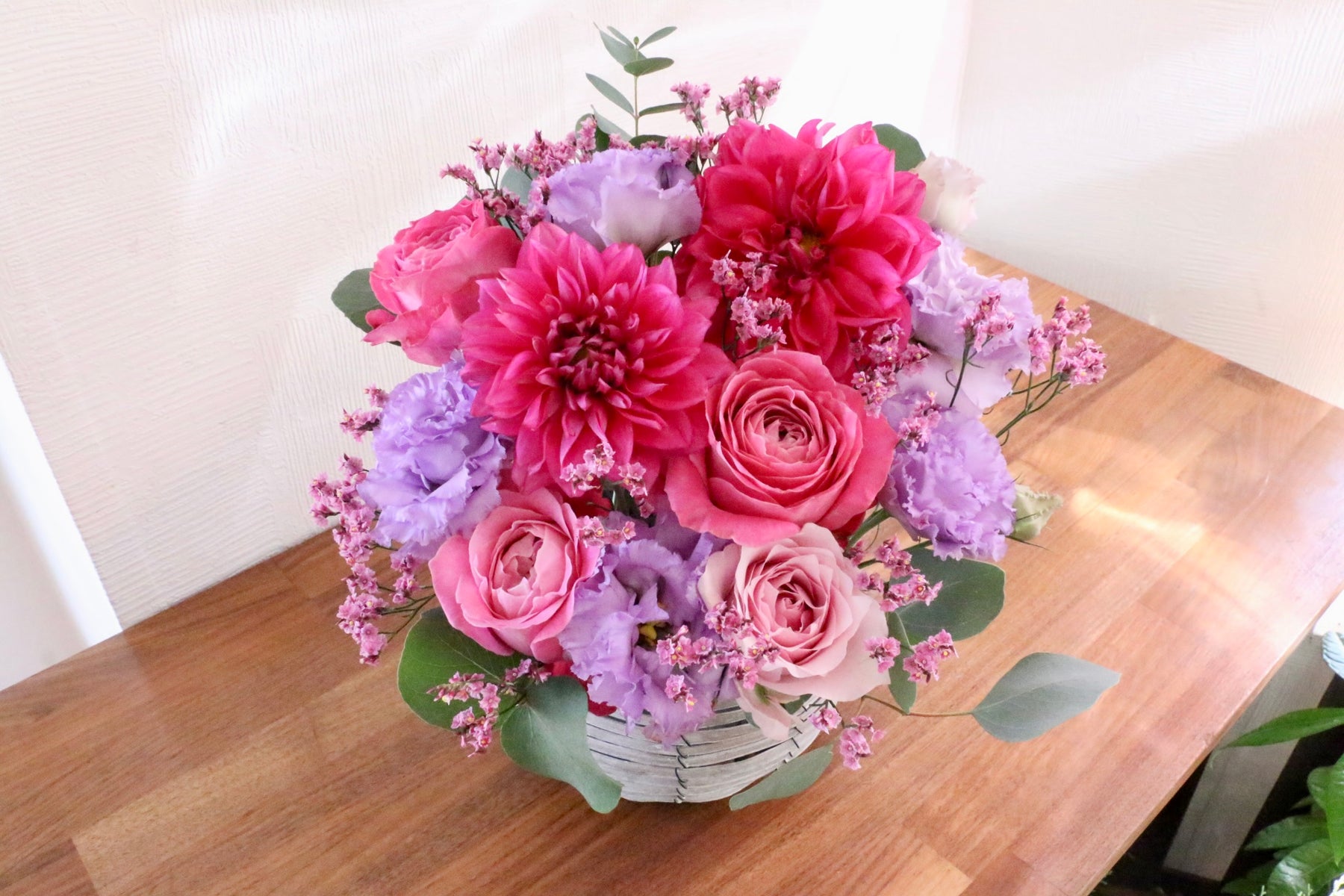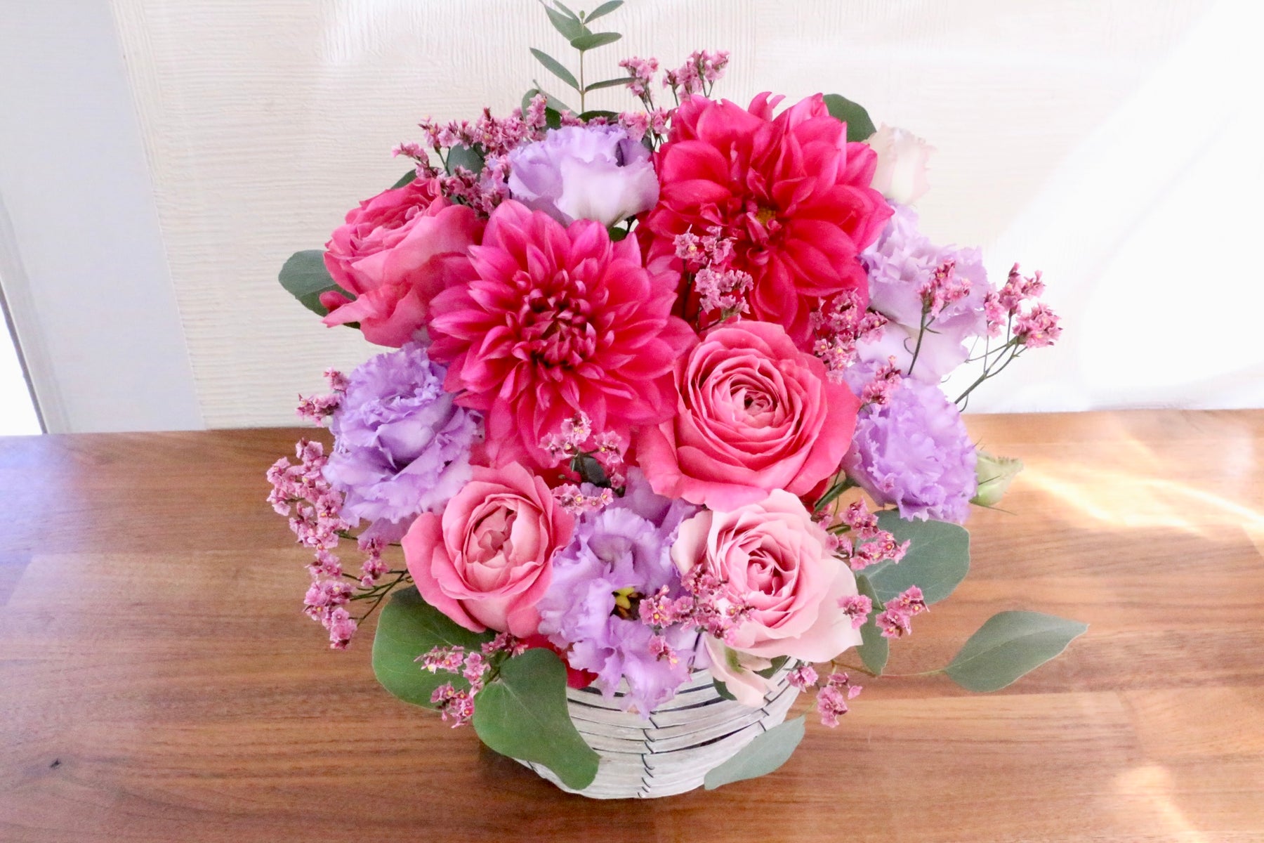 紫色・ピンク色のお花をベースに上品で優しい雰囲気で仕上げたアレンジメントです。