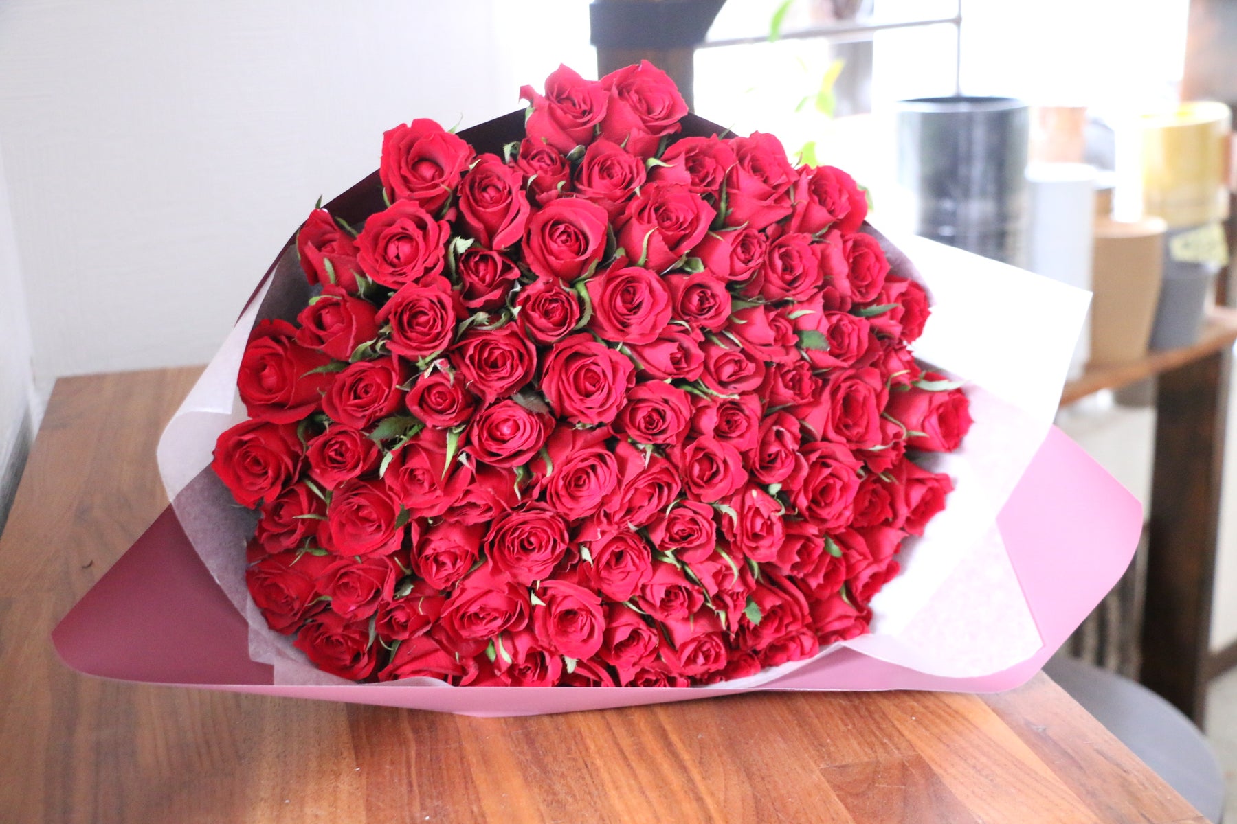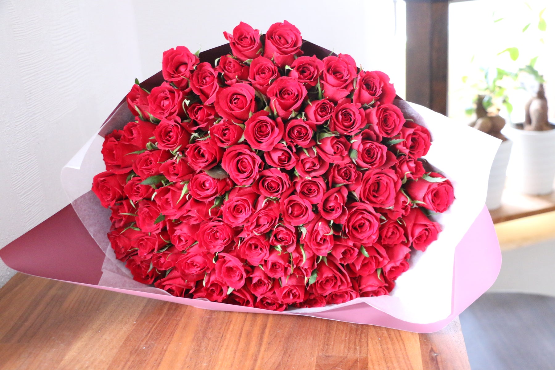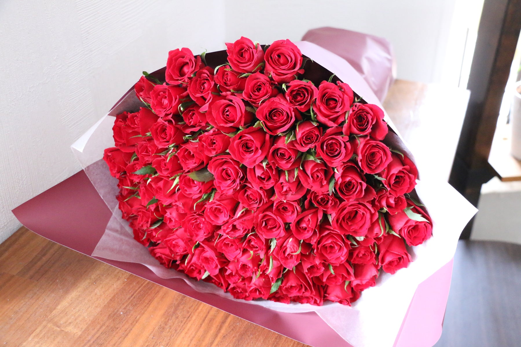 赤いバラの花束はプロポーズや結婚記念日、記念日、お誕生日など、愛情を伝えたい相手へのプレゼントとして最適なフラワーギフトです。